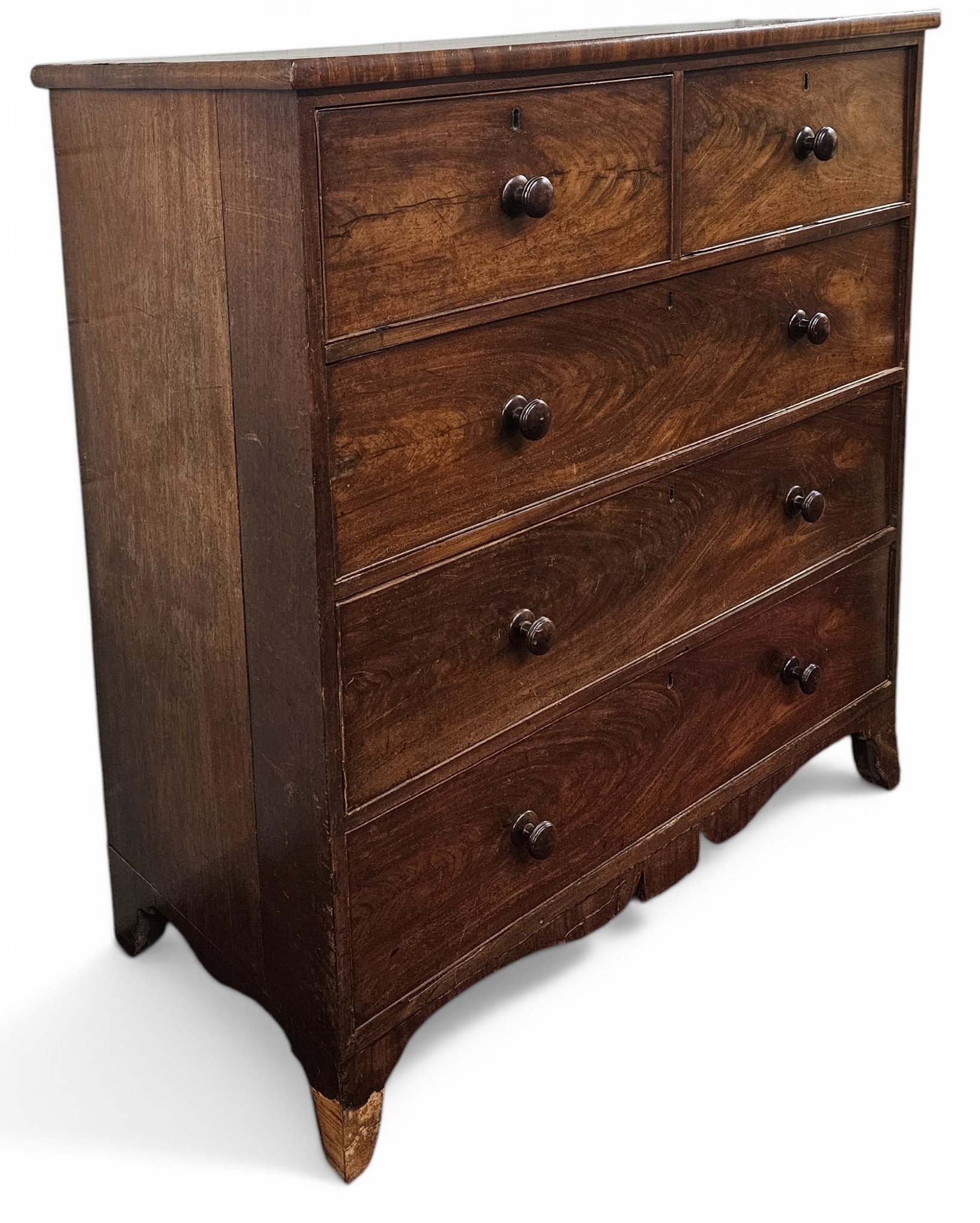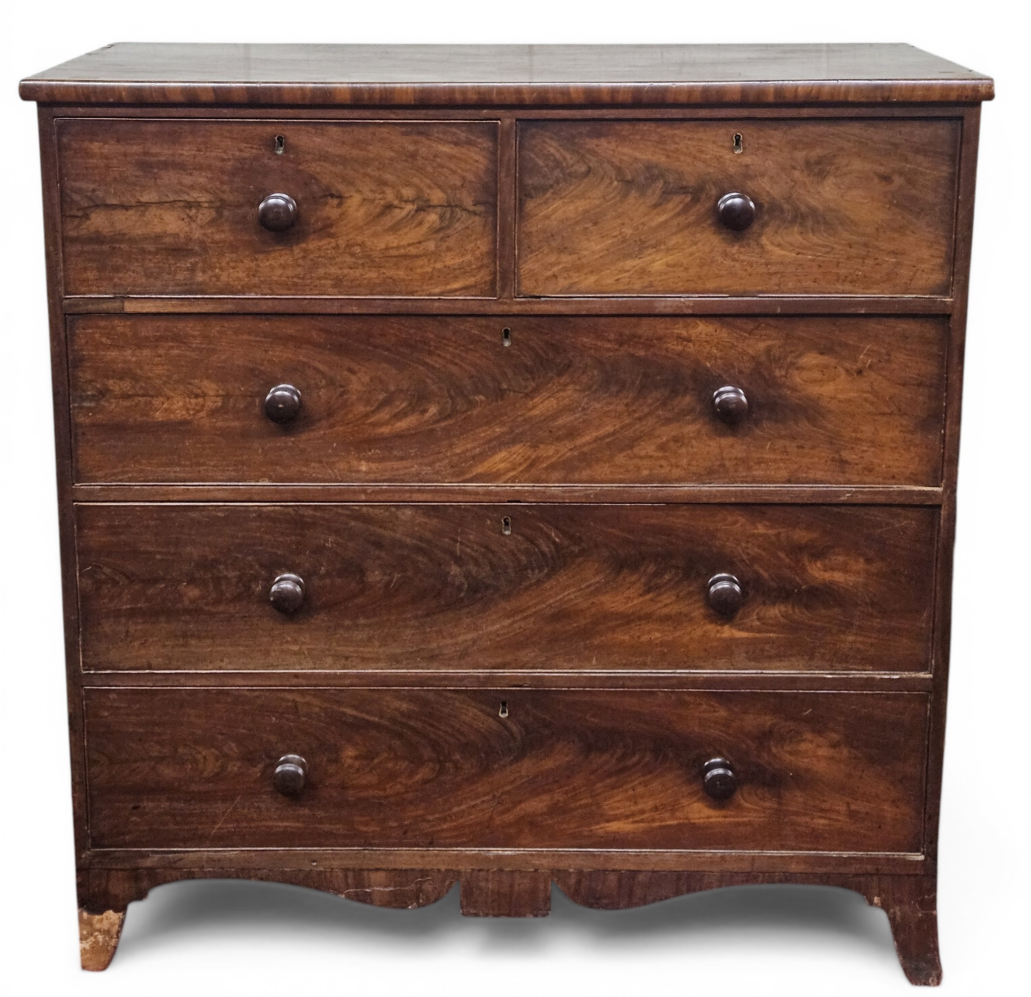 A Georgian Mahogany Chest Of Drawers with two short over three long, large Blanket Chest (bracket feet needing repair). W 124 x D 55 x H 128 cm approx.
