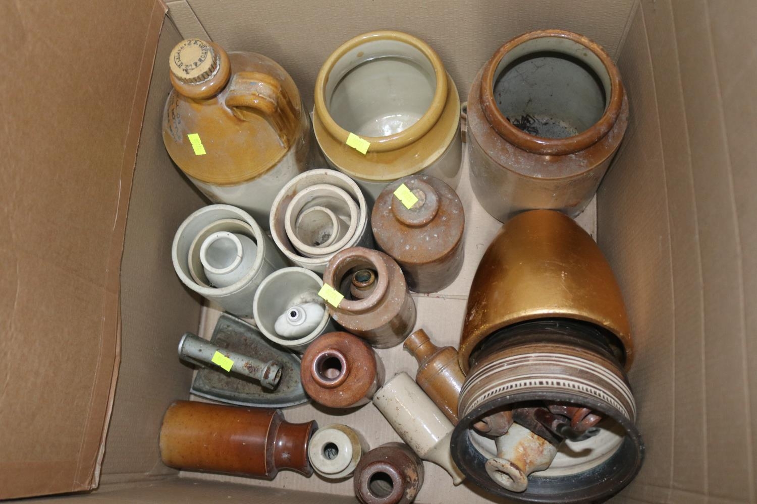 Quantity of stoneware bottles and vintage utensil holders etc