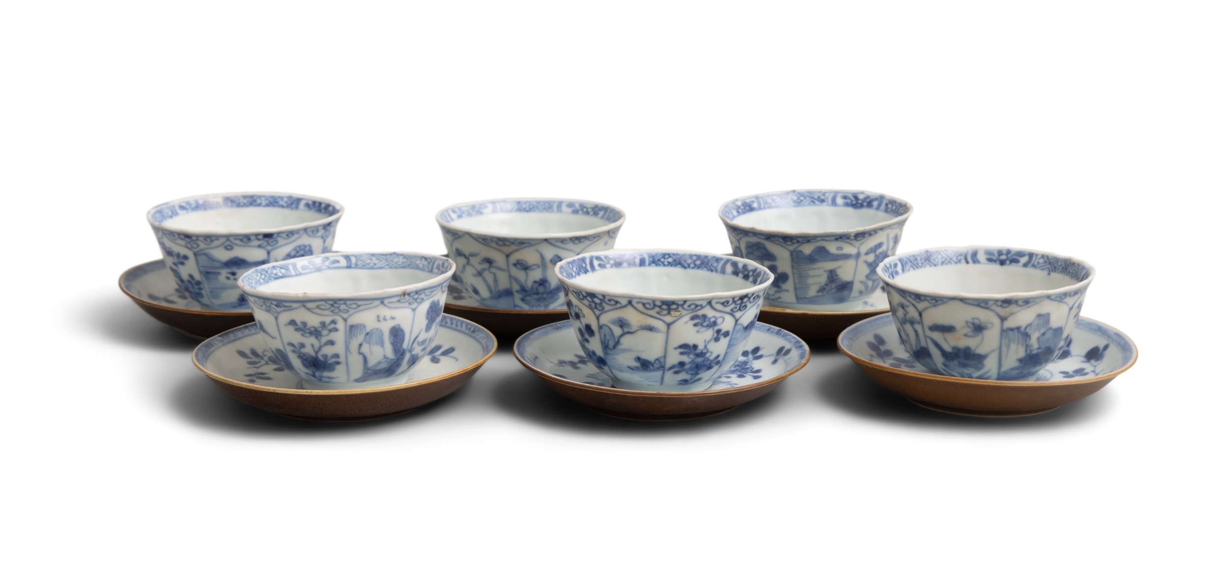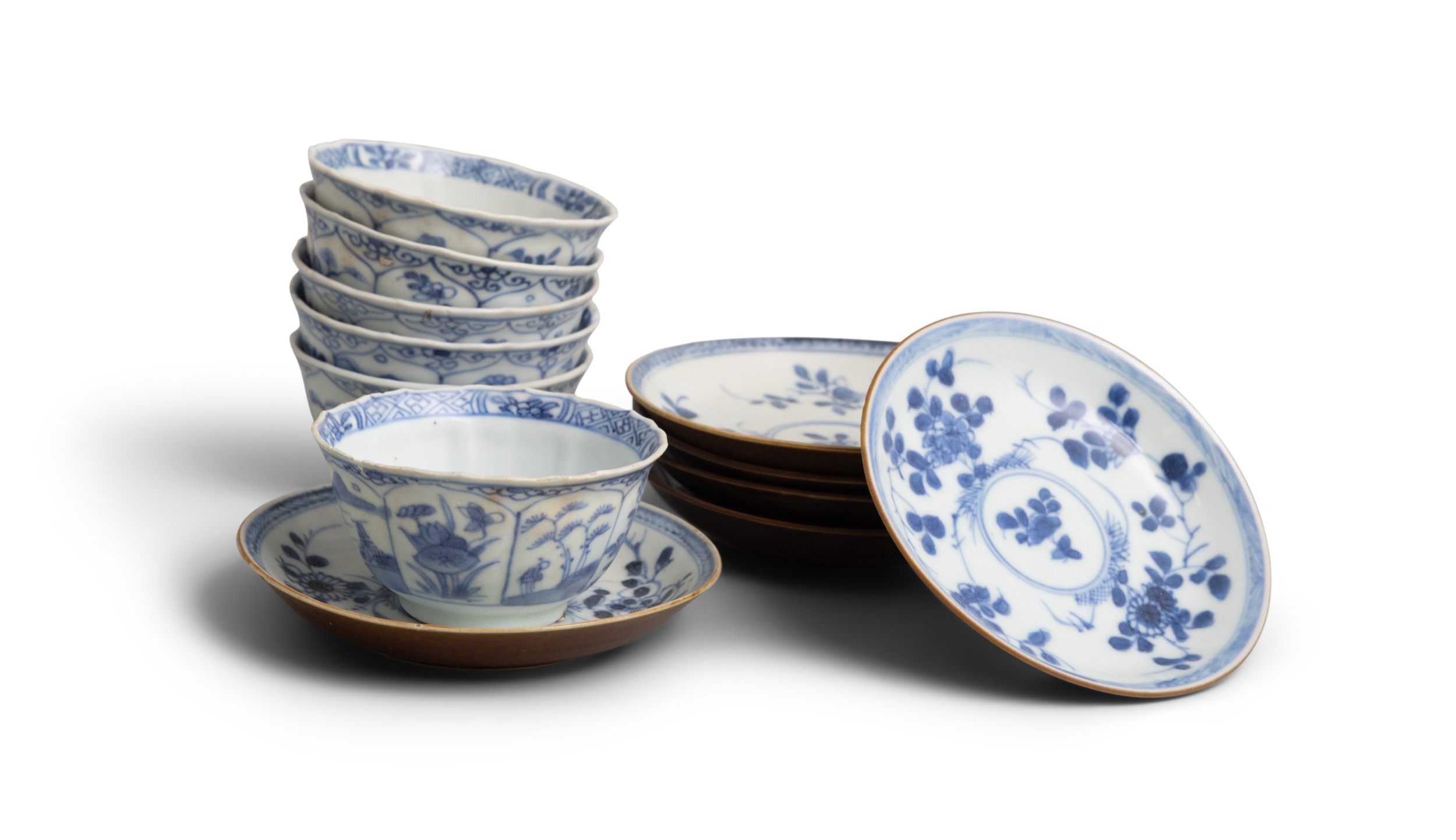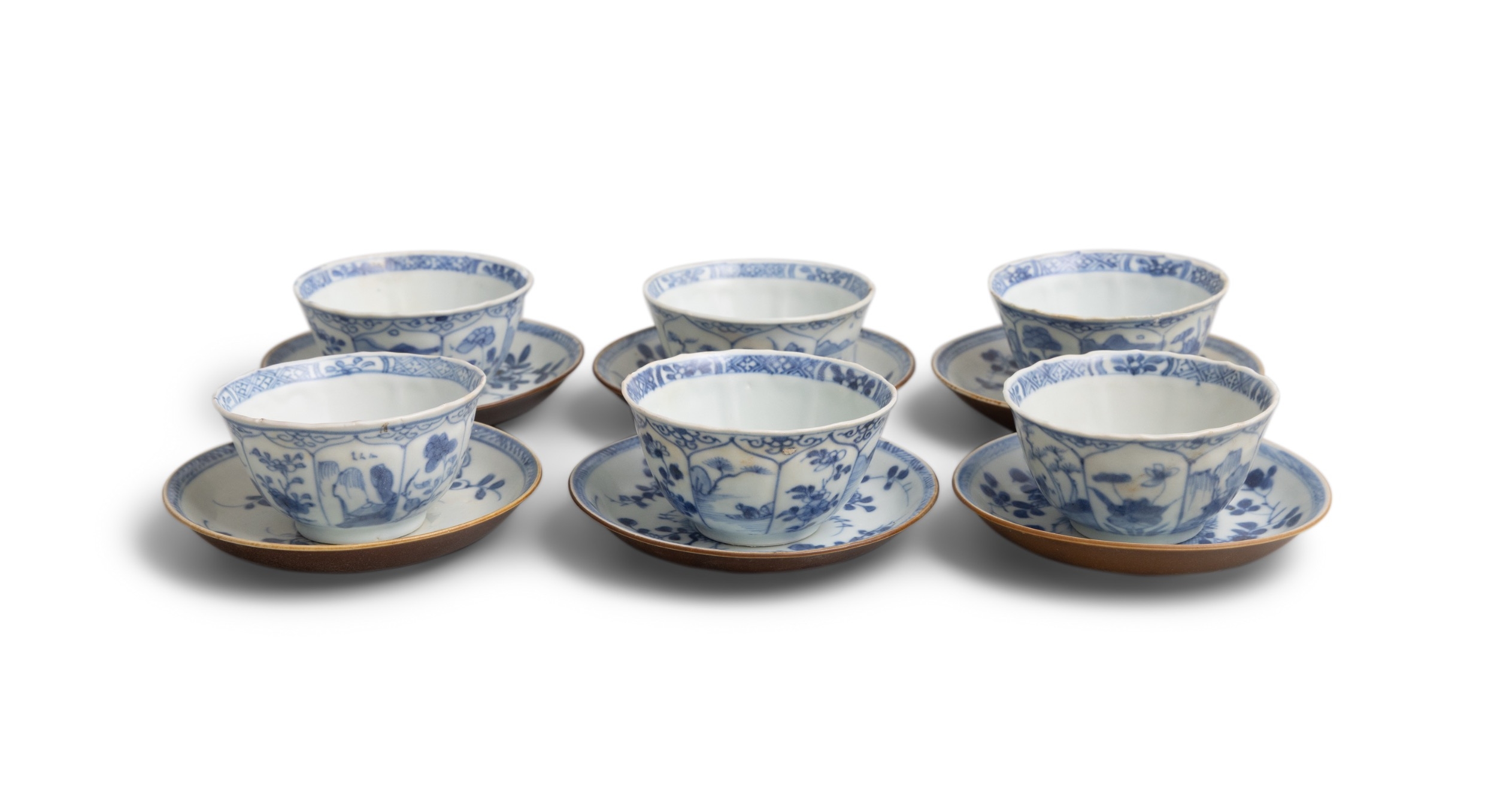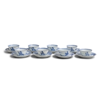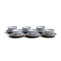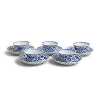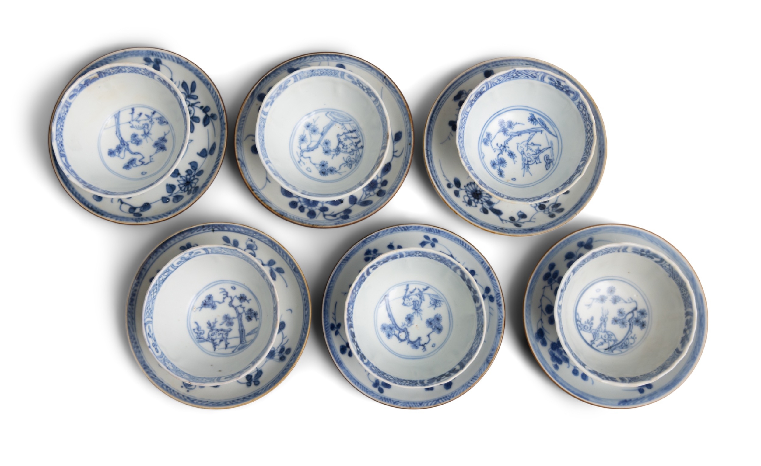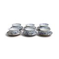 SIX ‘THE FALLOW DEER’ AND ‘FLOWERS’ TEABOWLS AND SAUCERS China, Yongzheng period, circa 1725 Cup: 8cm Saucer: 11.1cm Provenance: Made in Imperial China: 76,000 Pieces of Chinese Export Porcelain from the Ca Mau Shipwreck, Sotheby’s Amsterdam, January 2007
