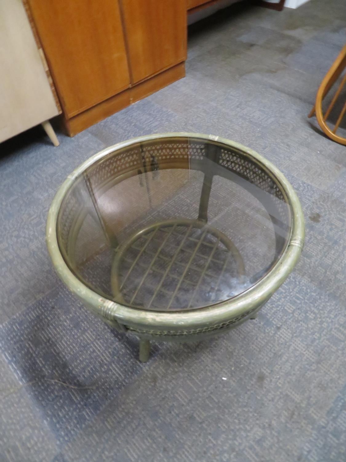 Bamboo table with glass top