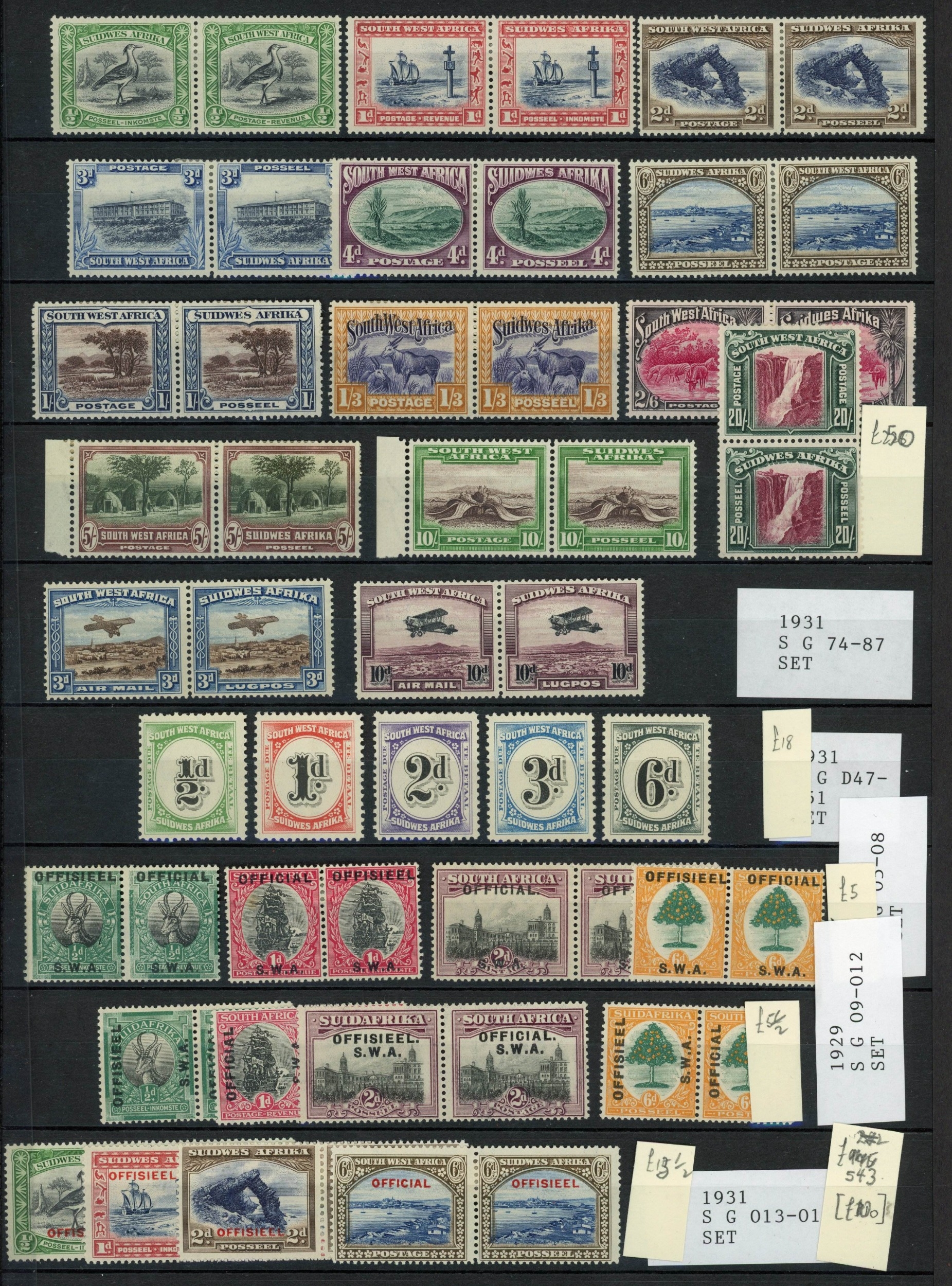 South Africa and South West Africa mixed mint and used selection arranged on stockpages including mint values to 20s; also a range of officials mint. Generally good to fine. (133)