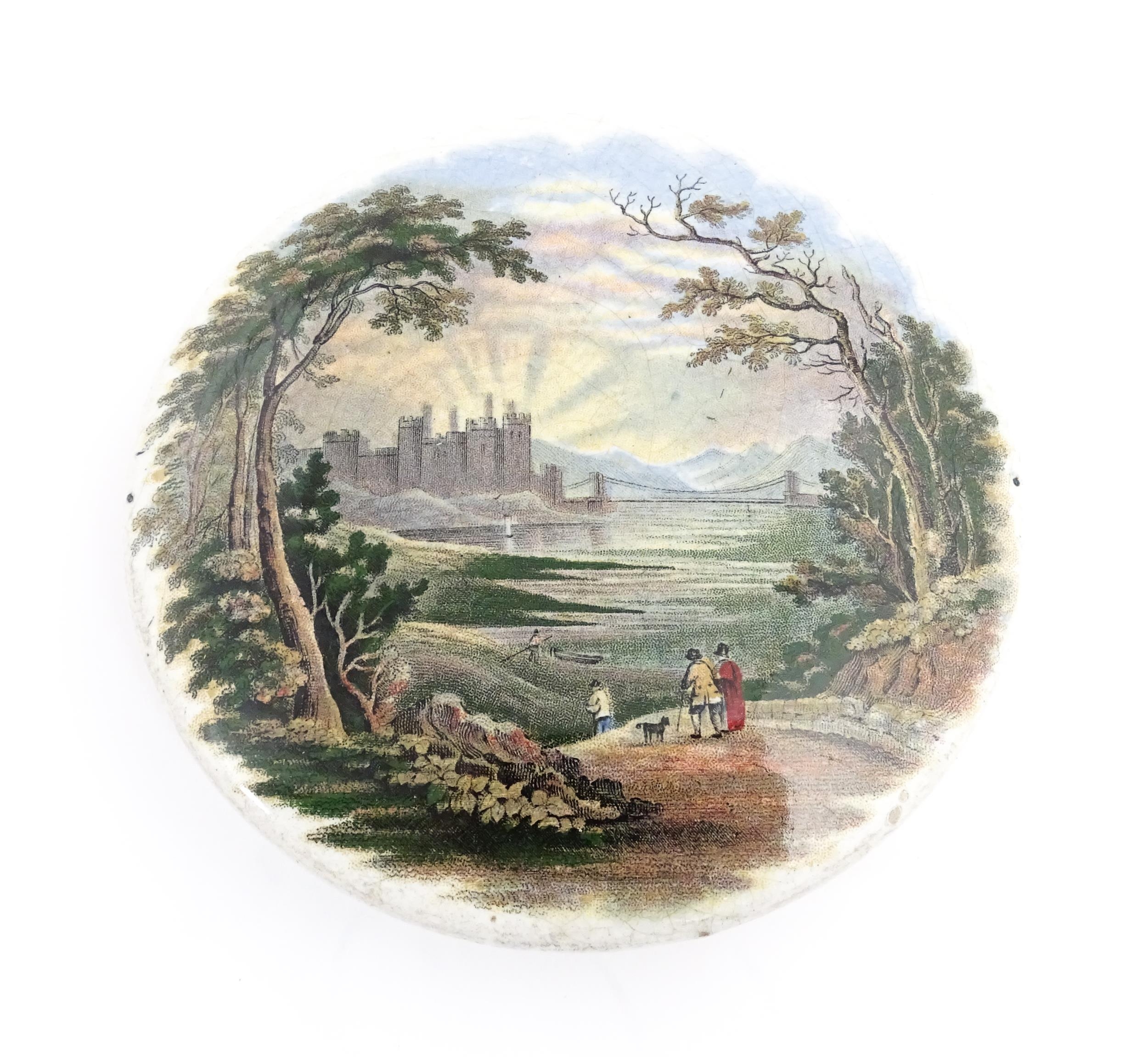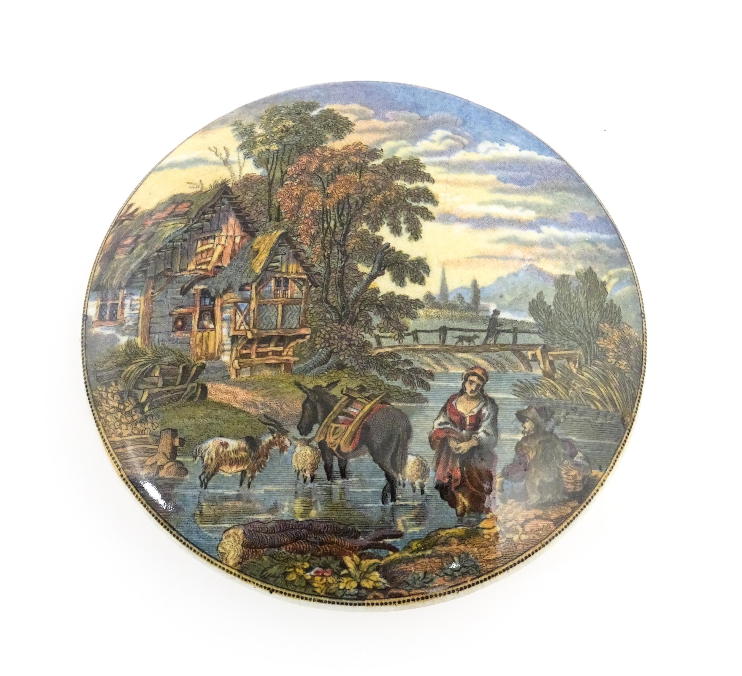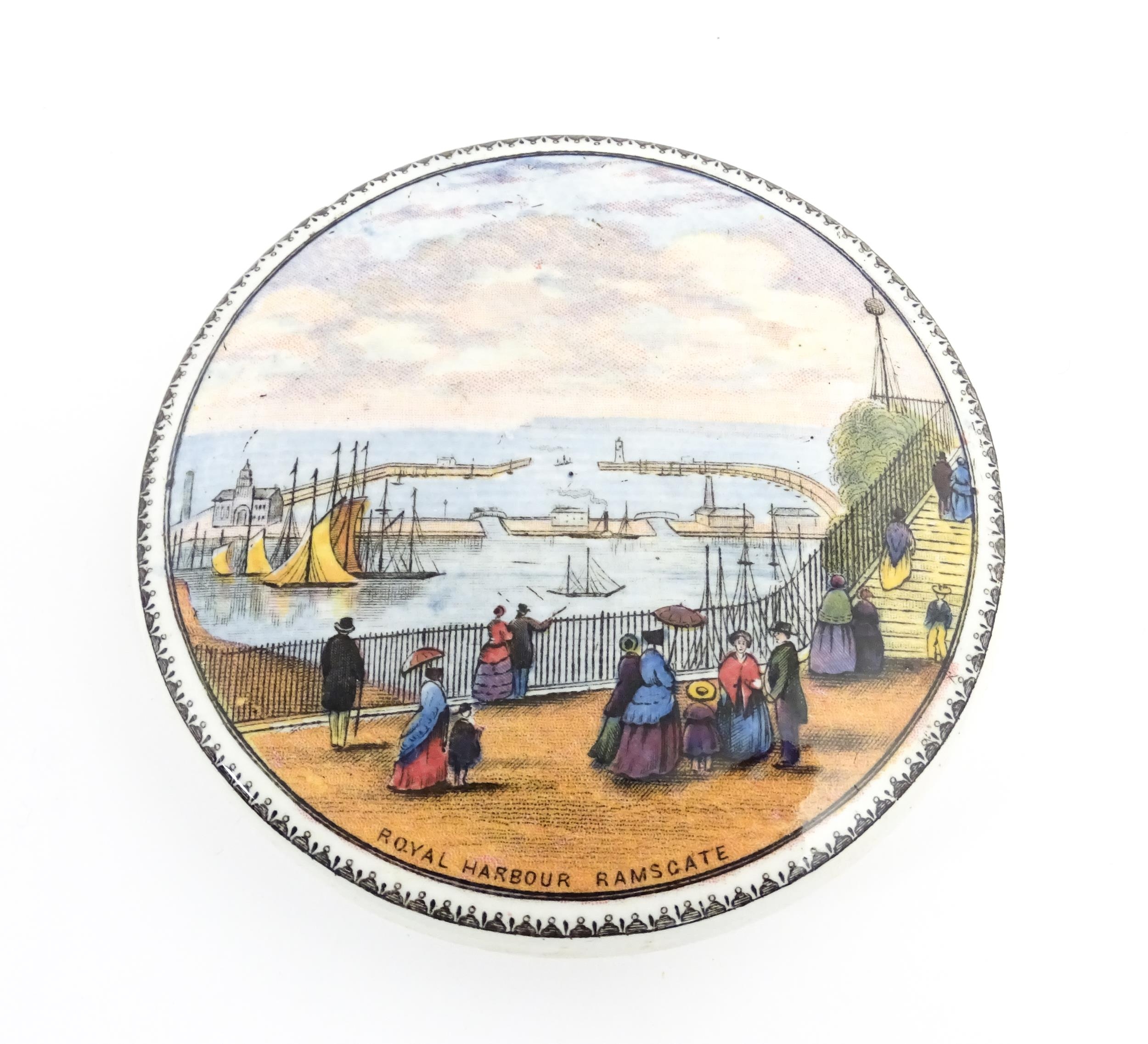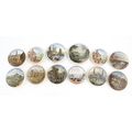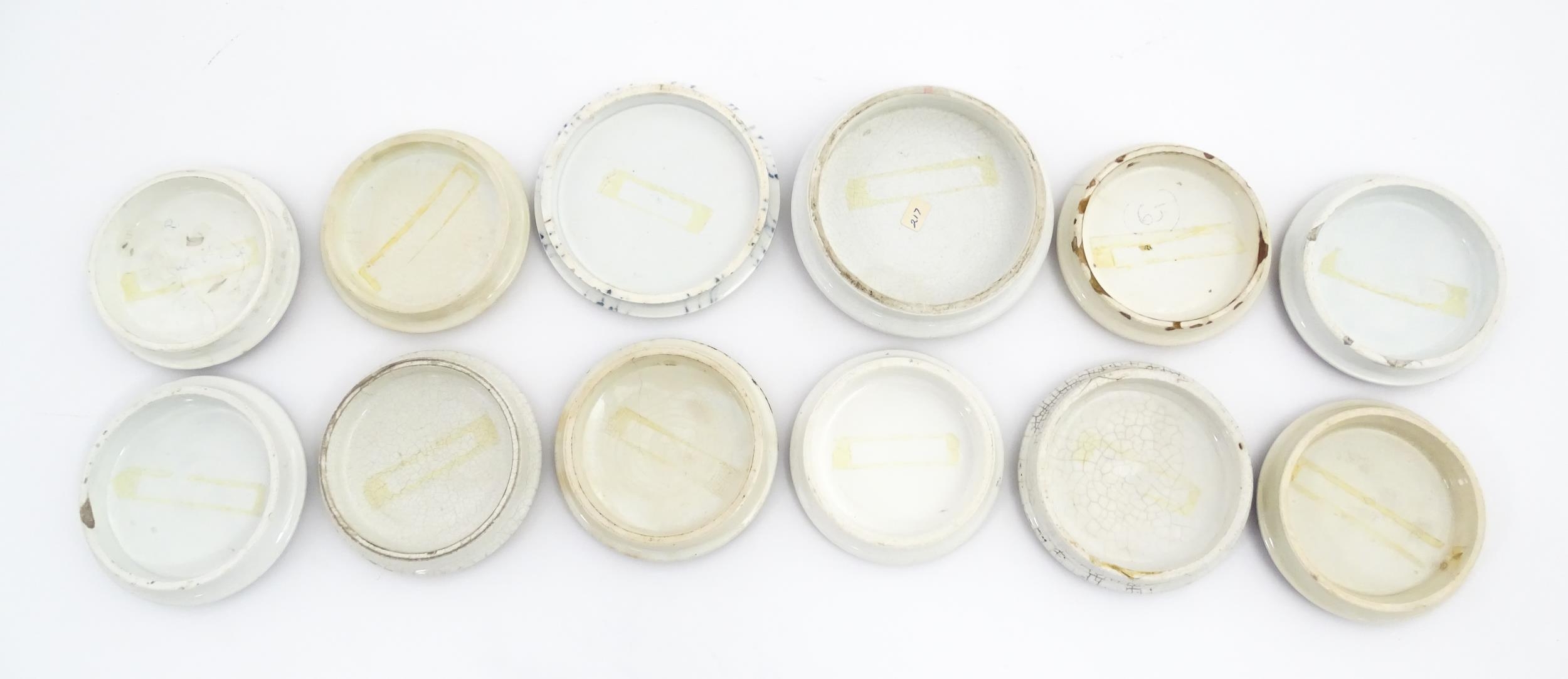 A quantity of Prattware pot lids to include Strasburg, Holborn Viaduct, Philadelphia Exhibition 1876, Royal Harbour Ramsgate, Chapel Royal Savoy Destroyed by Fire July 1864, Paris Exhibition 1878, Shakespeare's House Henley Street Stratford on Avon, etc. Largest approx. 5" (12)
