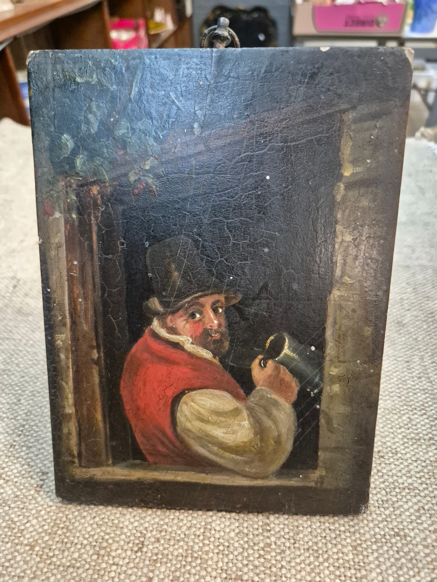 Primitive small oil on panel of a man