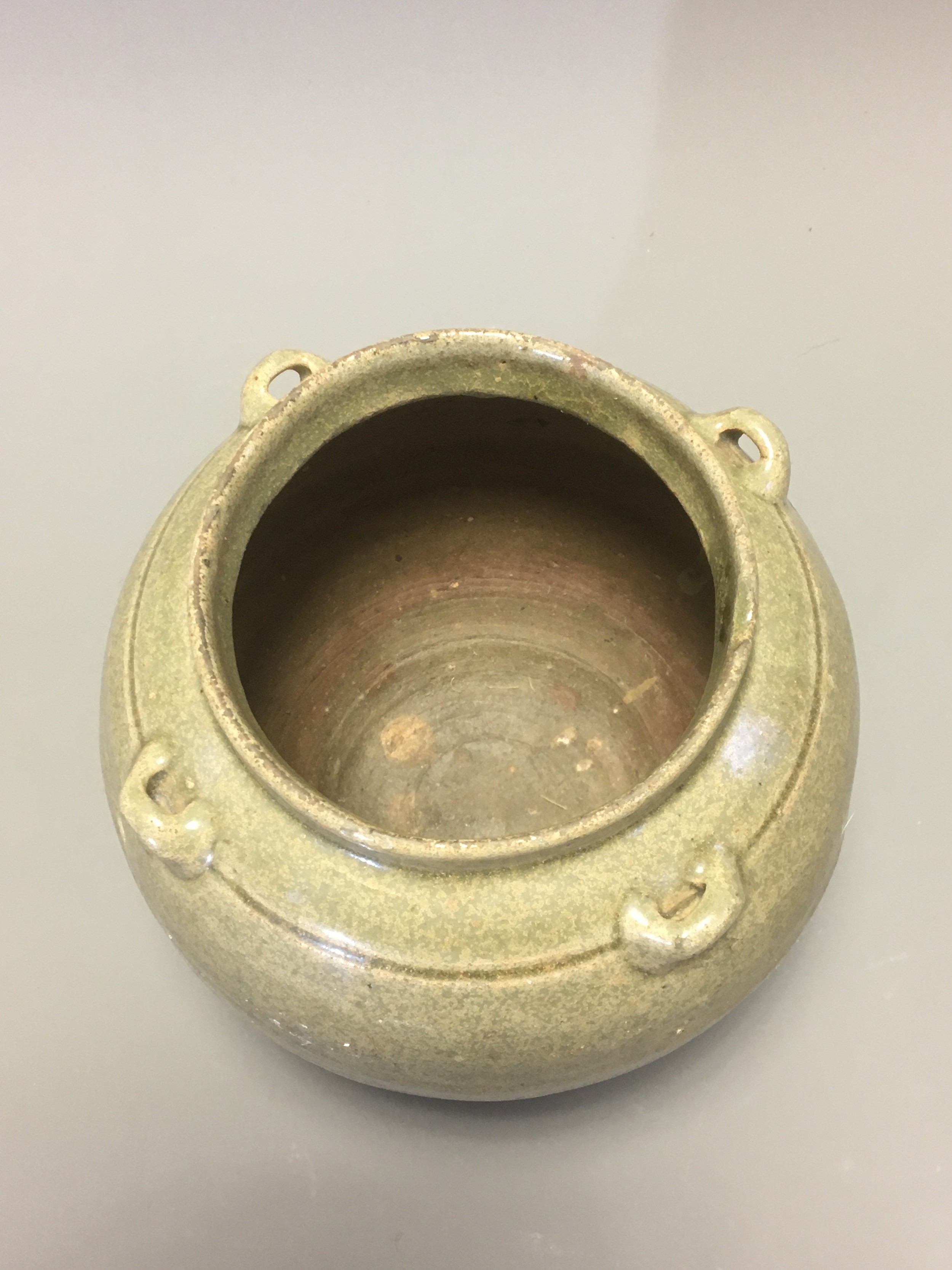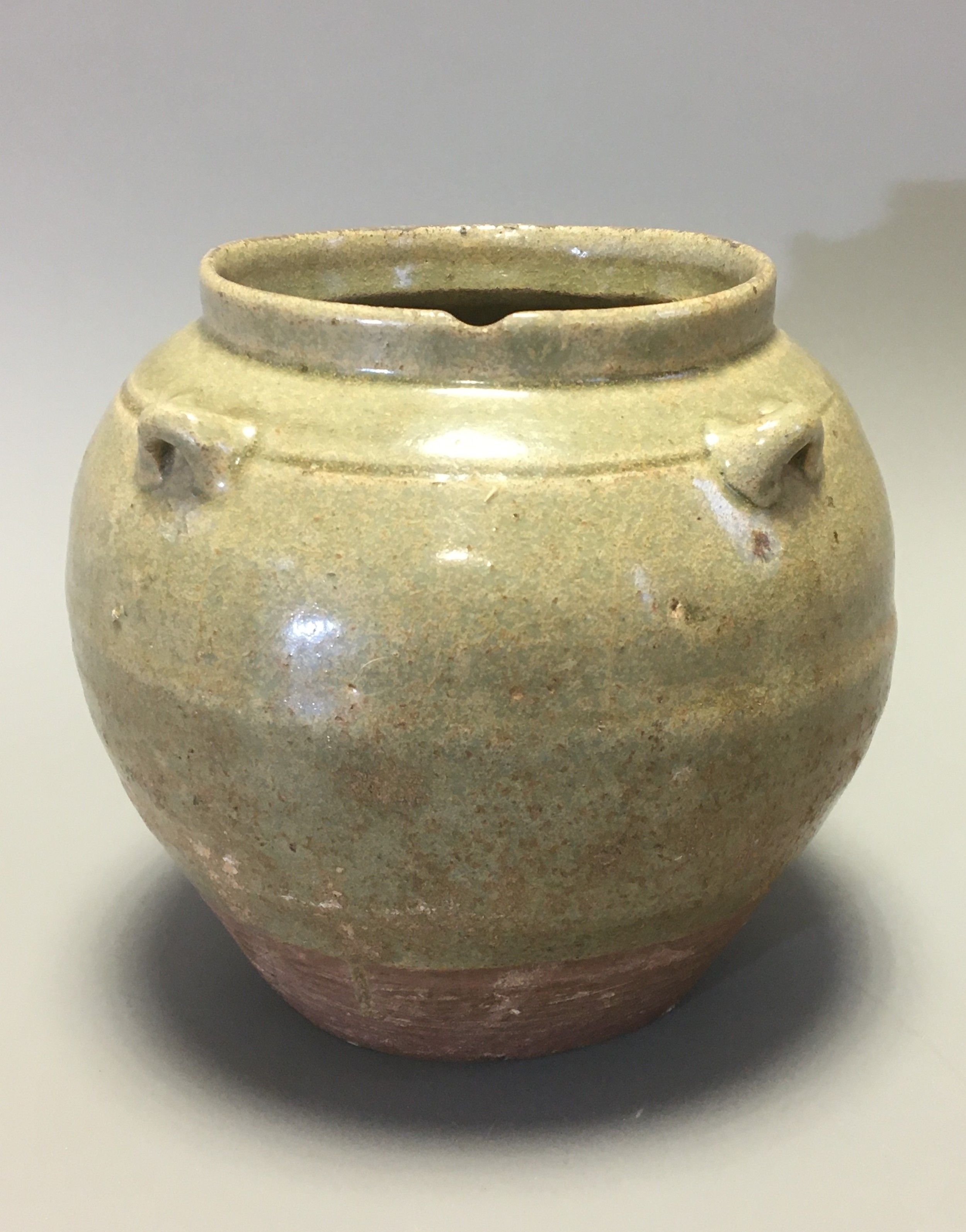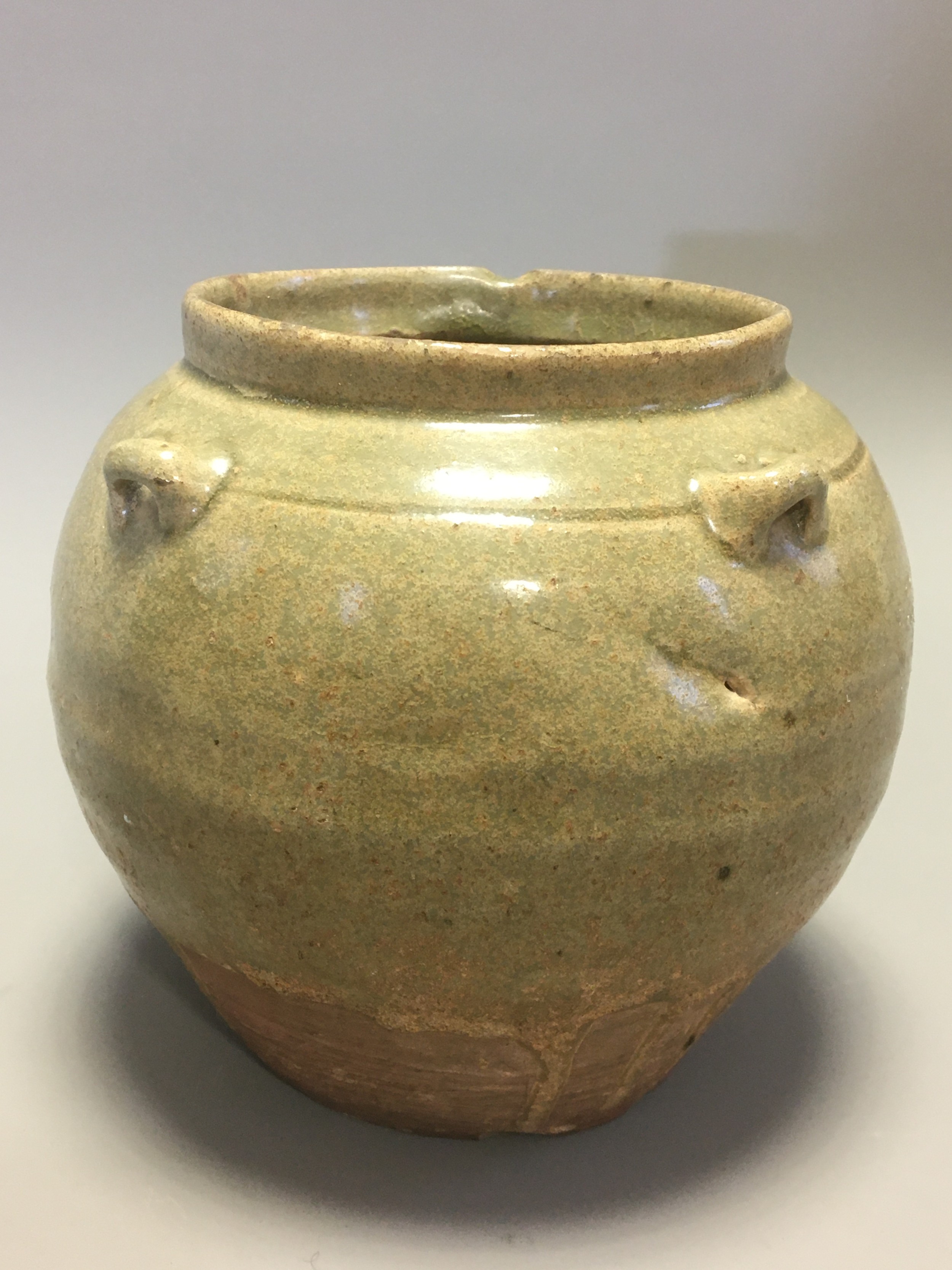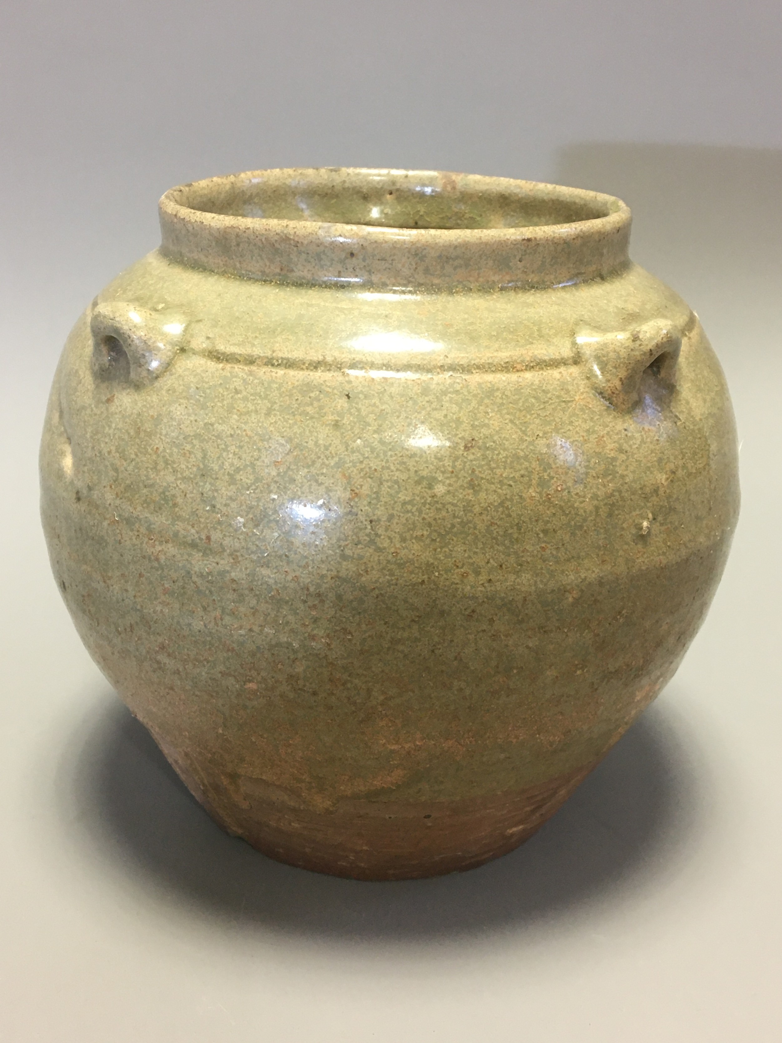 Chinese possibly Western Jin Dynasty Green Glazed Pottery Jar with 4 lug handles