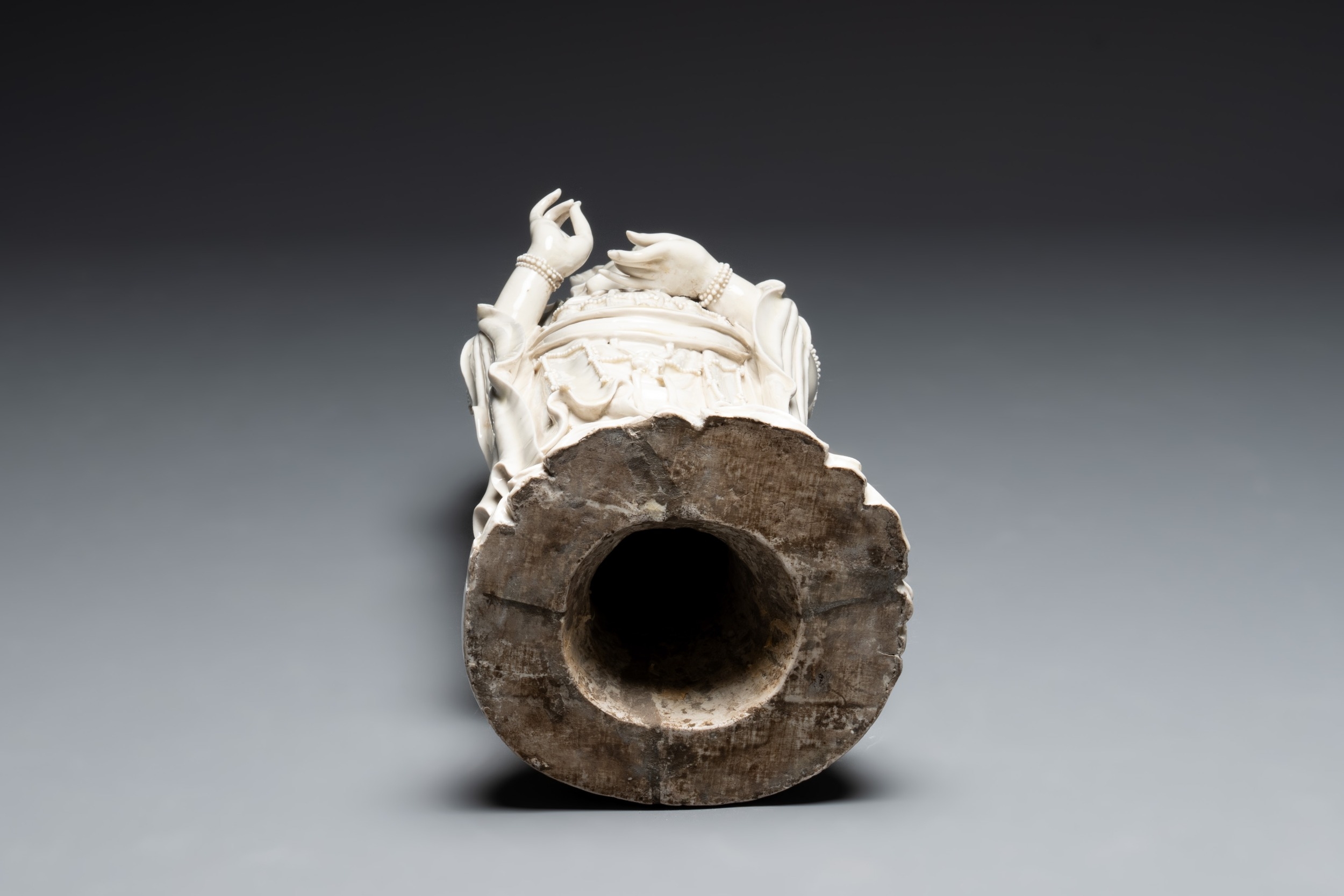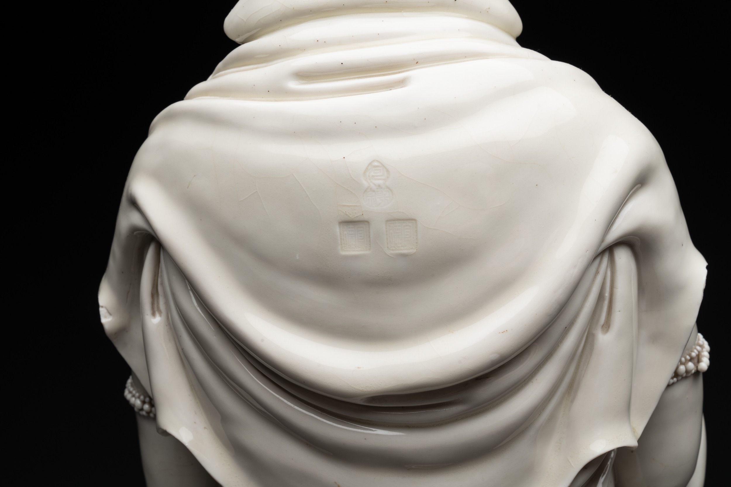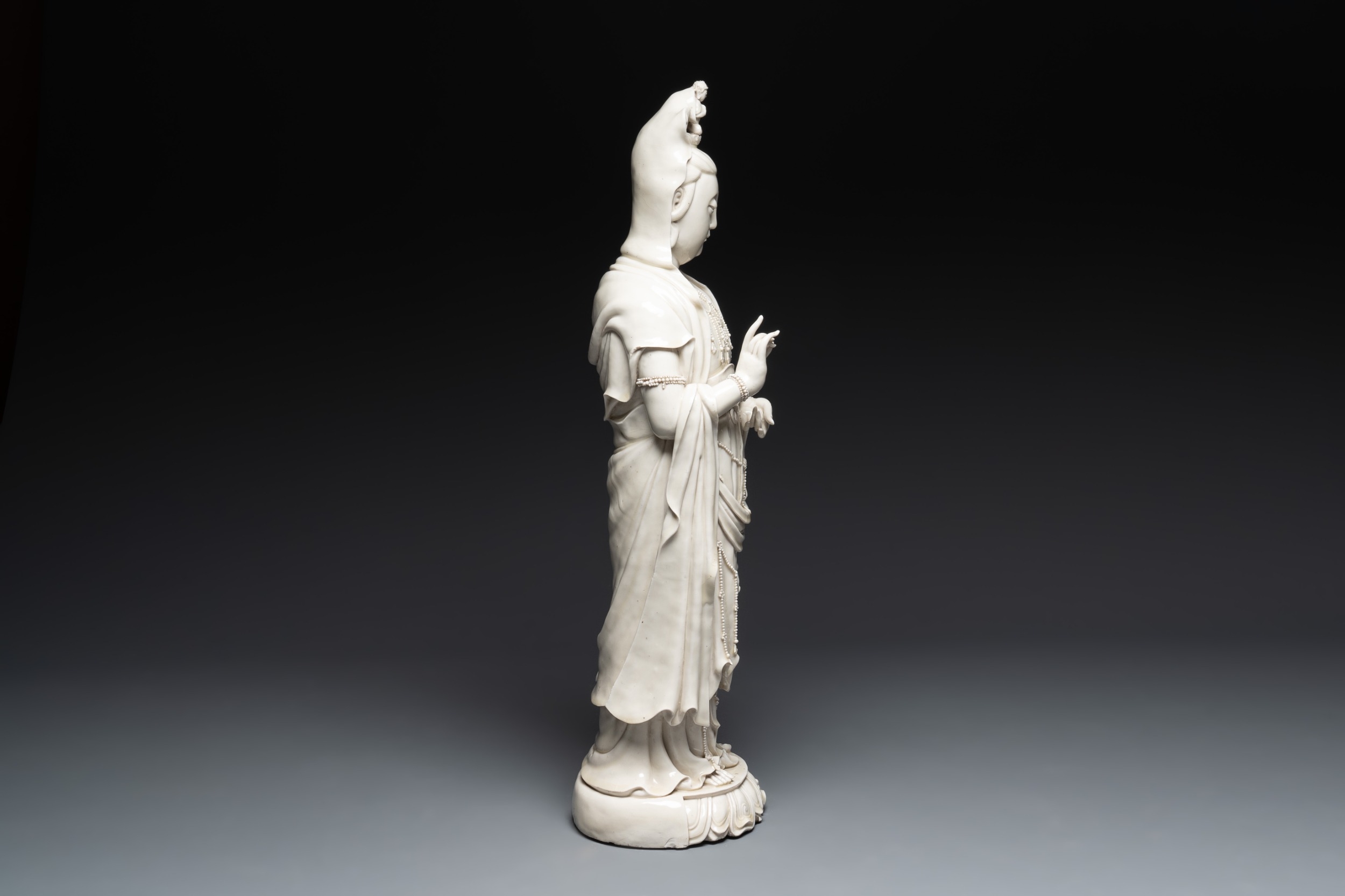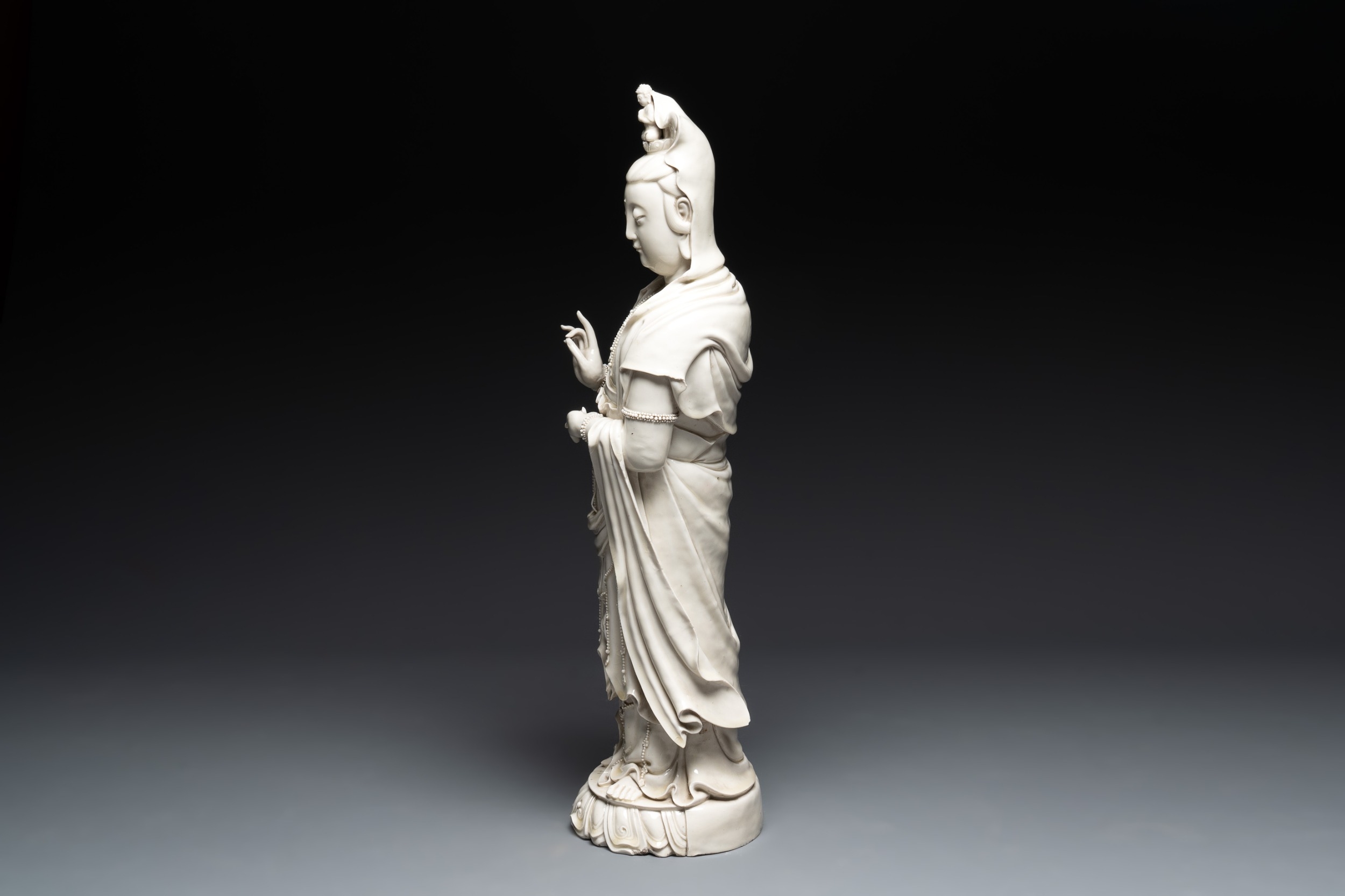 A large Chinese Dehua blanc de Chine Guanyin, He Chaozong and Xuande mark, Republic