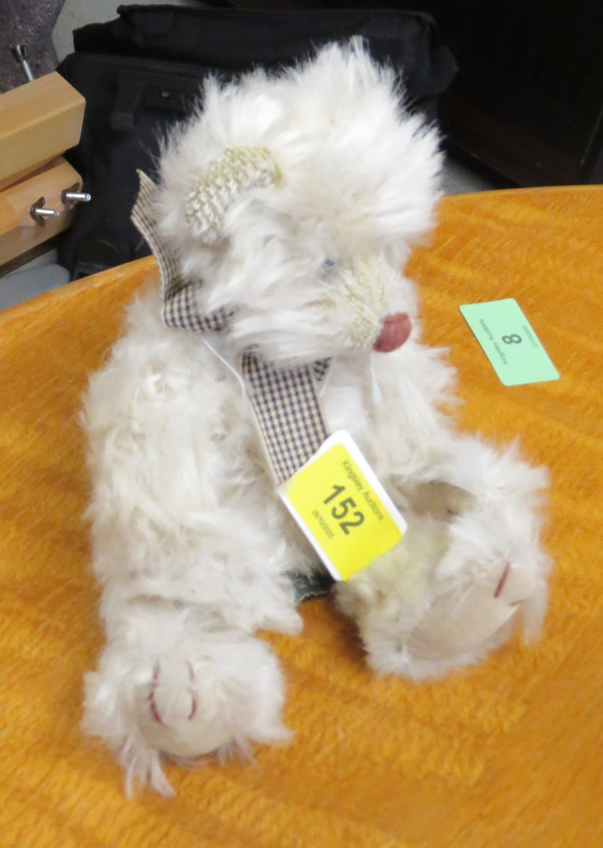 A Small Russ Bear "Claridge" with a Check Bow - approx 5" Seated Position