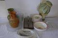Vases, glasses, bowls, table lamp etc