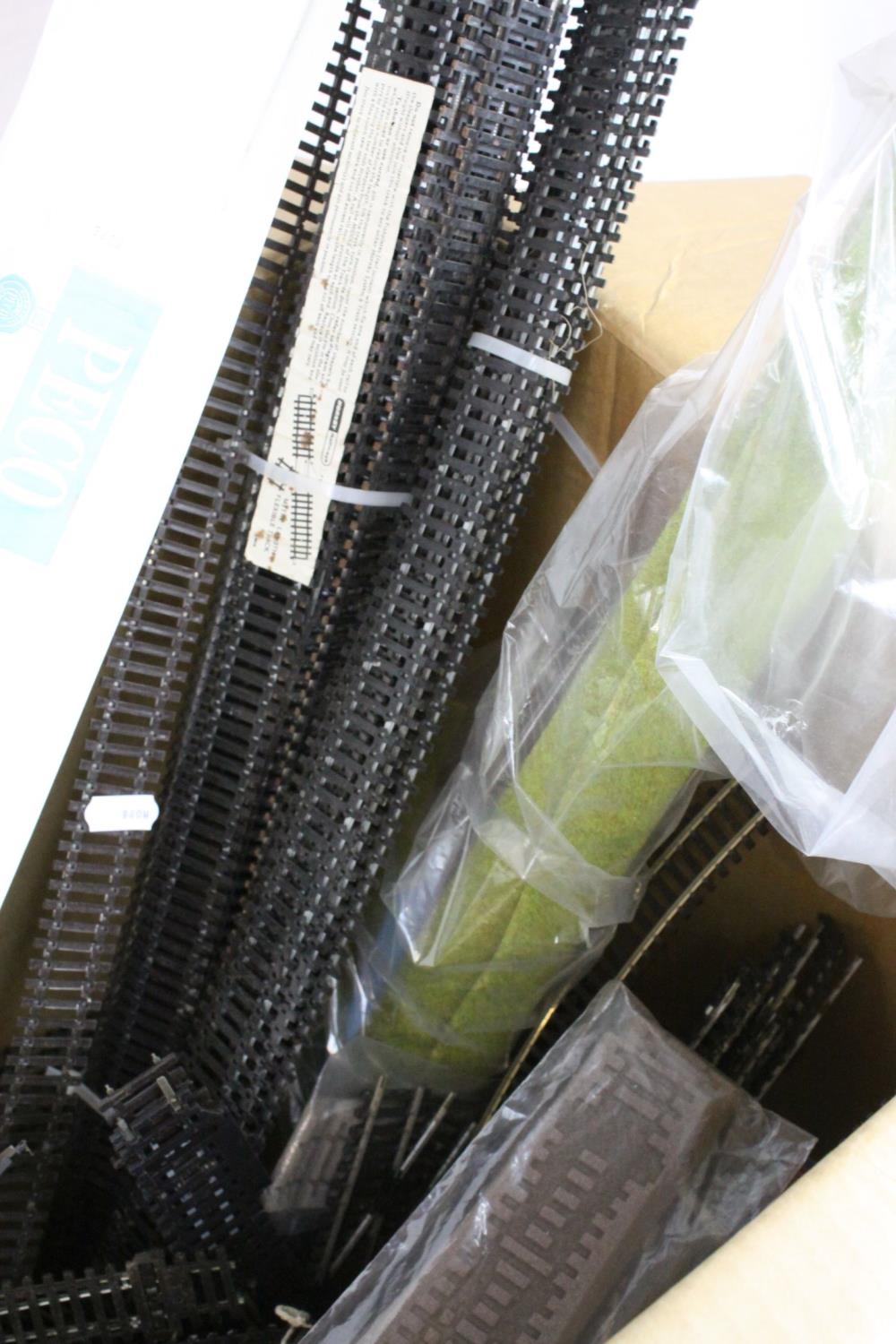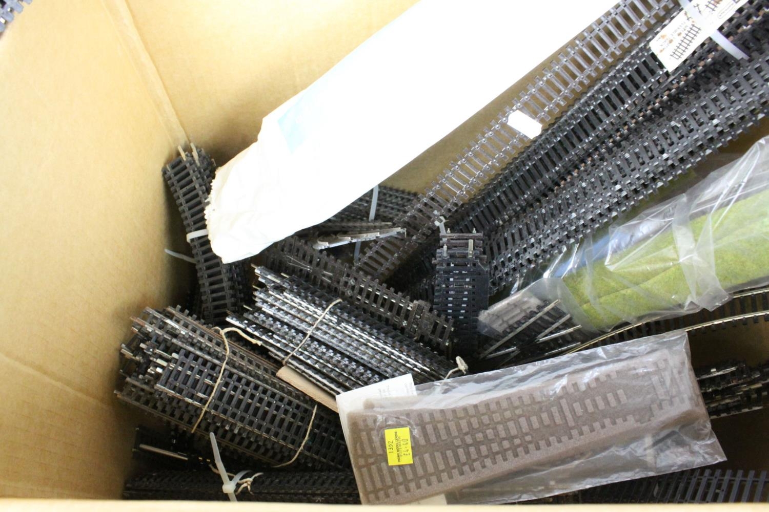 Large group of OO gauge model railway track to include various sized straights and curves