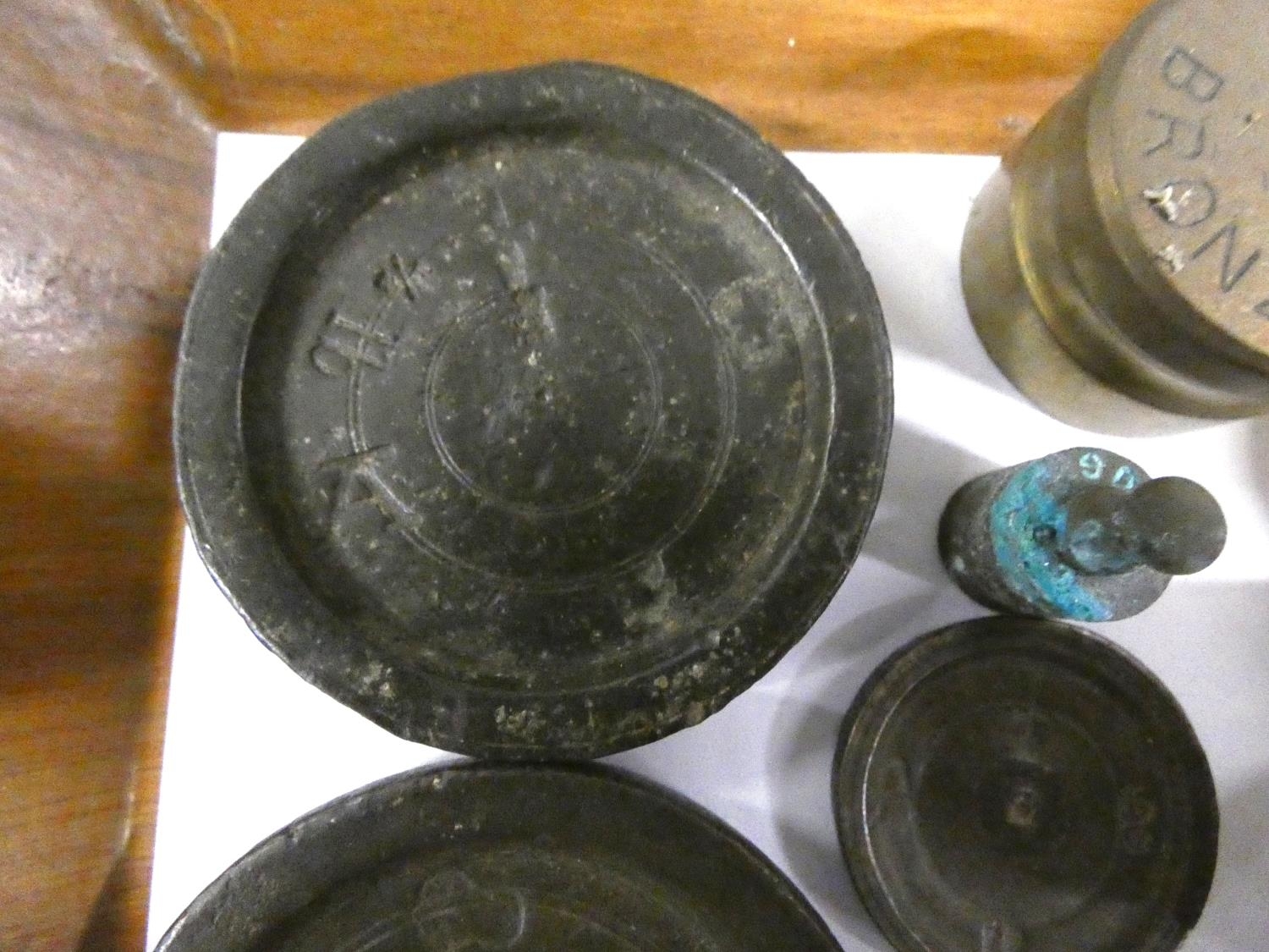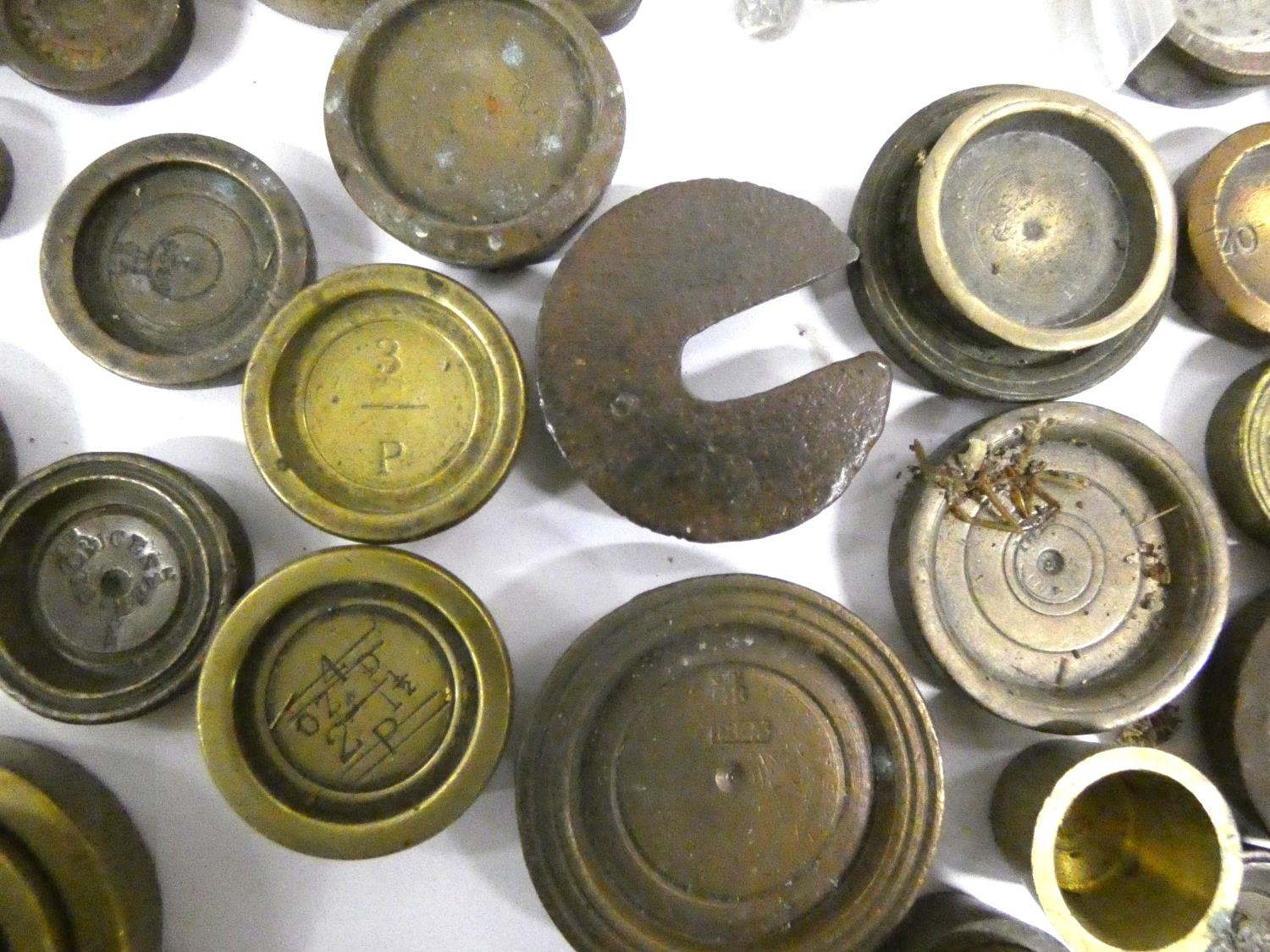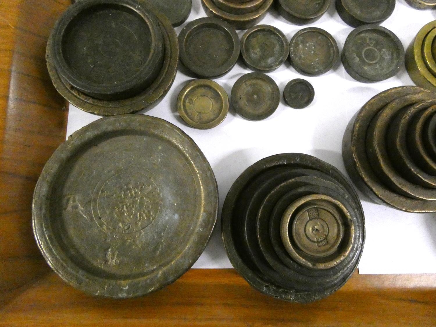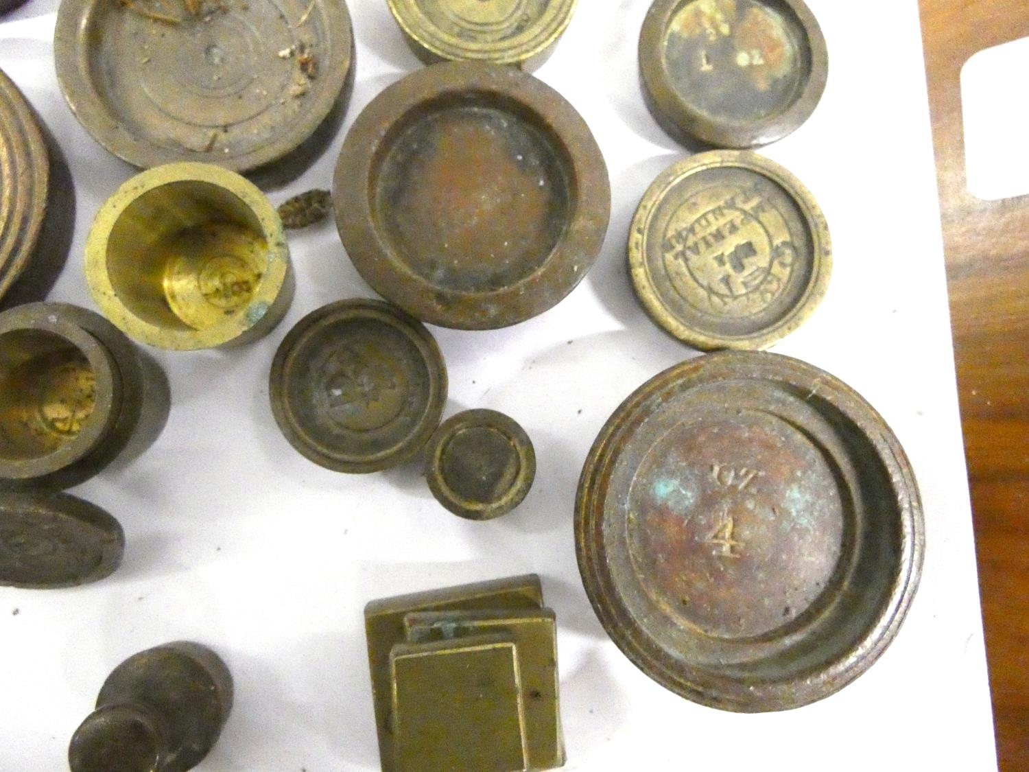 Large collection of George III brass and bronze weights to include bank weights.