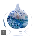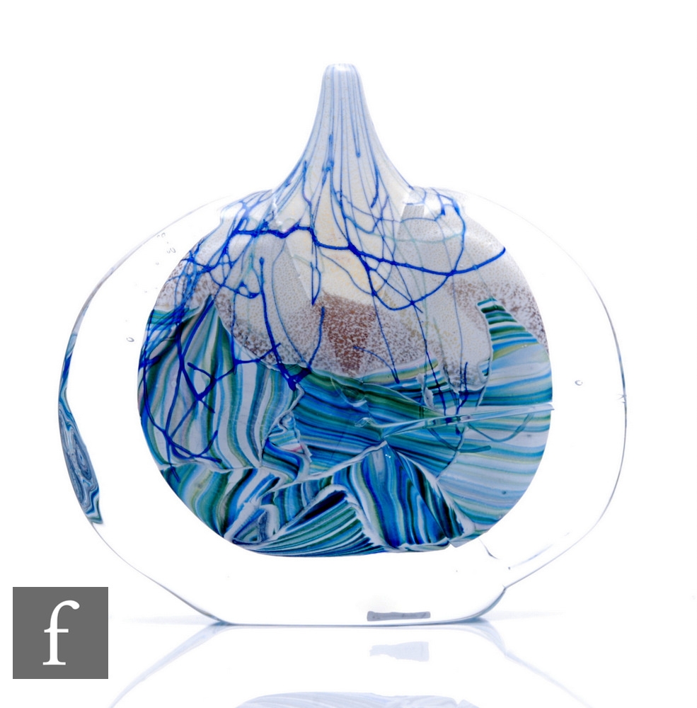 Timothy Harris - Isle of Wight - A Contemporary 'glass Seascape' fish head vase, opaque tonal blue and seagreen core with blue trails and foil inclusions, cased in clear, engraved signature no. 1/3, dated 2016, height 22cm.