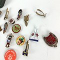 Assortment of badges and brooches including early Robinsons marmalade and Scouting.