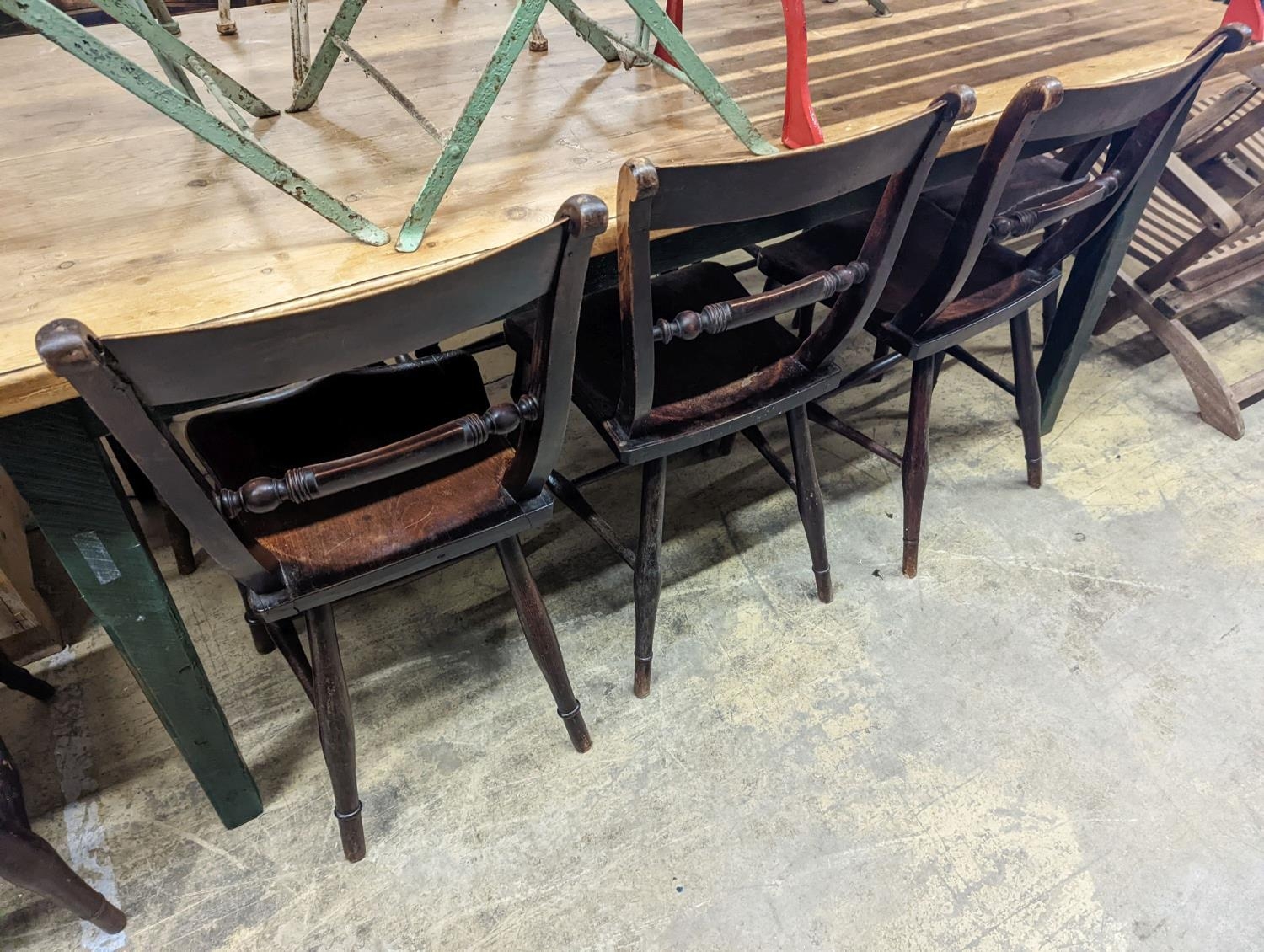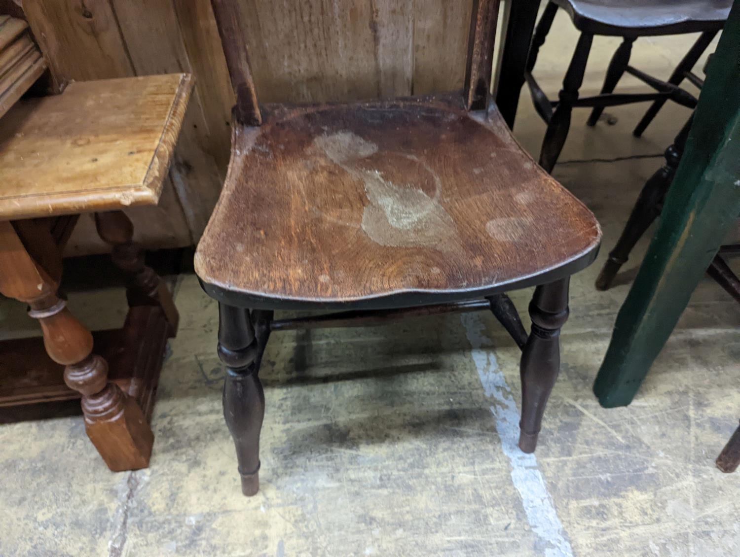 A harlequin set of eight 19th century beech and elm Windsor kitchen chairs