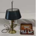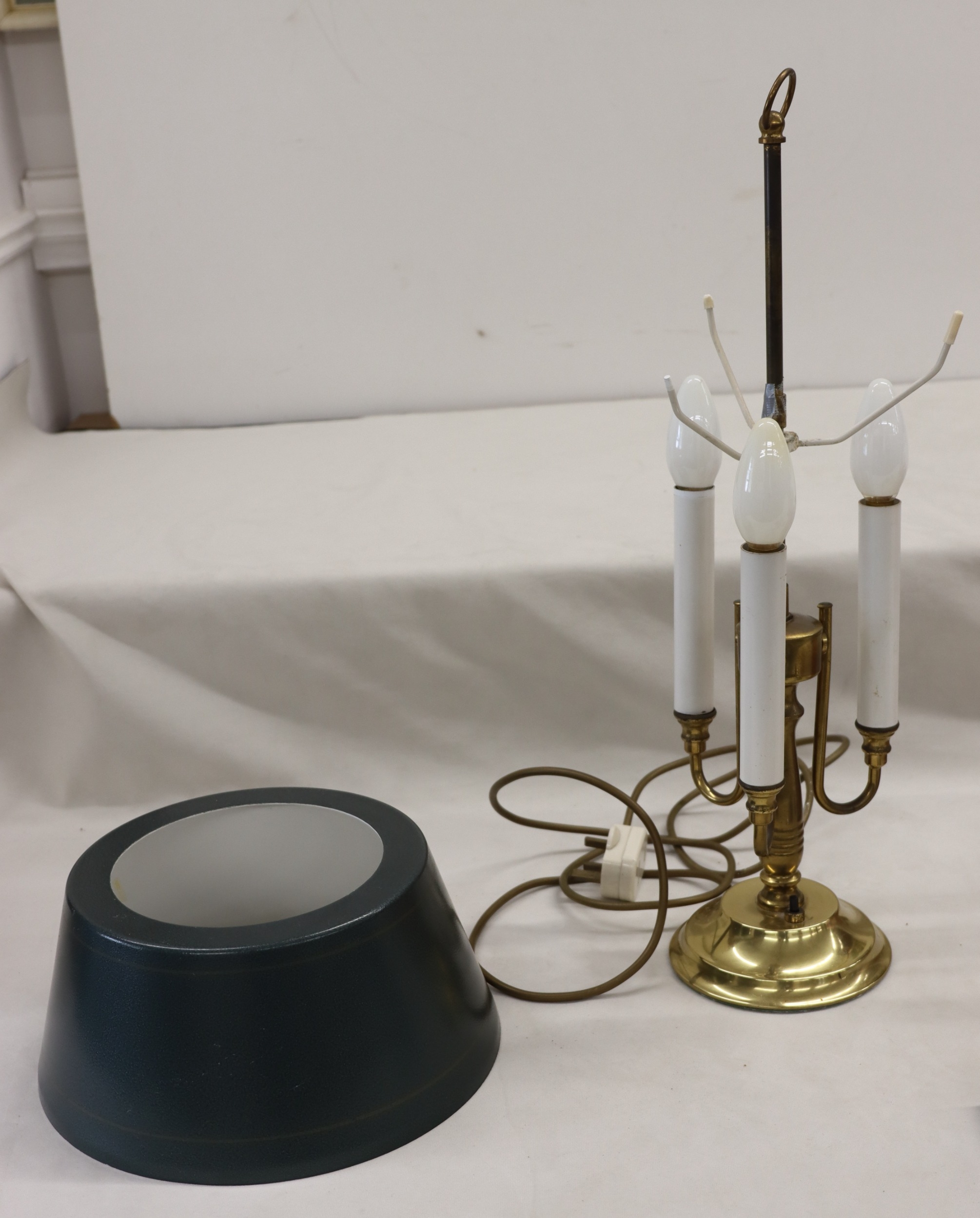 A 3-light lamp, 55.5cm high and a tan leather gentleman's tr...