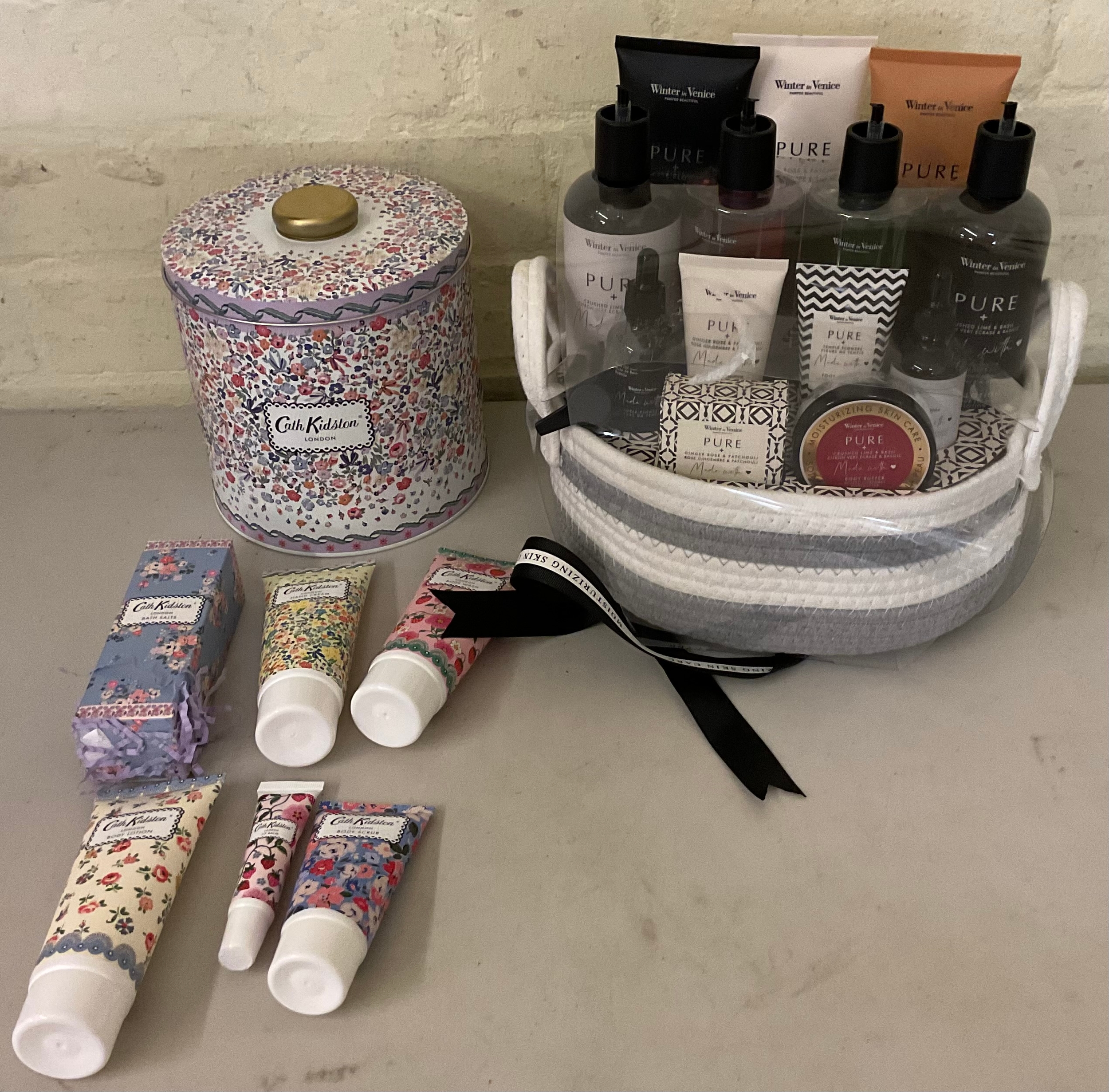 WINTER IN VENICE GIFT SET - INCLUDING SHOWER GEL, HAND CREAM, HAND GEL,BATH SALT - DAMAGED DISPENSER TOPS TOGETHER WITH A CATH KIDSTON 6 PIECE GIFT SET IN DECORATIVE TIN