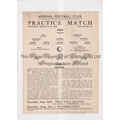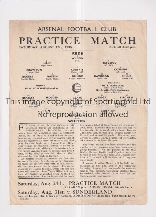 ARSENAL Single sheet programme for the Practice Match at Highbury 17/8/1935, slightly folded in four. Generally good