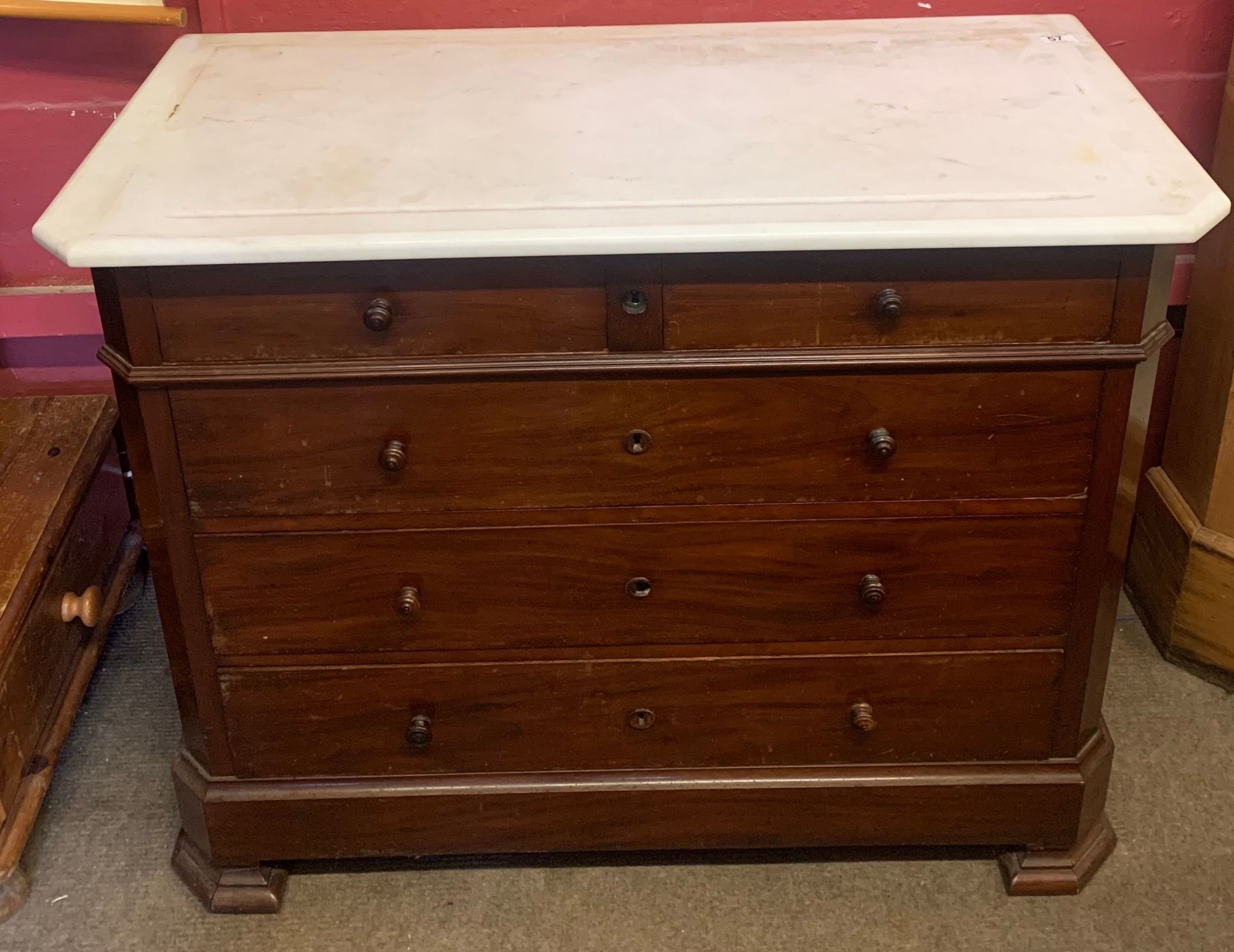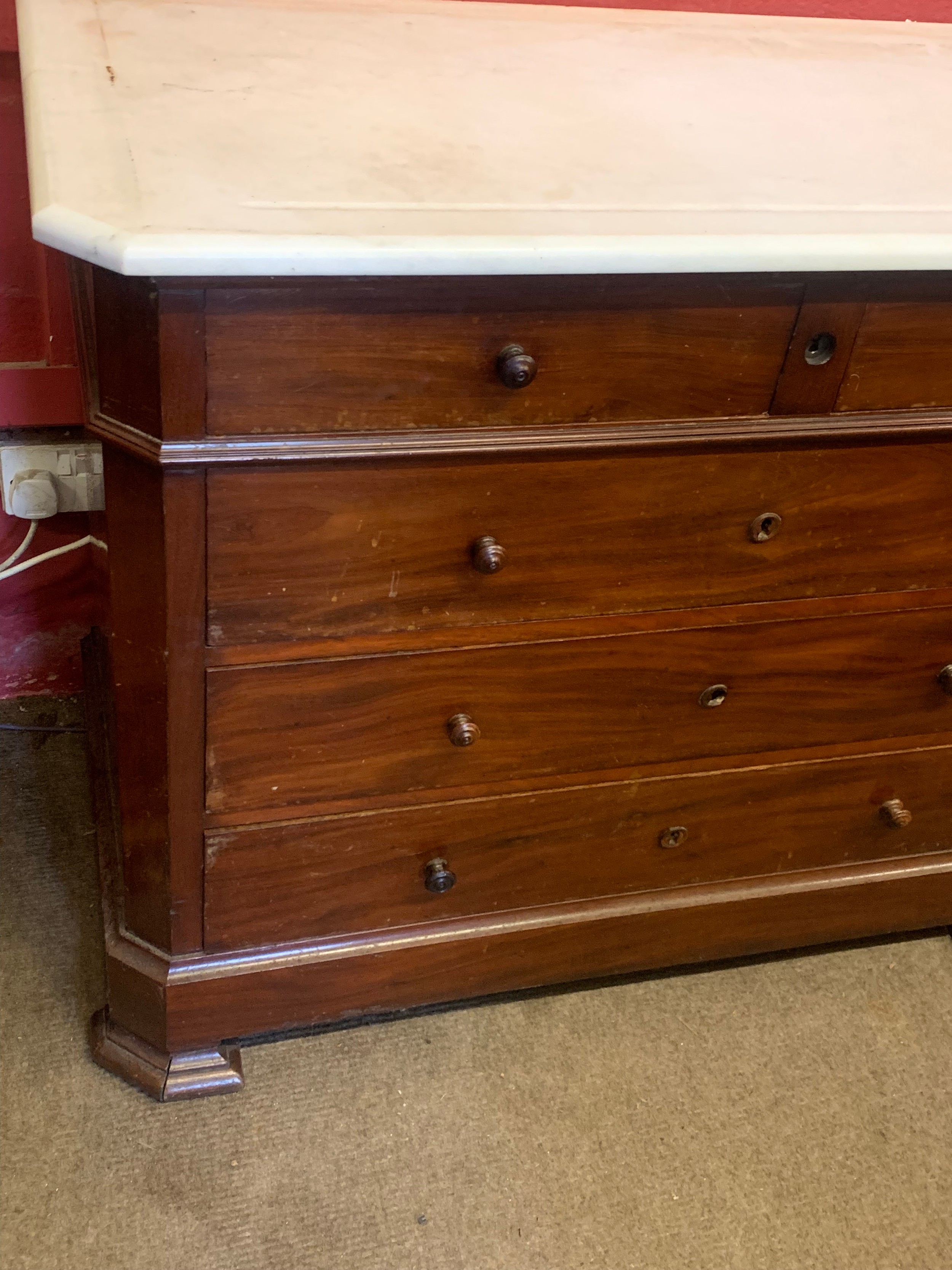 French Marble Top Two Over Three Chest Of Drawers. 108 x 51 x 85 cms