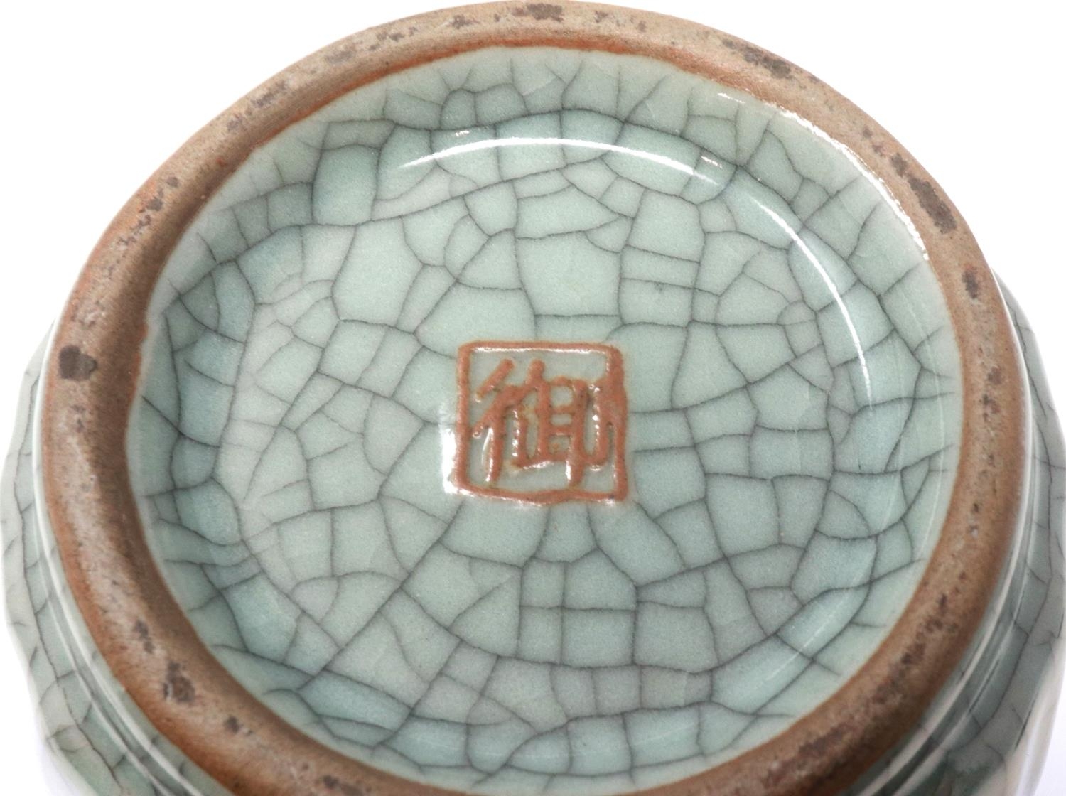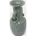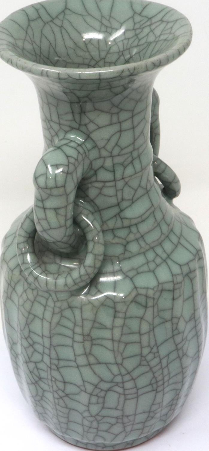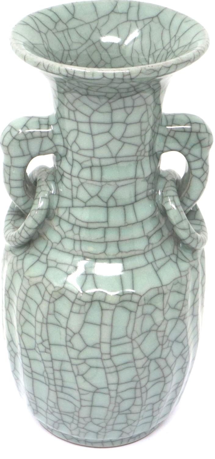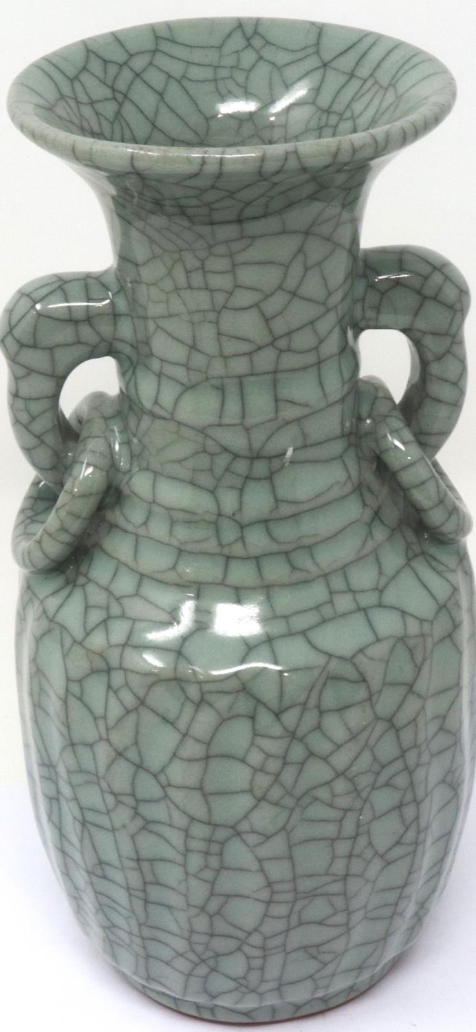 Chinese celadon crackle glazed vase, character mark to base, H: 22 cm, no cracks or chips. P&P Group 2 (£18+VAT for the first lot and £3+VAT for subsequent lots)