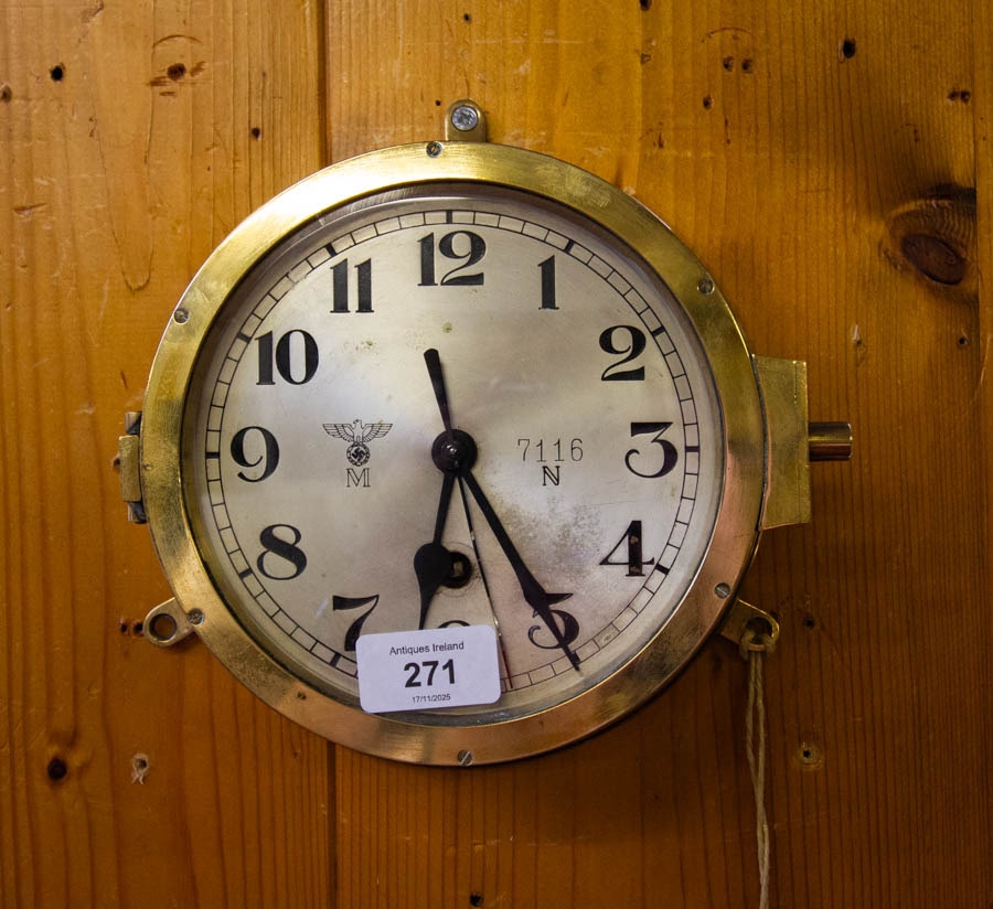 KRIEGSMARINE BULKHEAD NAVAL CLOCK 22CM DIAM