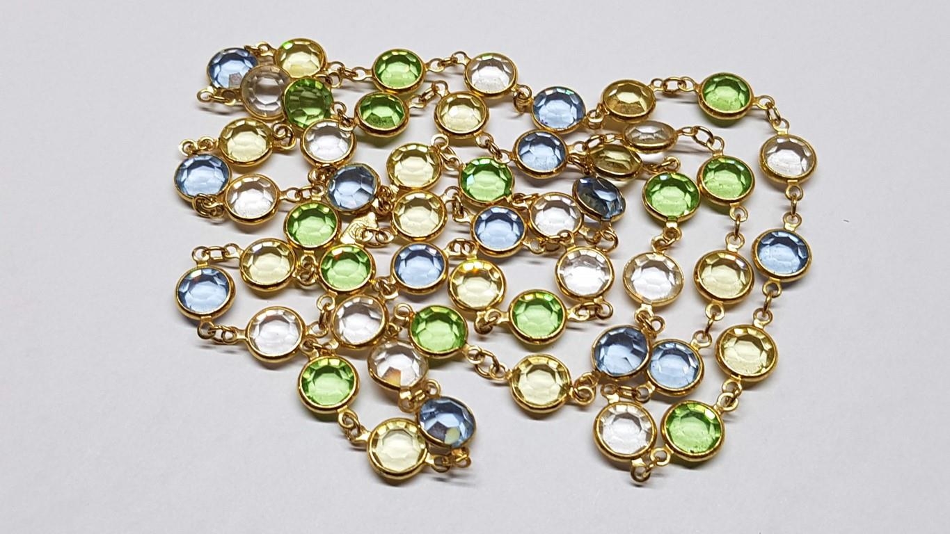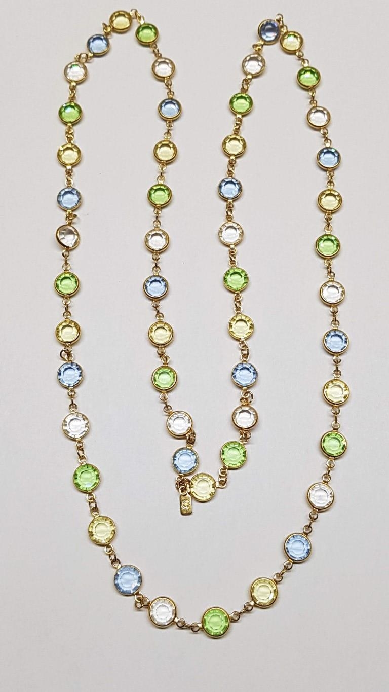 "In Vogue" Multicolour Swarovski Necklace (Green / Yellow / Blue / Clear Crystals( (L:88cm)