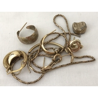 A bag of scrap 9ct gold jewellery. Some items contain stones. Total weight approx. 8g