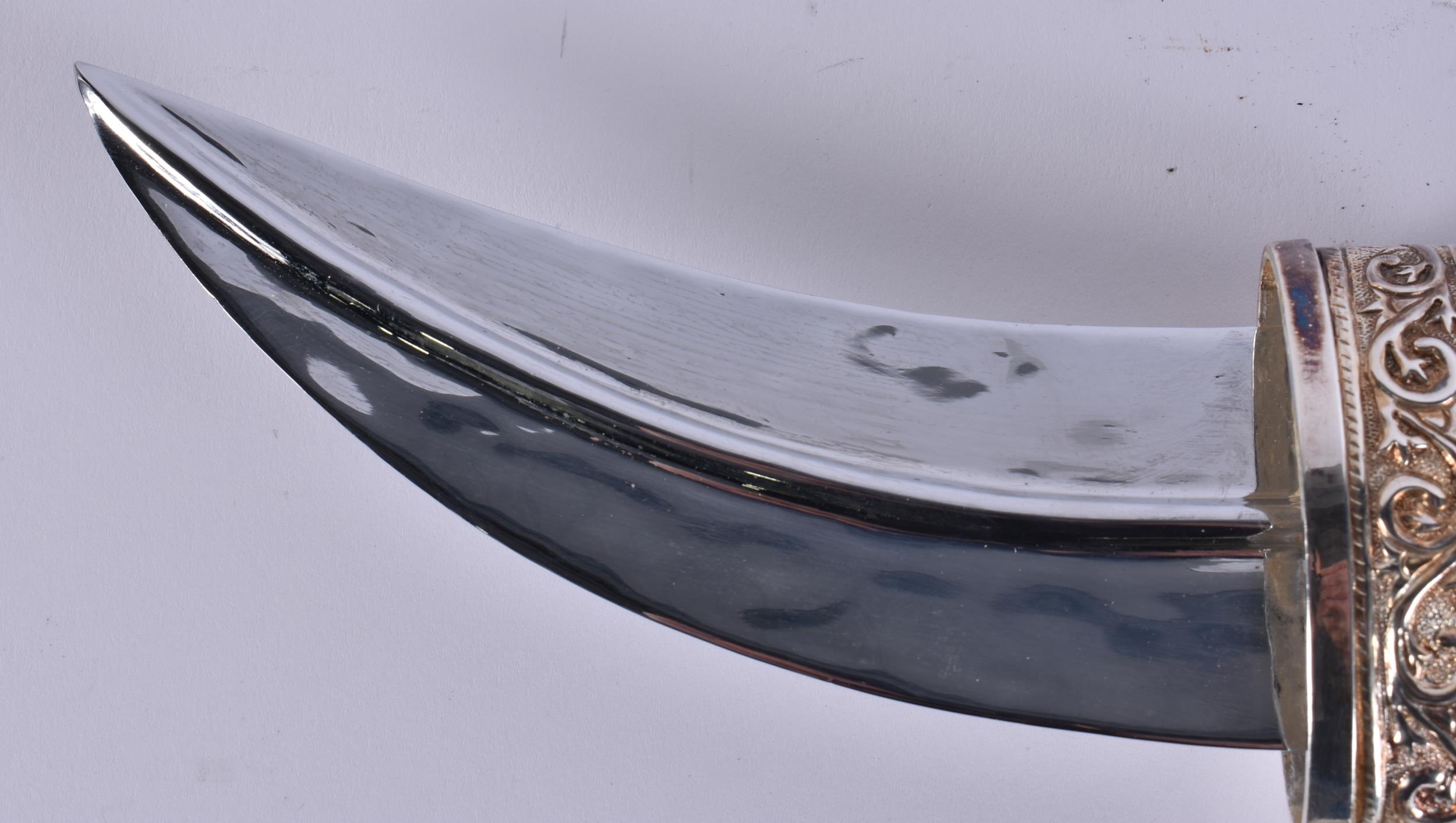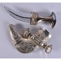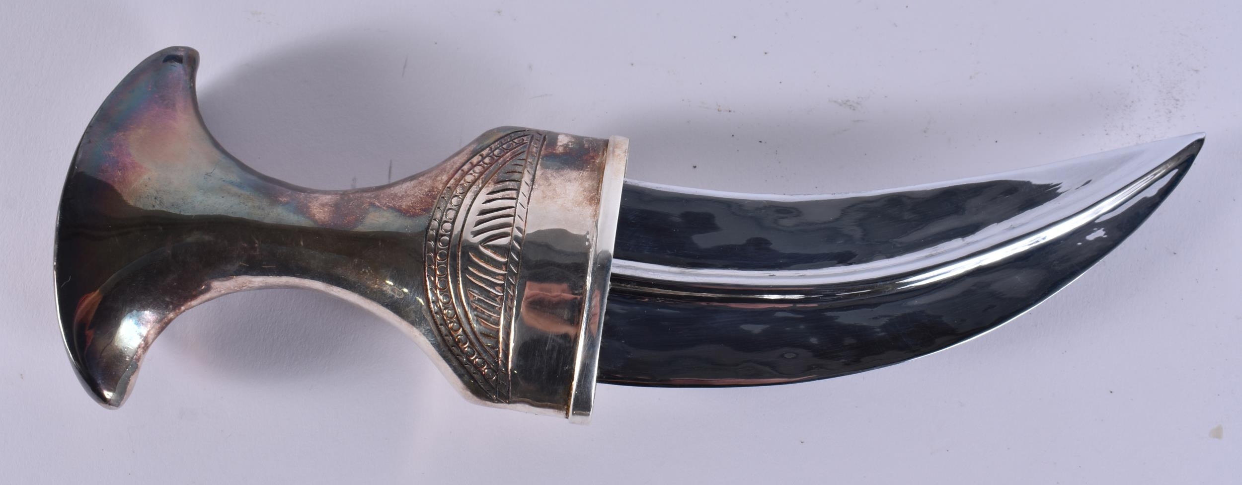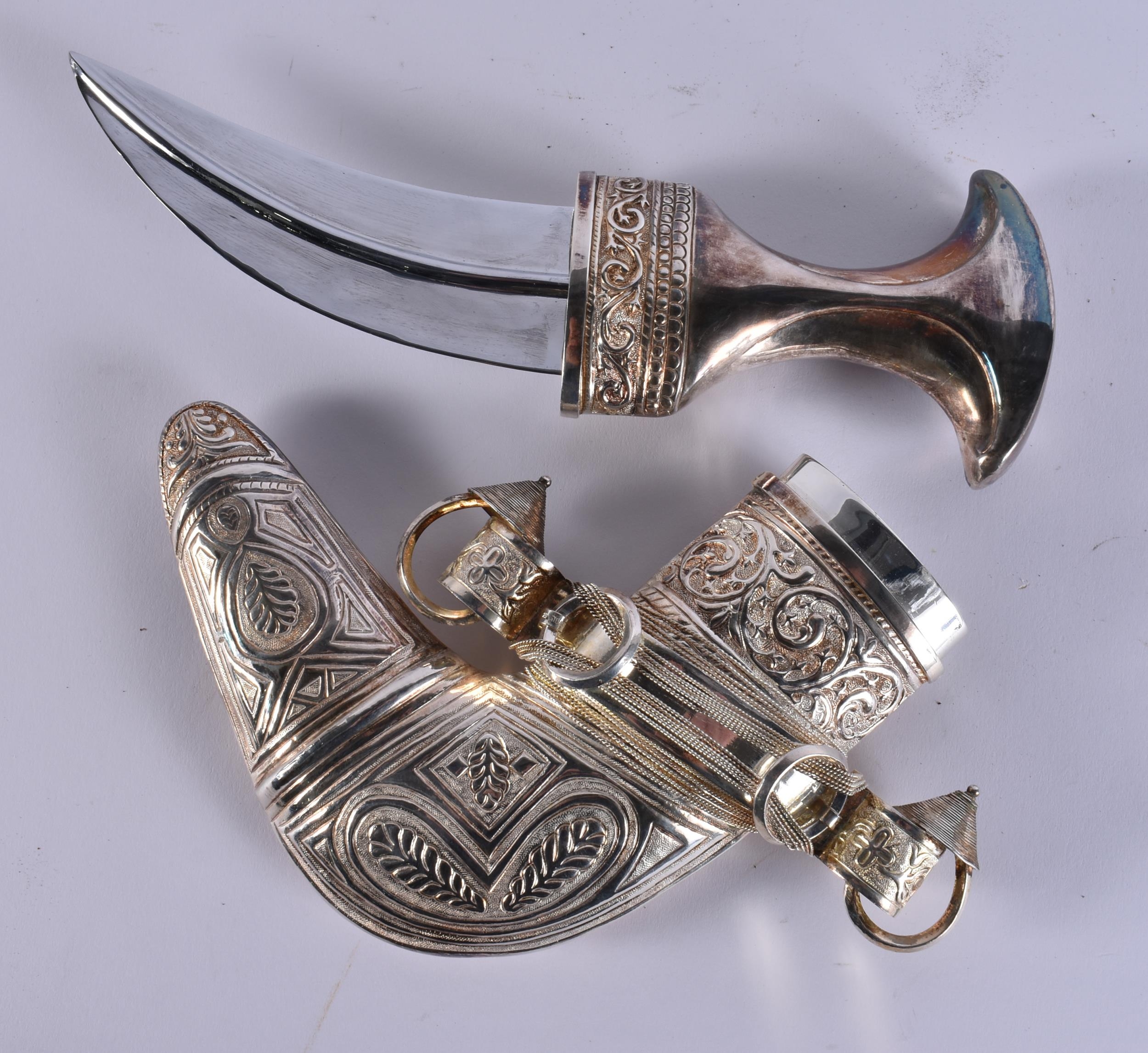 A MIDDLE EASTERN OMANI SILVER CASED JAMBIYA DAGGER. 697 grams overall. 28 cm x 16 cm.
