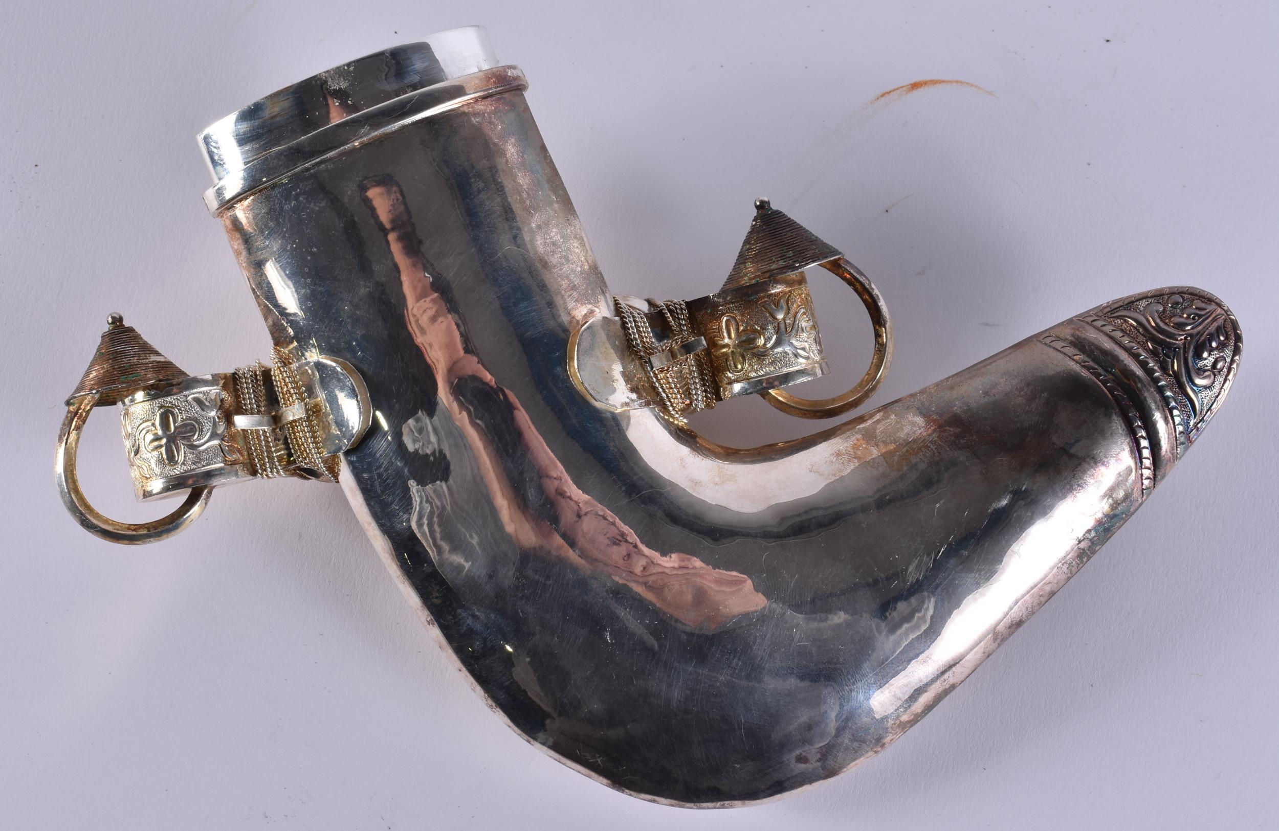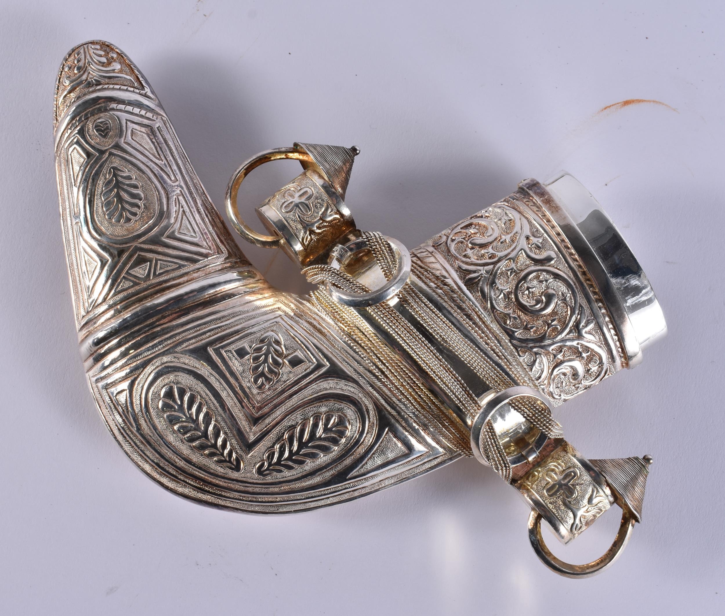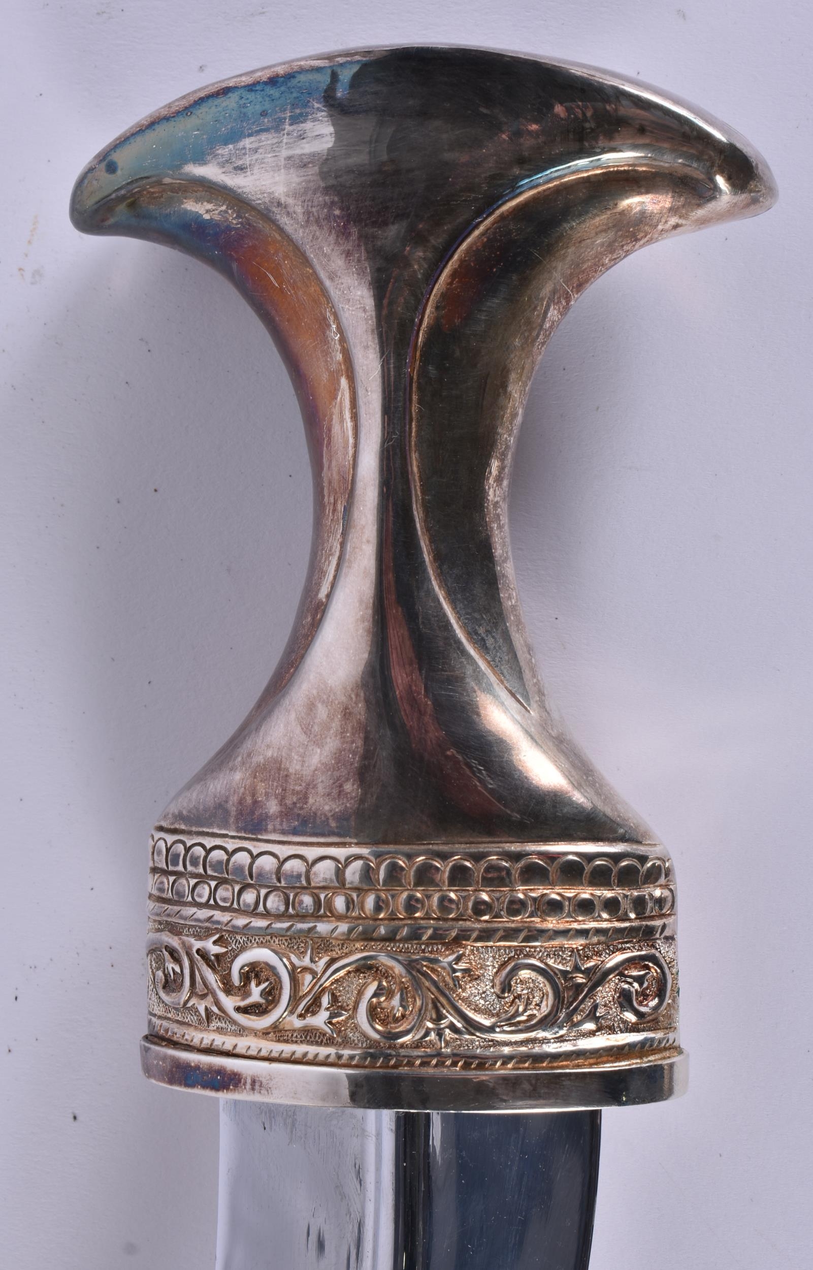 A MIDDLE EASTERN OMANI SILVER CASED JAMBIYA DAGGER. 697 grams overall. 28 cm x 16 cm.