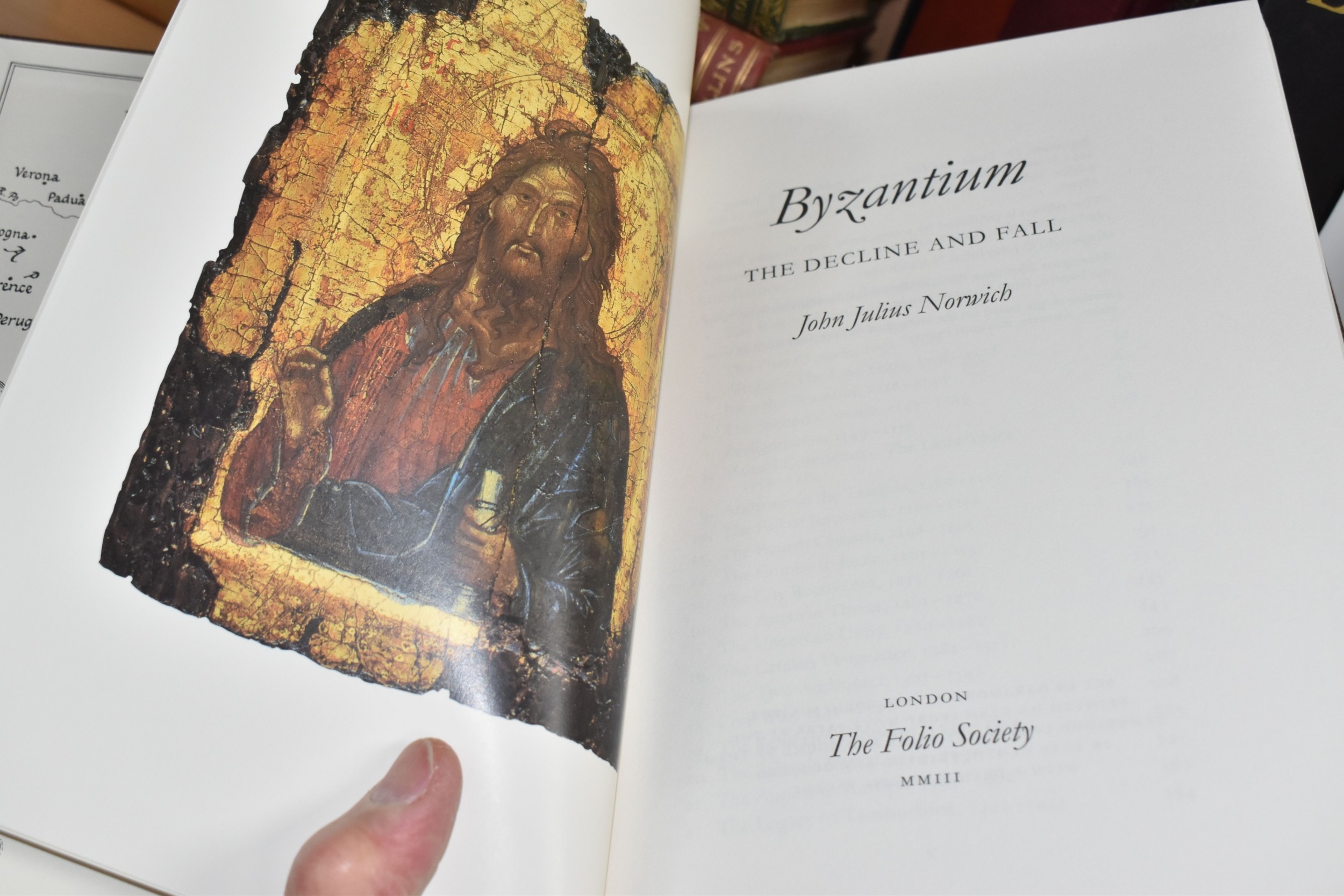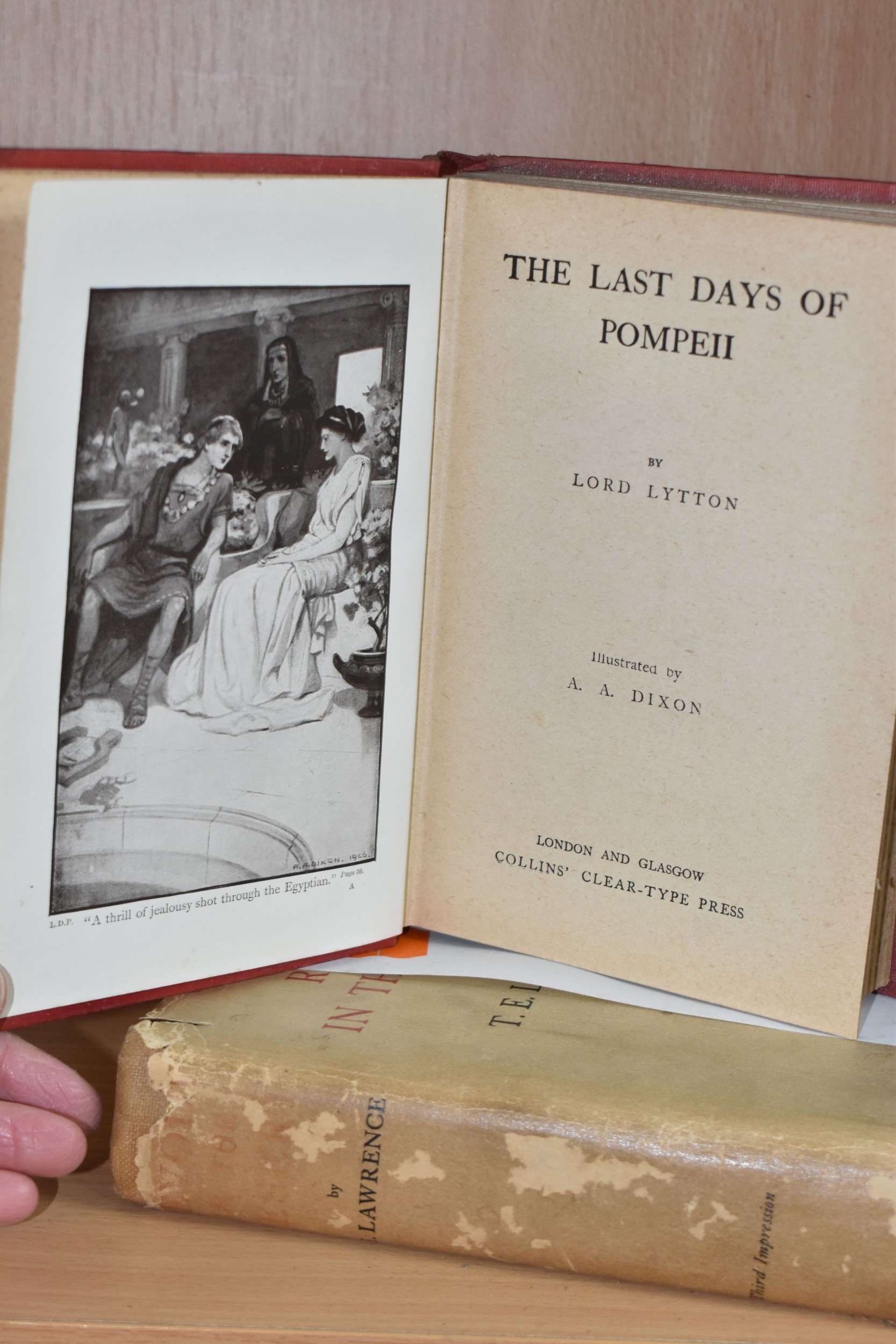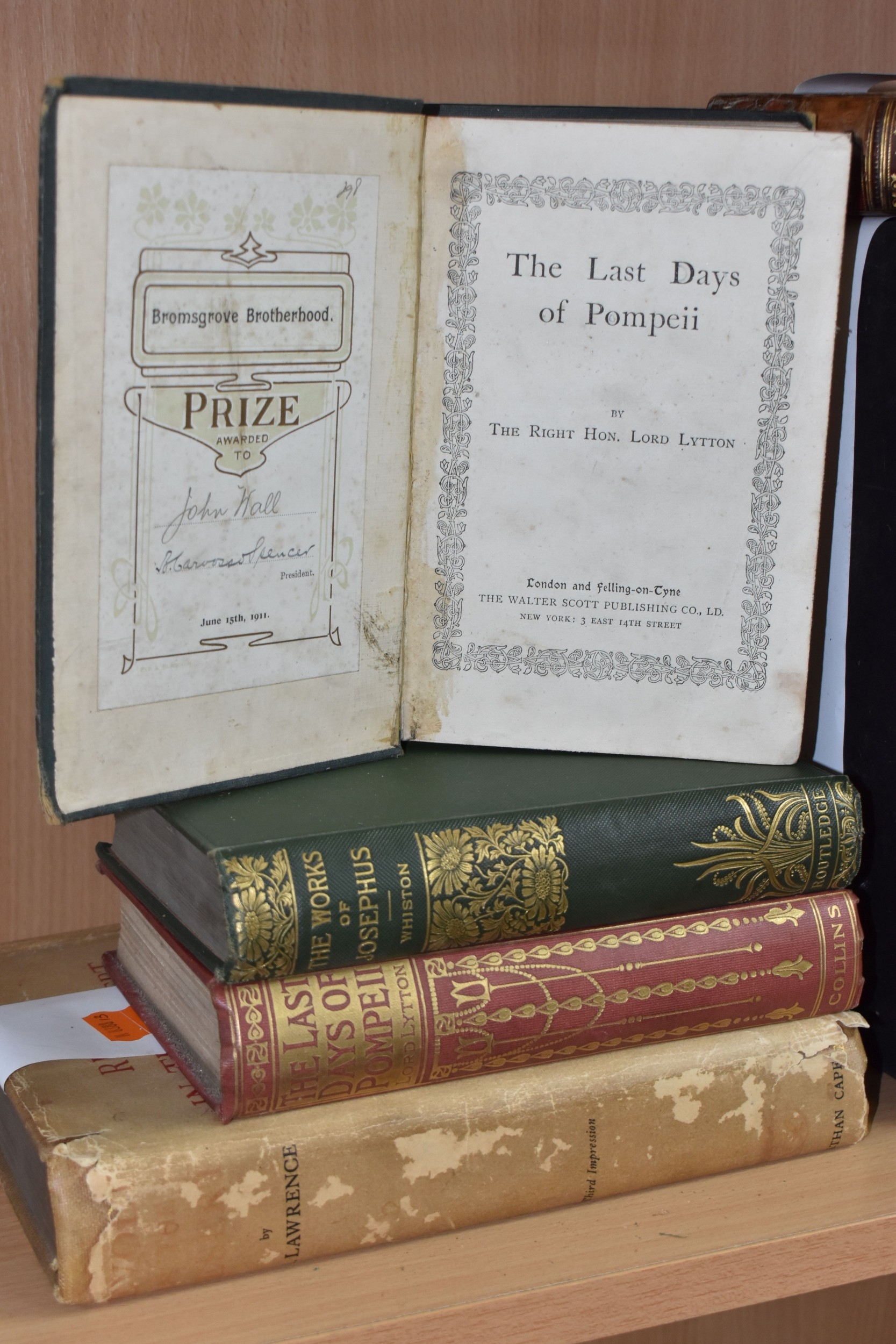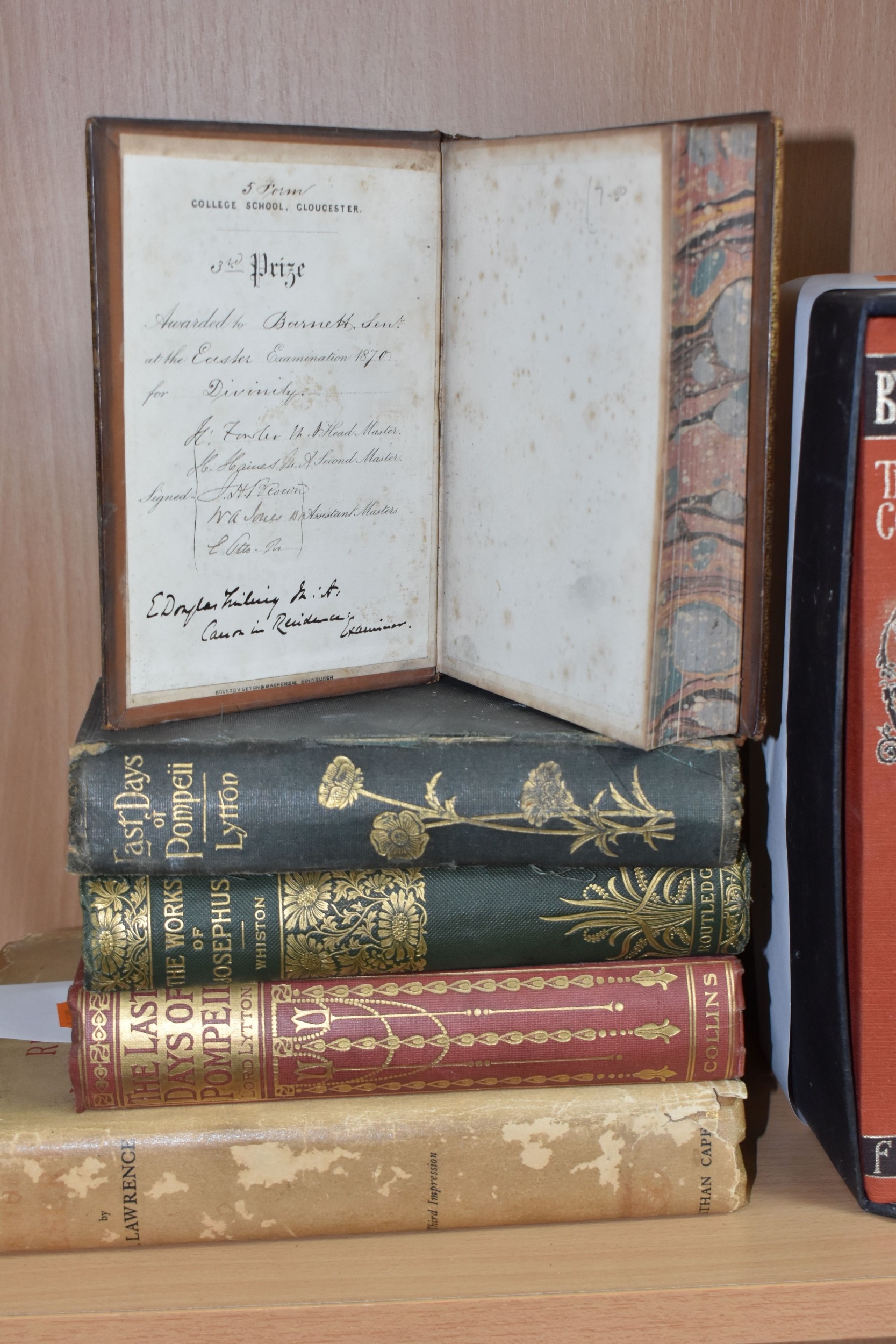 BOOKS, eight titles in hardback format comprising three FOLIO SOCIETY volumes of Byzantium; The Early Centuries, The Apogee and The Decline And Fall, Osborn: Rev. Henry S, The Holy Land Past And Present, Sketches OF Travel In Palestine, pub. Virtue And Co. 1808, Lytton: The Right Hon. Lord, The Last Days Of Pompeii, pub. The Walter Scott Publishing Co. 1884, Whiston; William, The Works Of Flavius Josephus, pub. George Routledge, Lytton; Lord, The Last Days Of Pompeii, pub. Collins' Clear-Type Press and Lawrence; T.E. Revolt In The Desert, pub. Jonathan Cape 1927