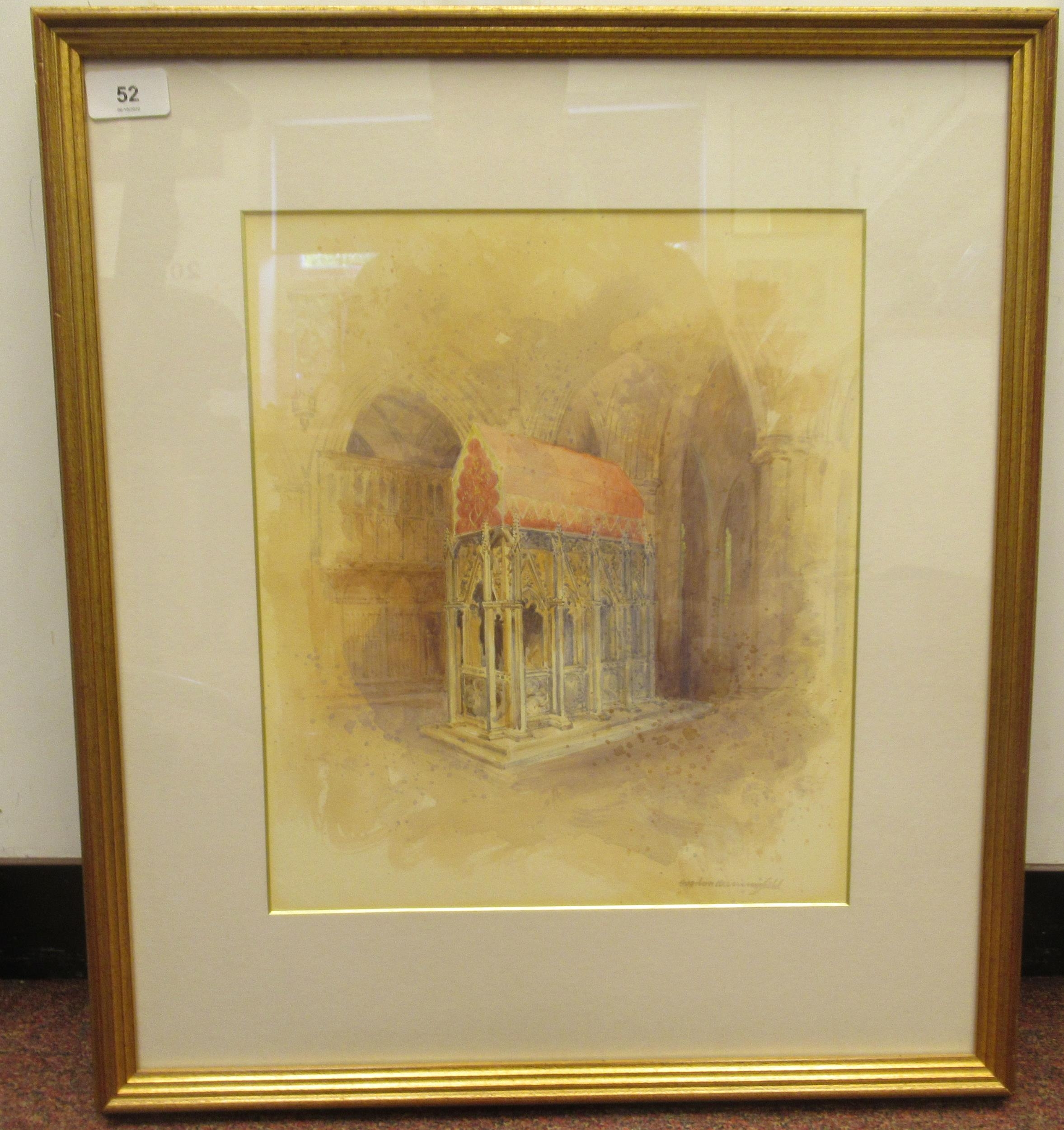 Gordon Beningfield - a Cathedral interior watercolour bears a signature 12" x 13 framed