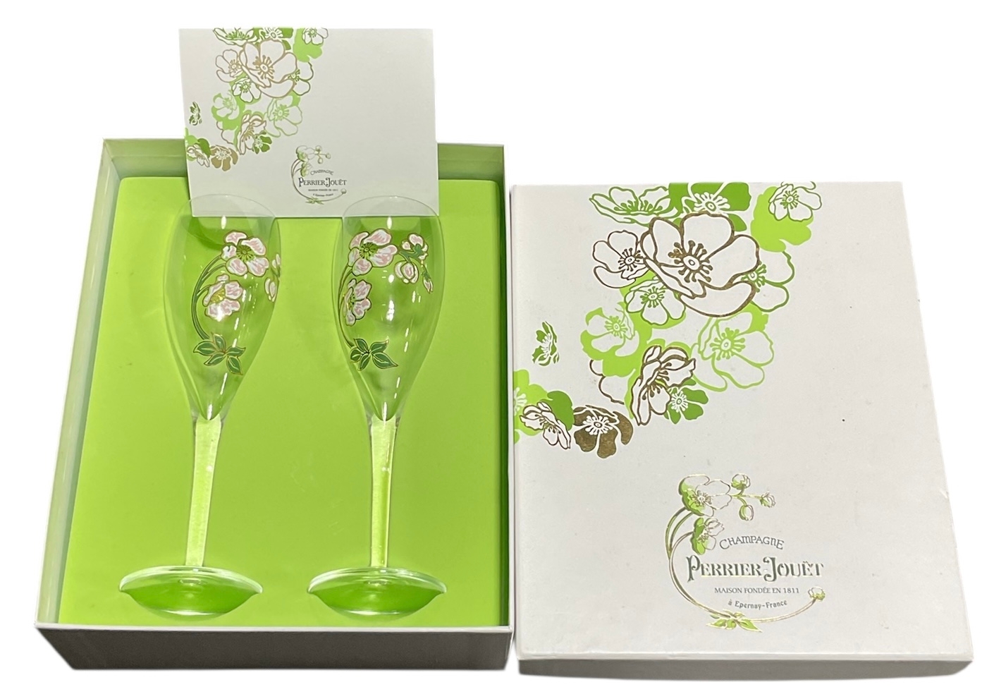A Boxed Set of Perrier-Jouet Champagne Glasses