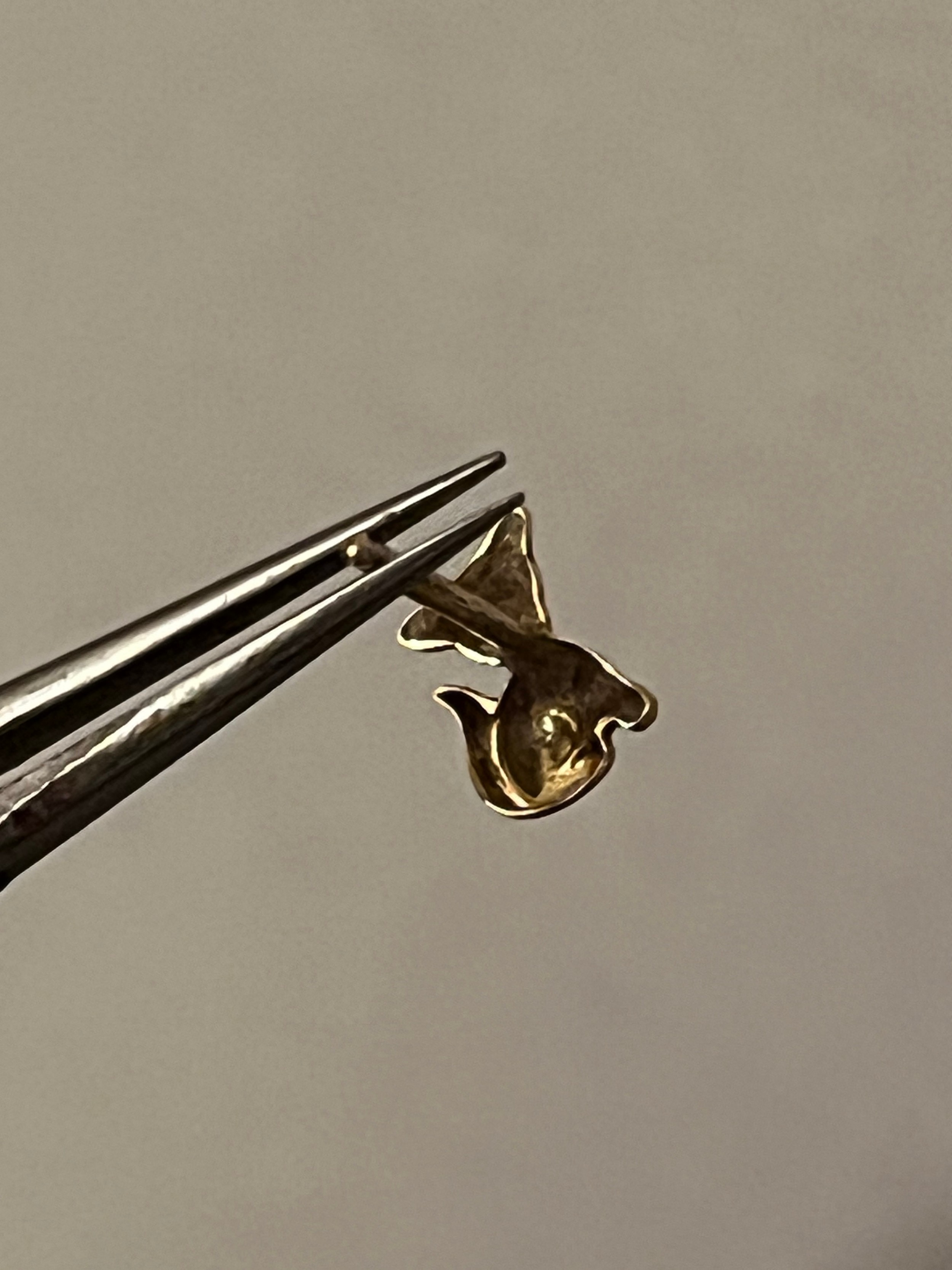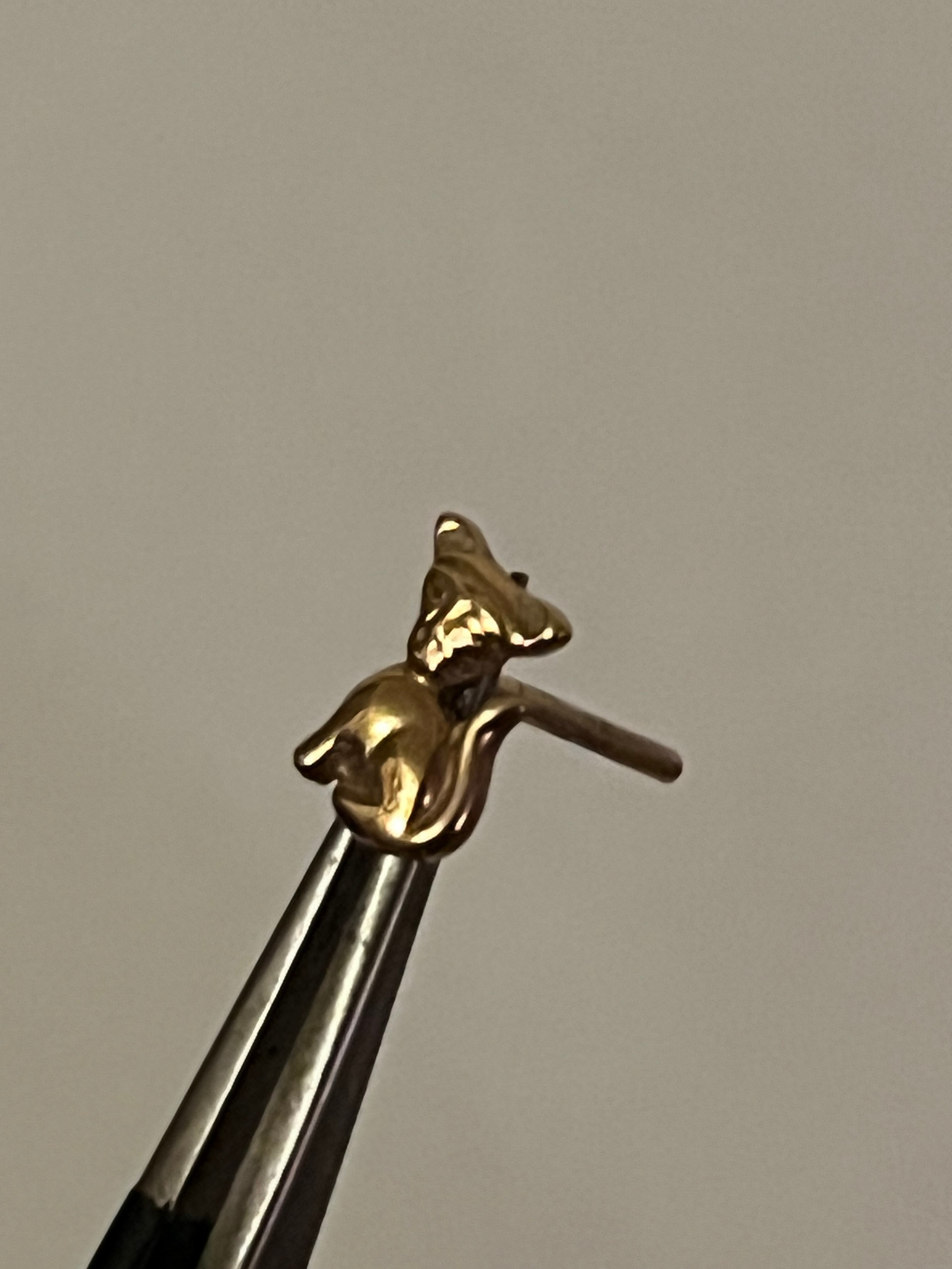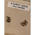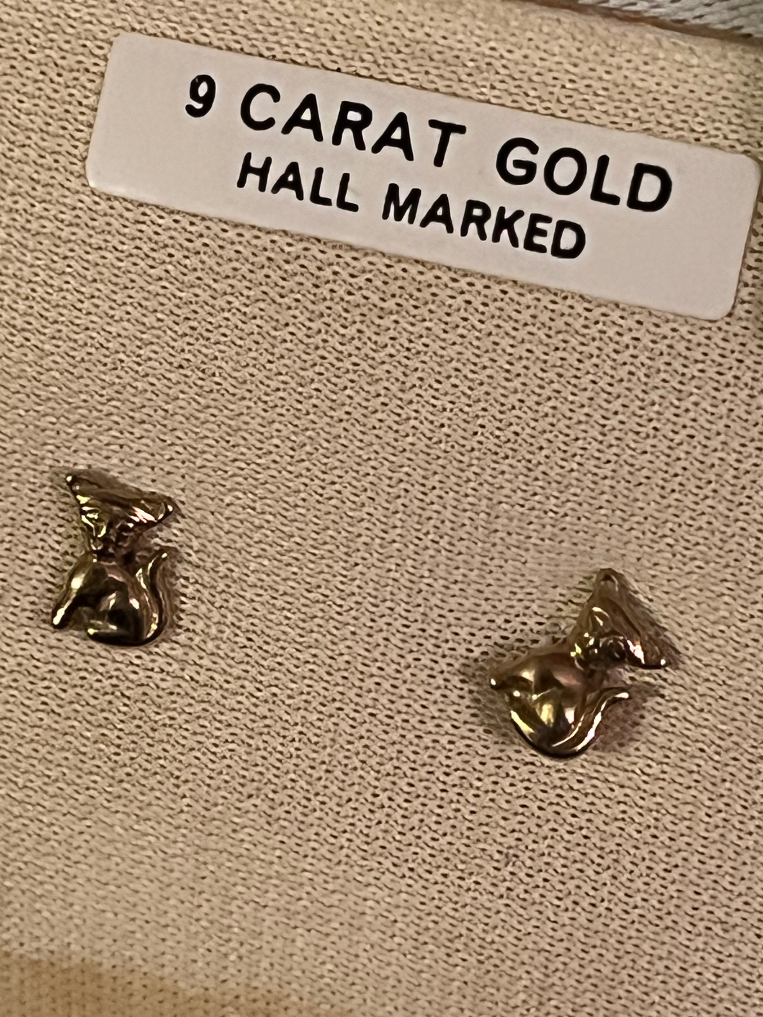 A pair of 9 ct gold cat motif hallmarked earrings with plastic clips. Birmingham assay office