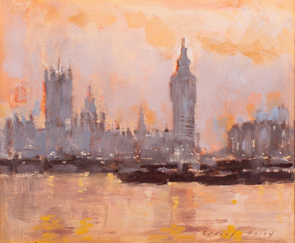 *Sydney Foley (British, 1916-2001) December Sunset, Westminster signed lower right oil on board 23.5 x 28.5cm Provenance: with label for the Mall Galleries, Armed Forces Art Society Exhibition, 1979