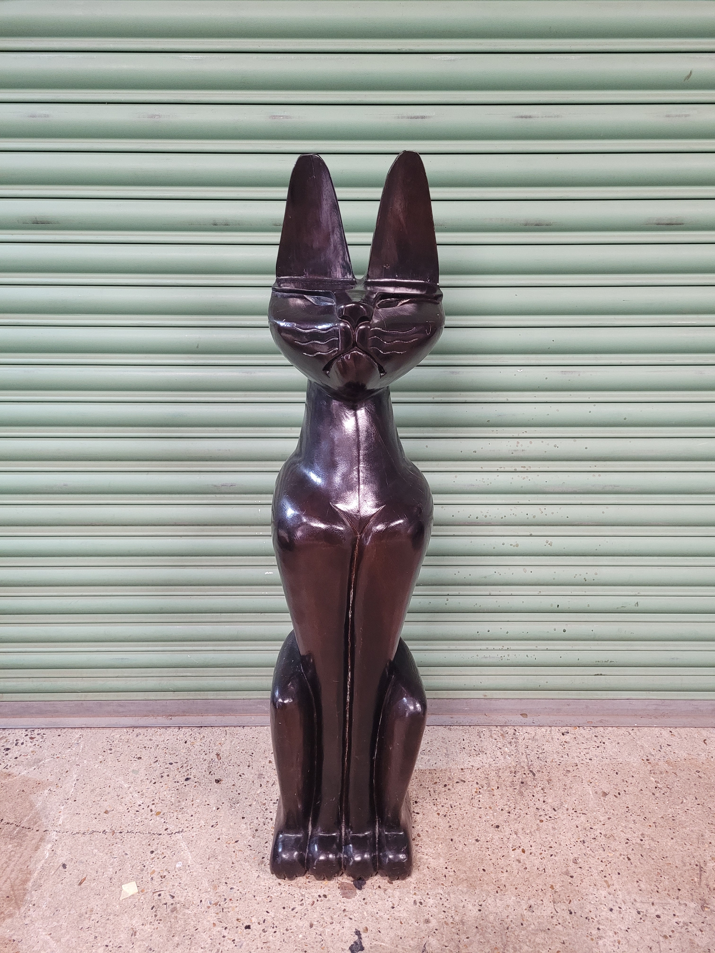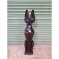 Large solid hardwood Sculpture of Egyptian cat figure - 128cm
