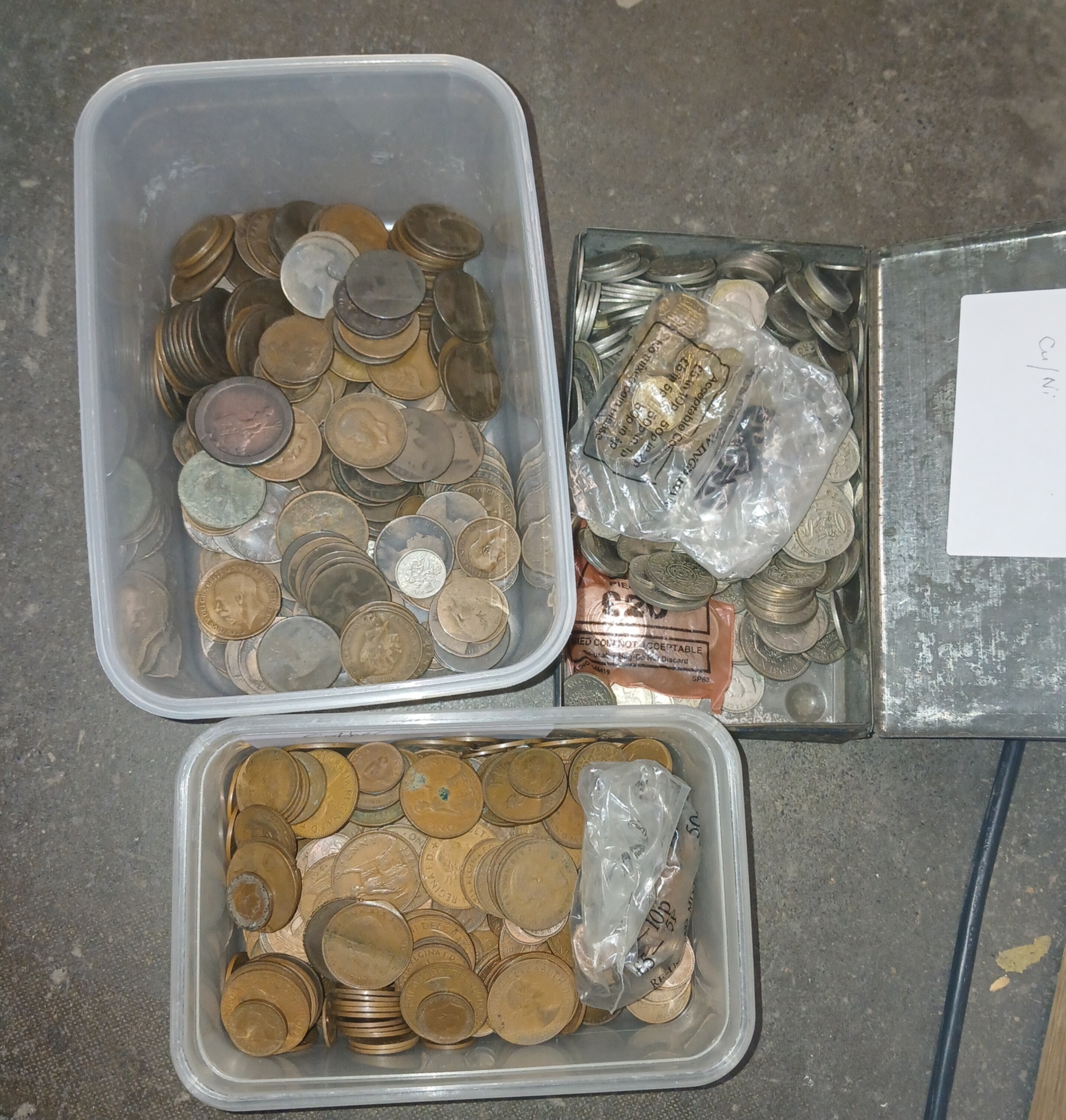 3 tubs of British coins - 2 copper and 1 cupro nickel