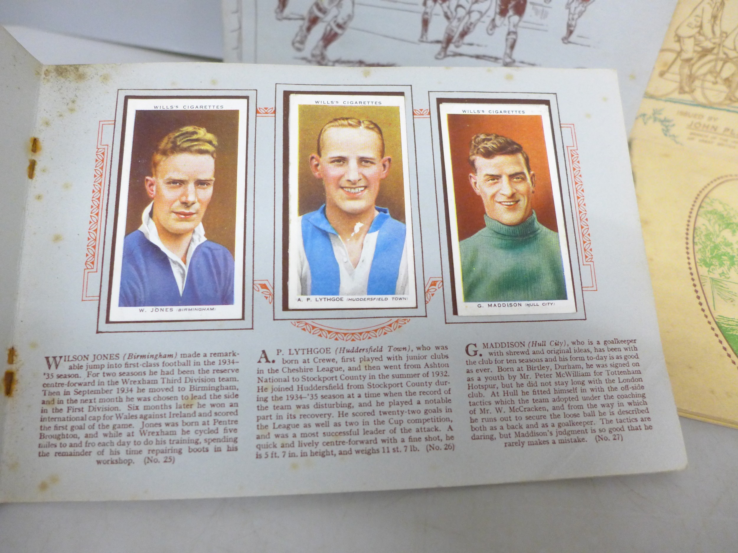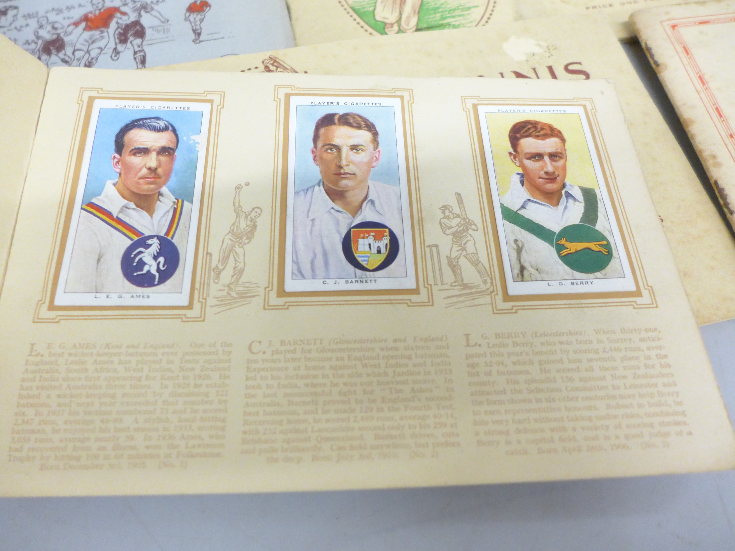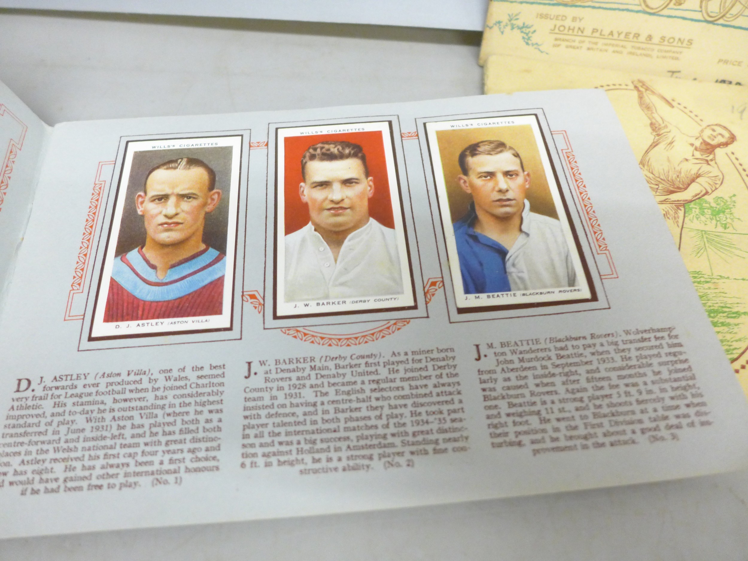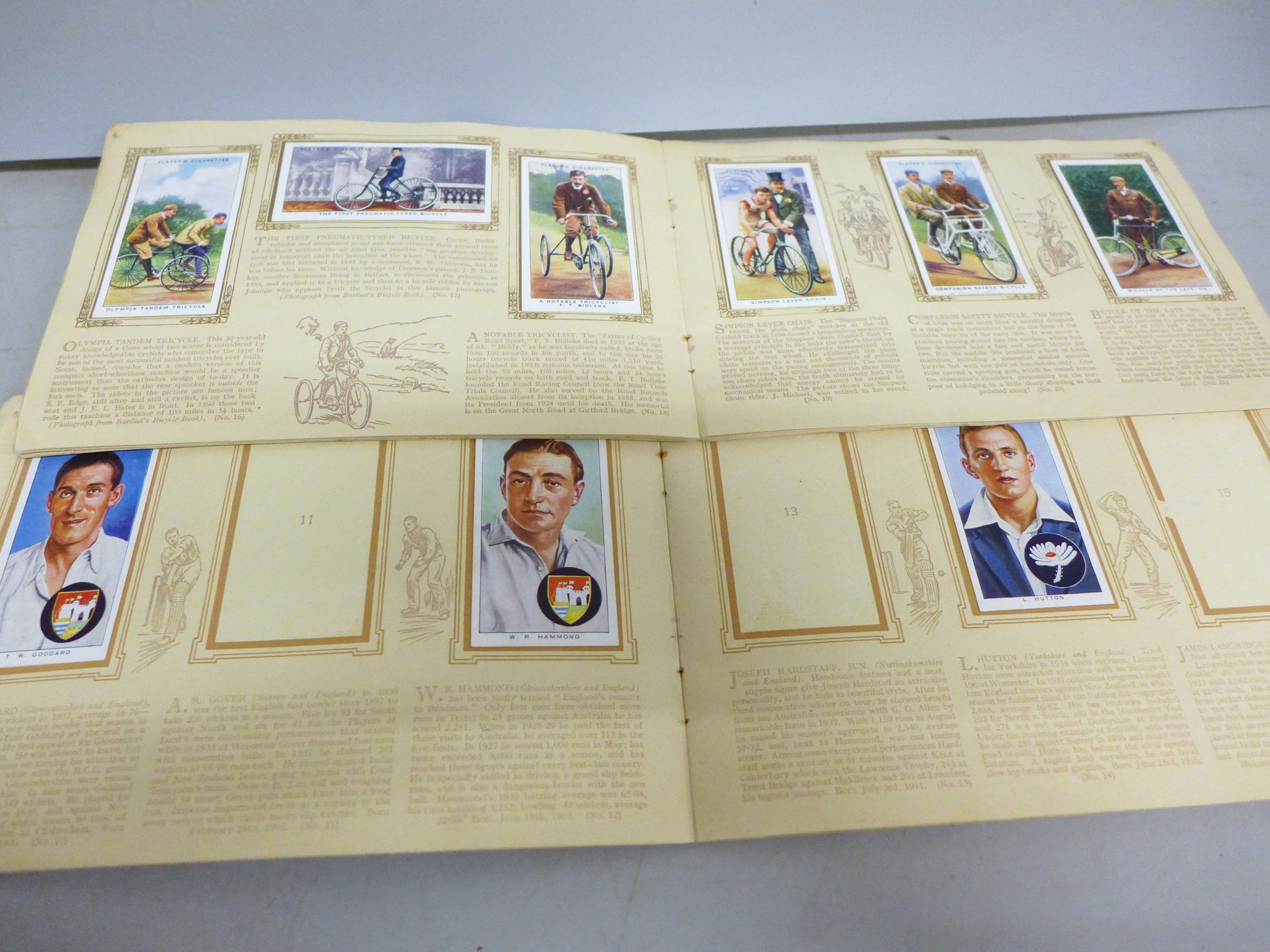 Collection of sporting related cigarette cards in albums to include Association Footballers 1935-1936, Cycling 1839-1939, Tennis, Album of Cricketers 1938, etc. From Wills and Player & Sons tobacco