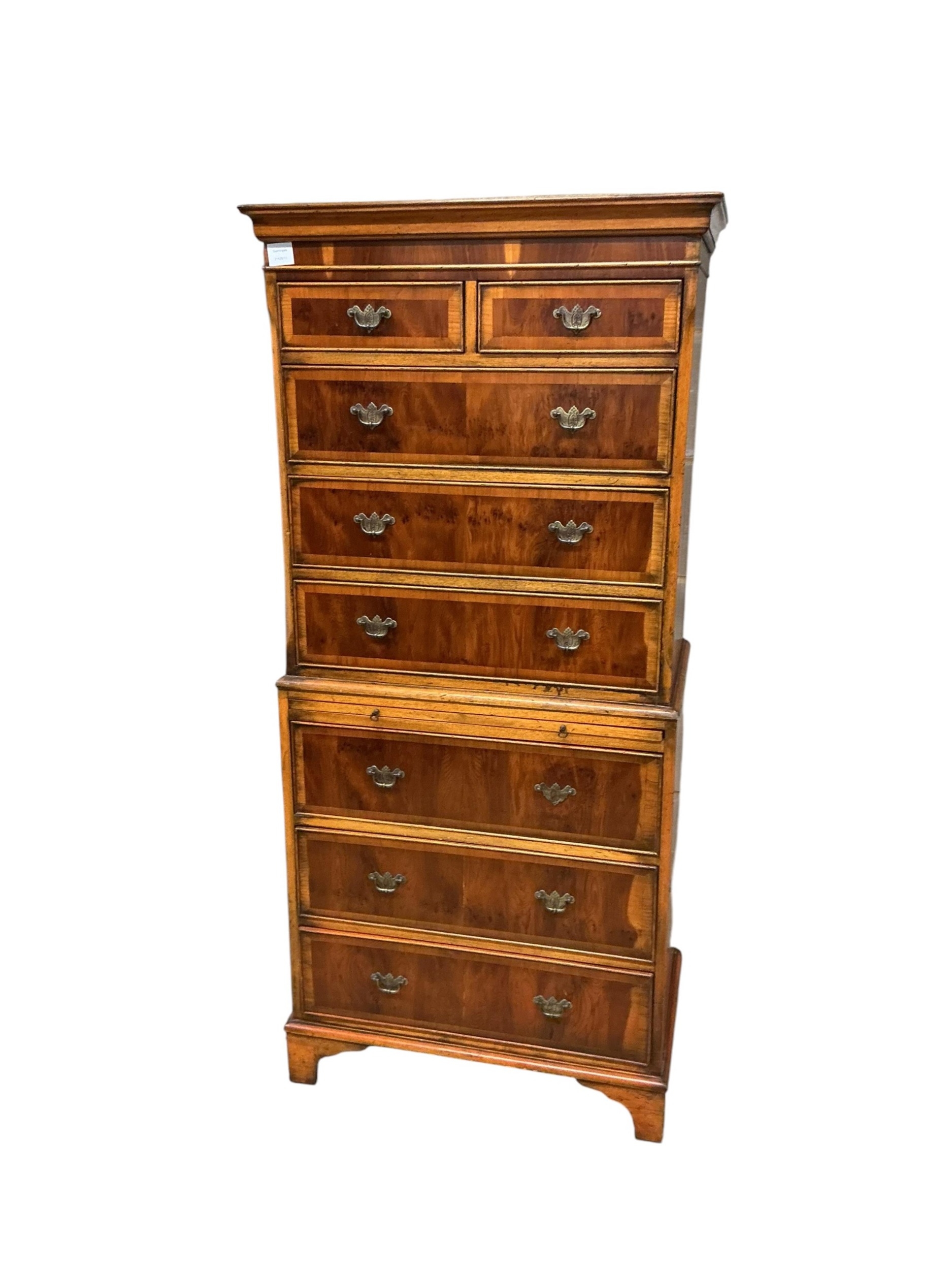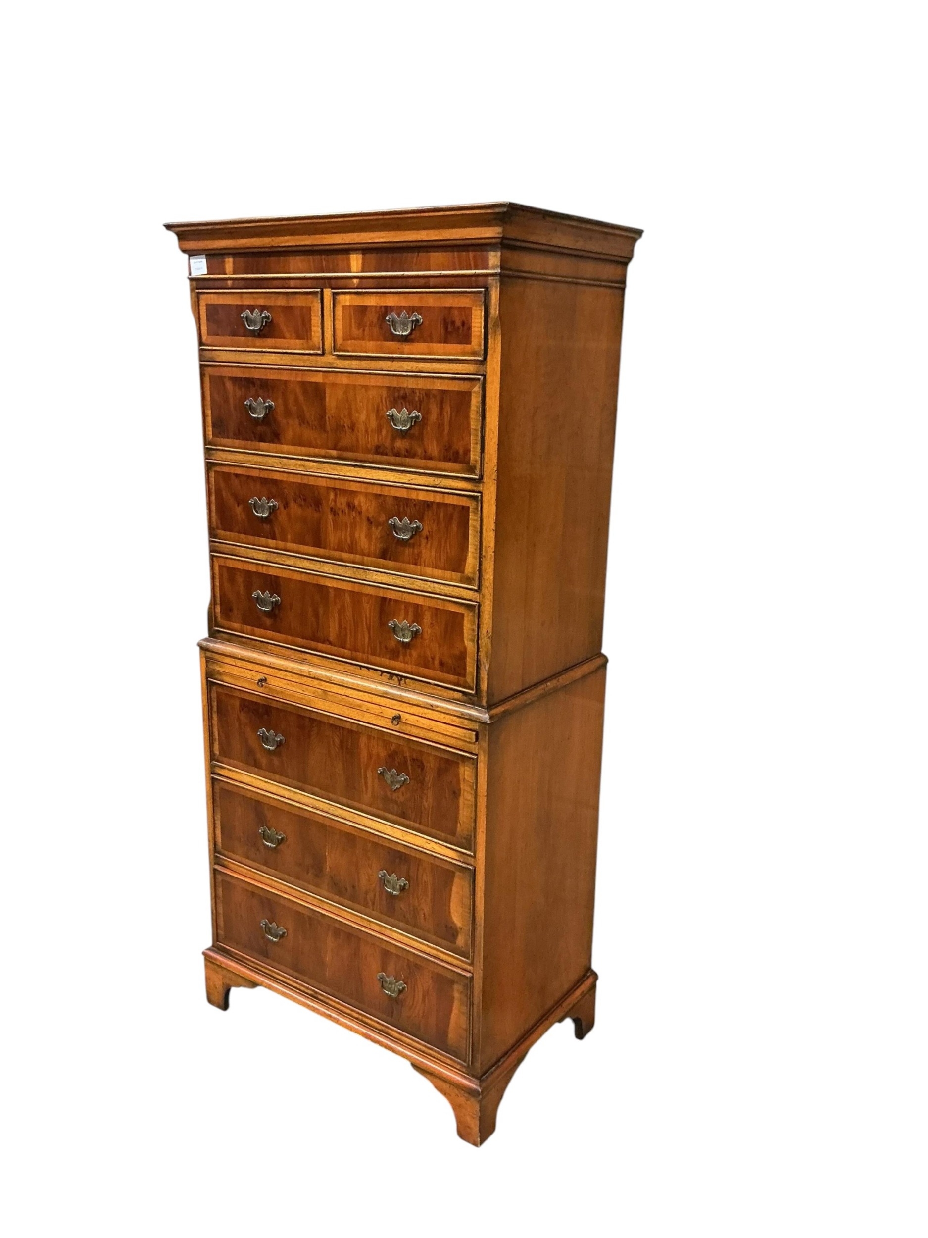 A George III style yew veneered tallboy, width 71cm, depth 42cm, height 155cm