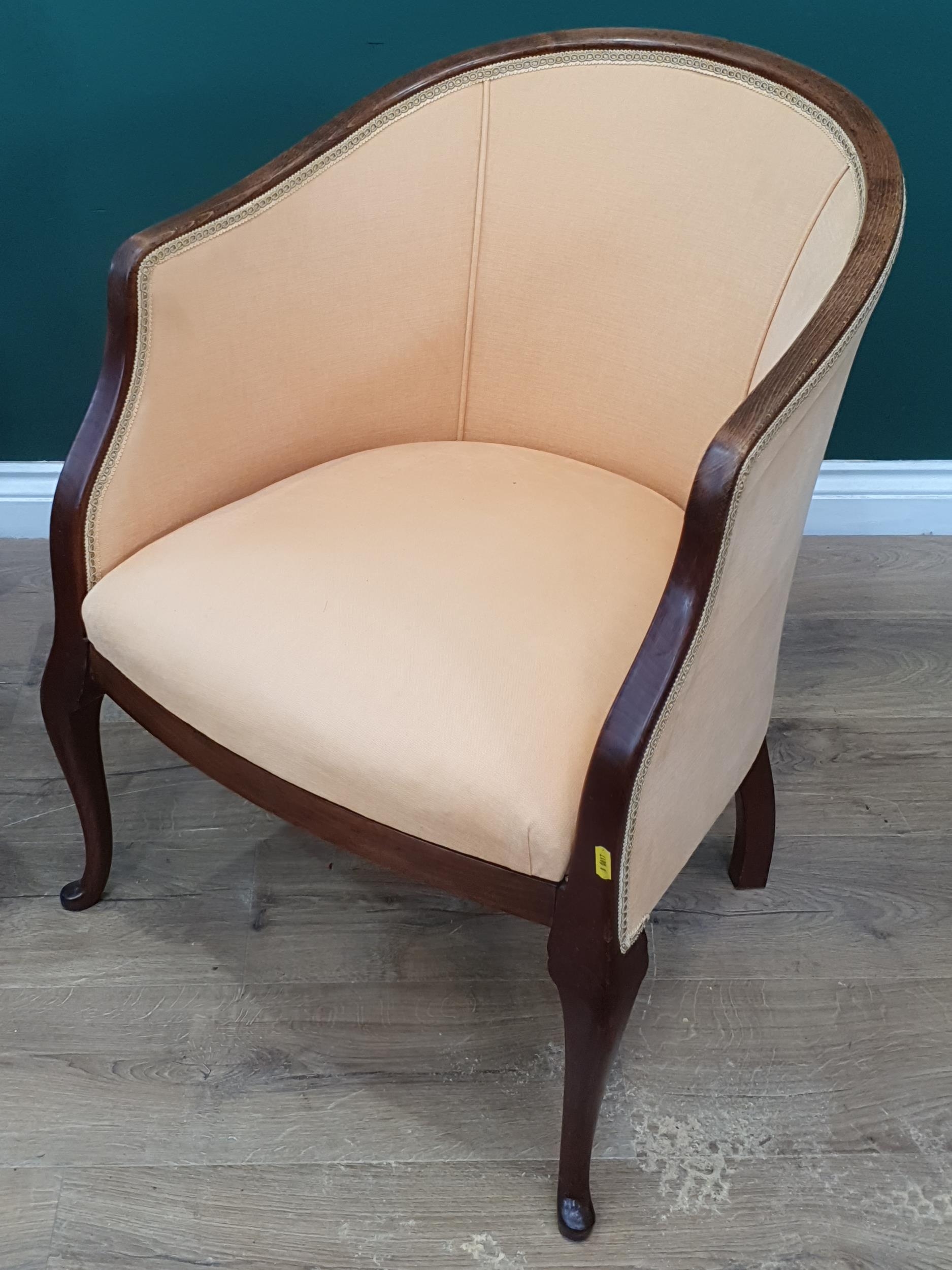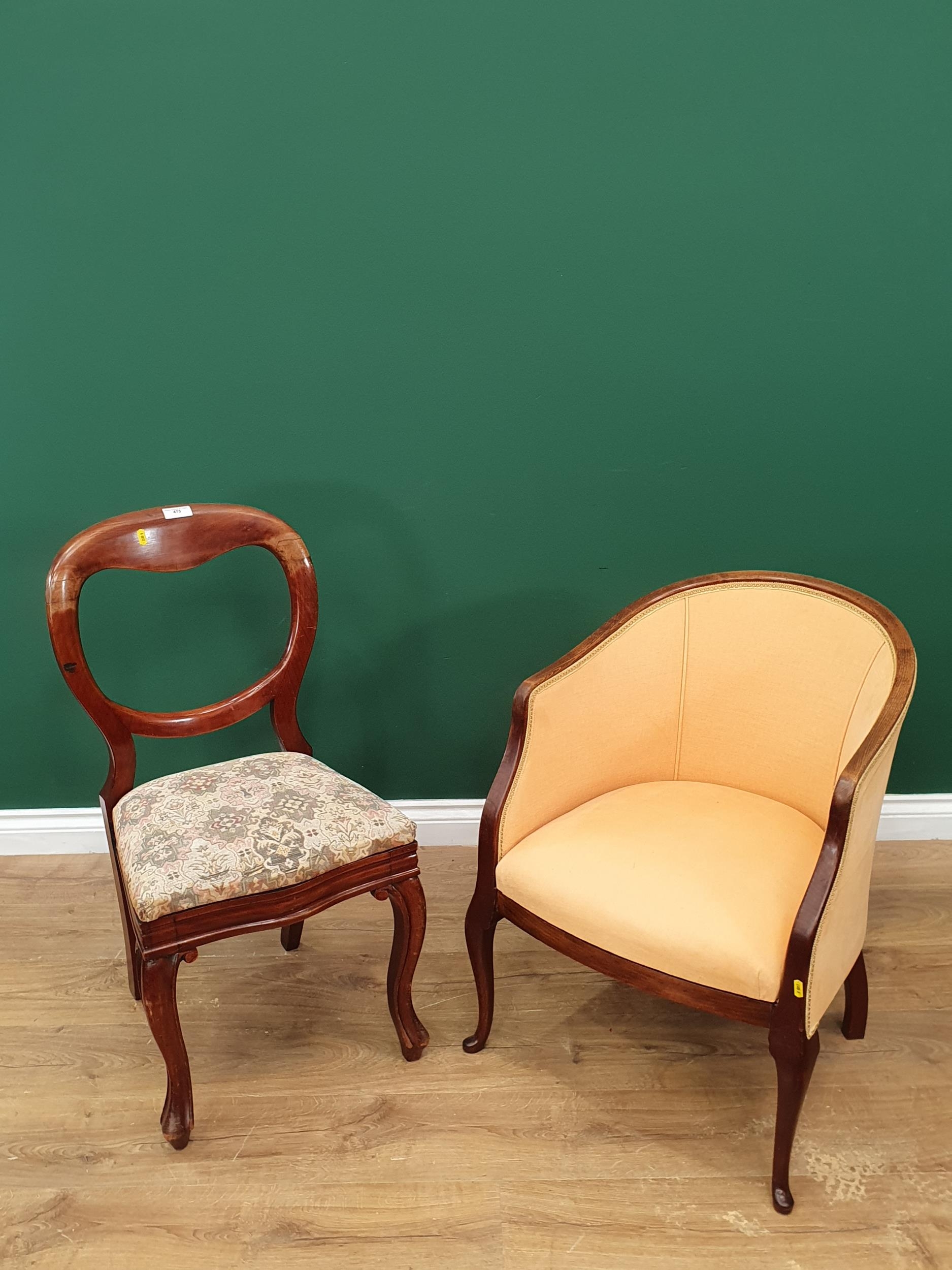 A mahogany Single Dining Chair with upholstered drop in seat and a yellow upholstered Elbow Chair.