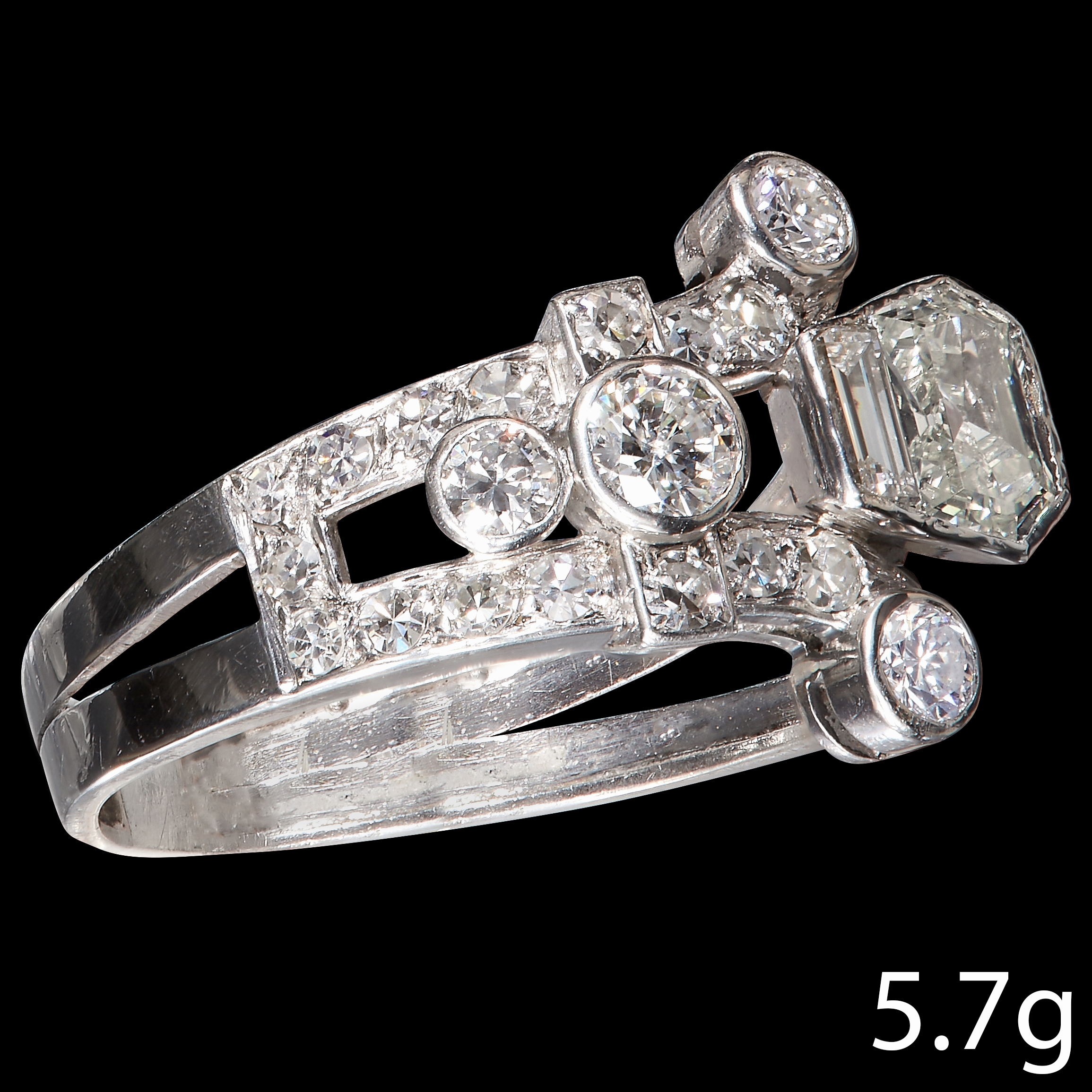 VINTAGE DIAMOND RING, in platinum. Set with multi cut bright and lively diamonds. Size O. 5.7 grams.
