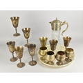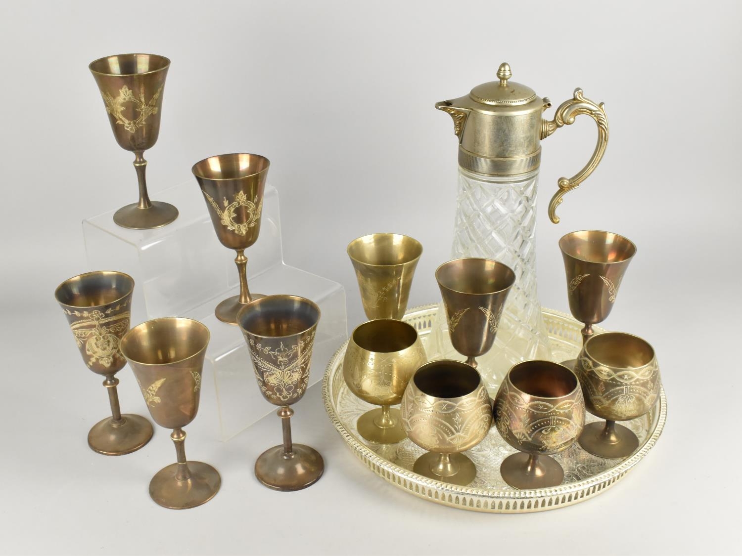 A Collection of Various Metalwares to Comprise Goblets, Galleried Tray and a Silver Plate and Glass Claret Jug