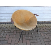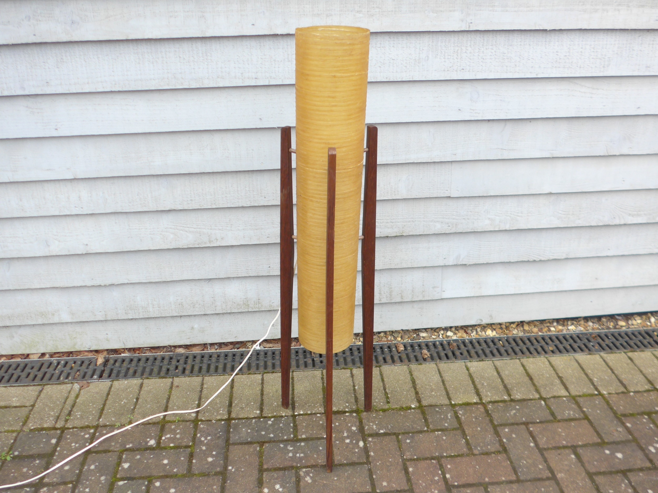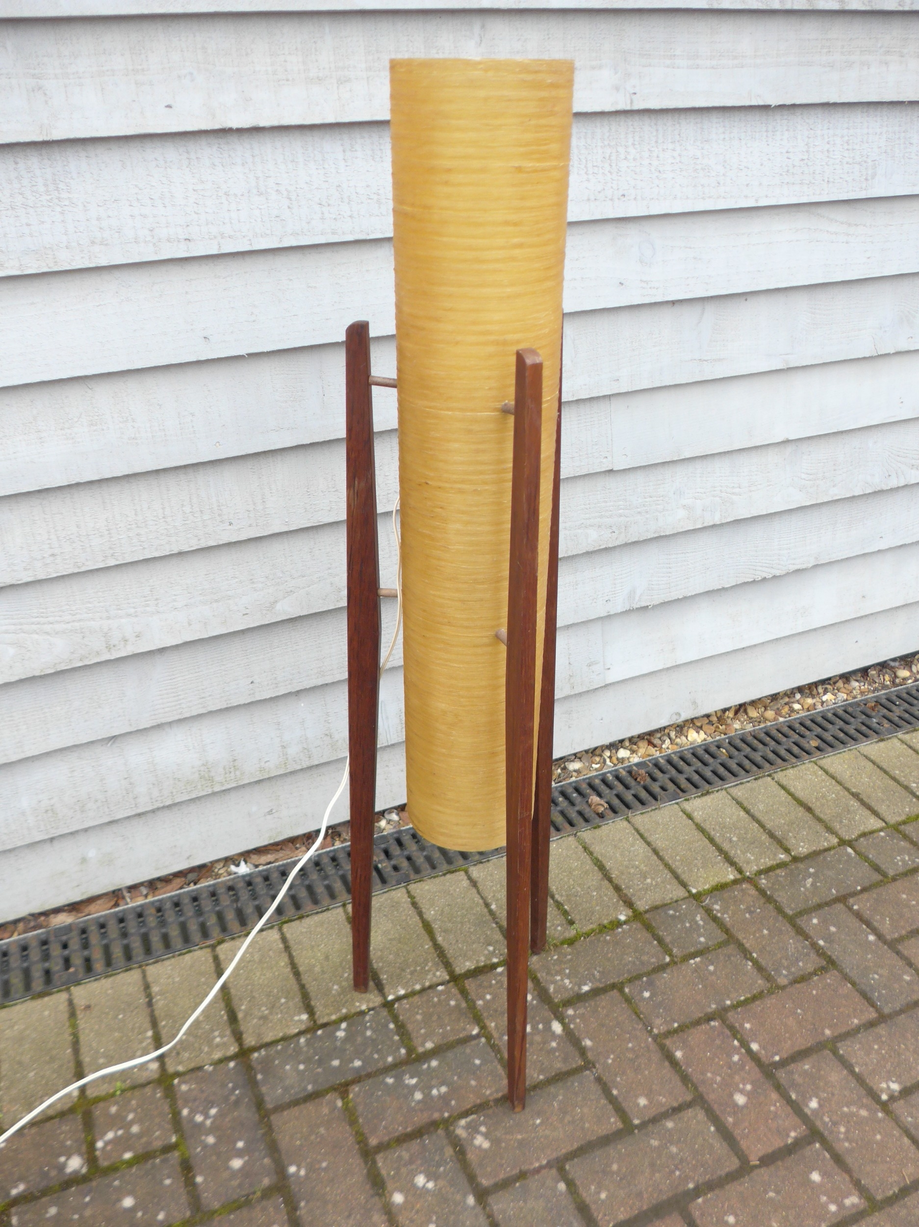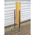 A 1970's teak rocket floor lamp with spun resin shade, 112cm high, shade 15cm diameter