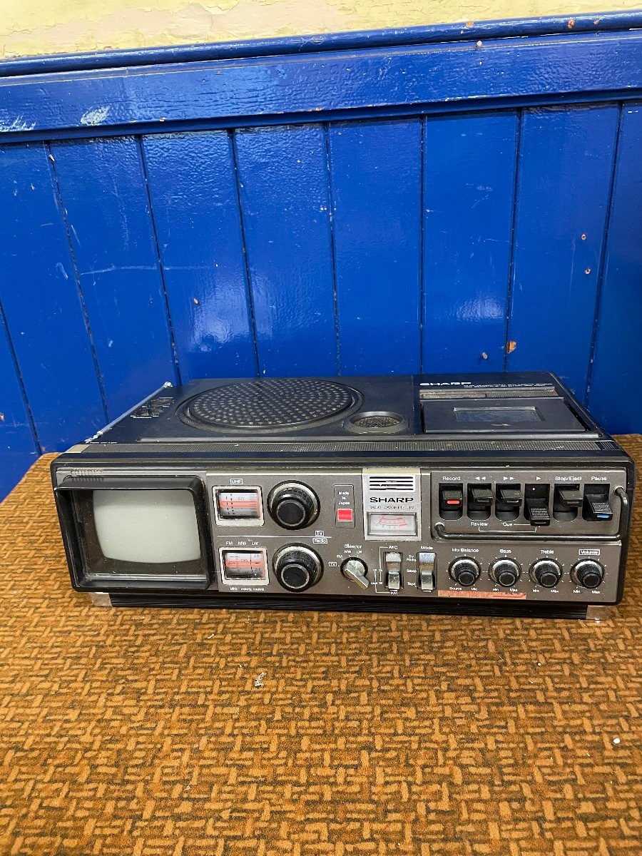 A Fidelity entertainment unit, a Waltham TV-radio-cassette recorder, a Sharp radio cassette TV and a Shibaden portable TV (4)