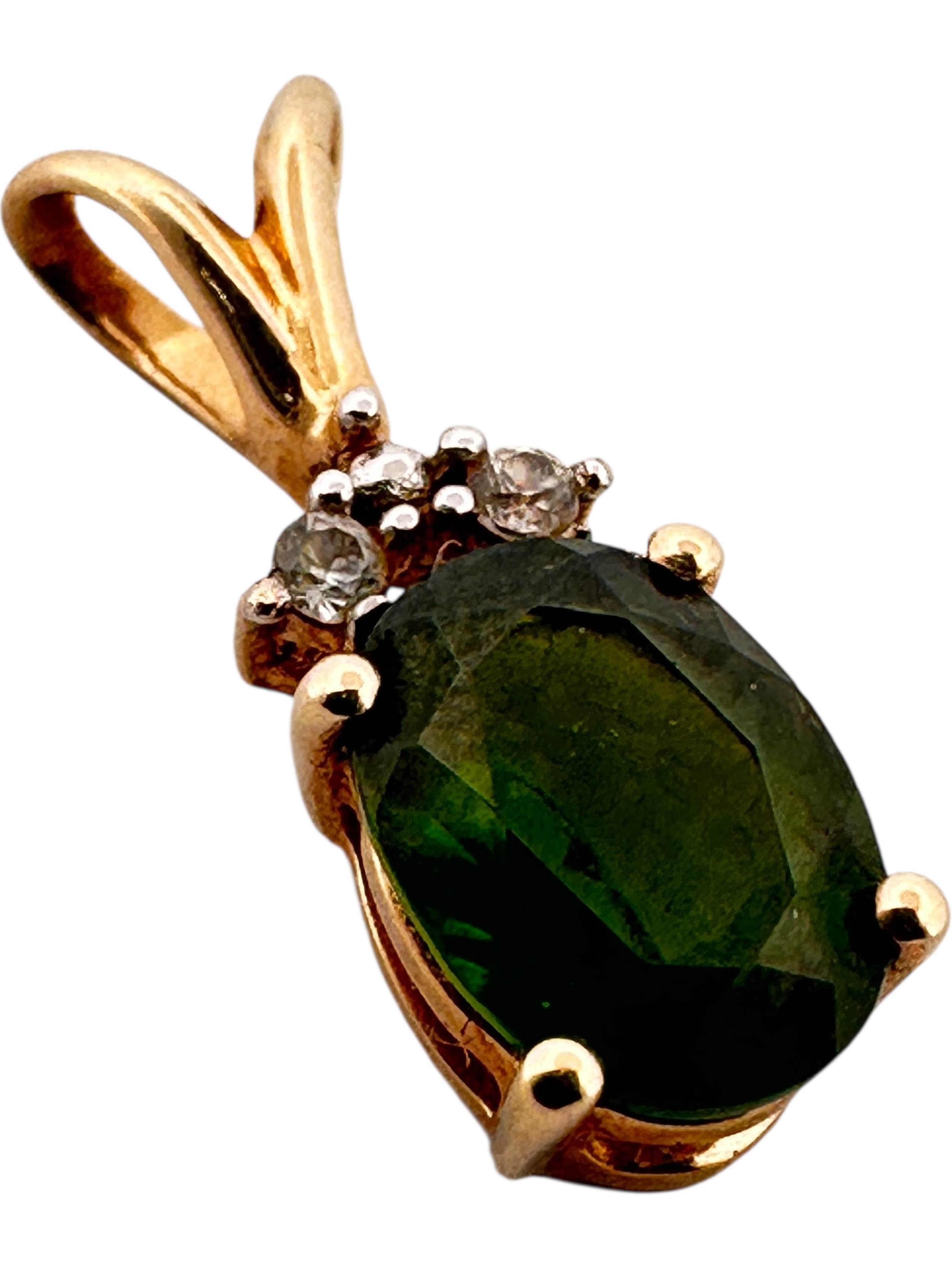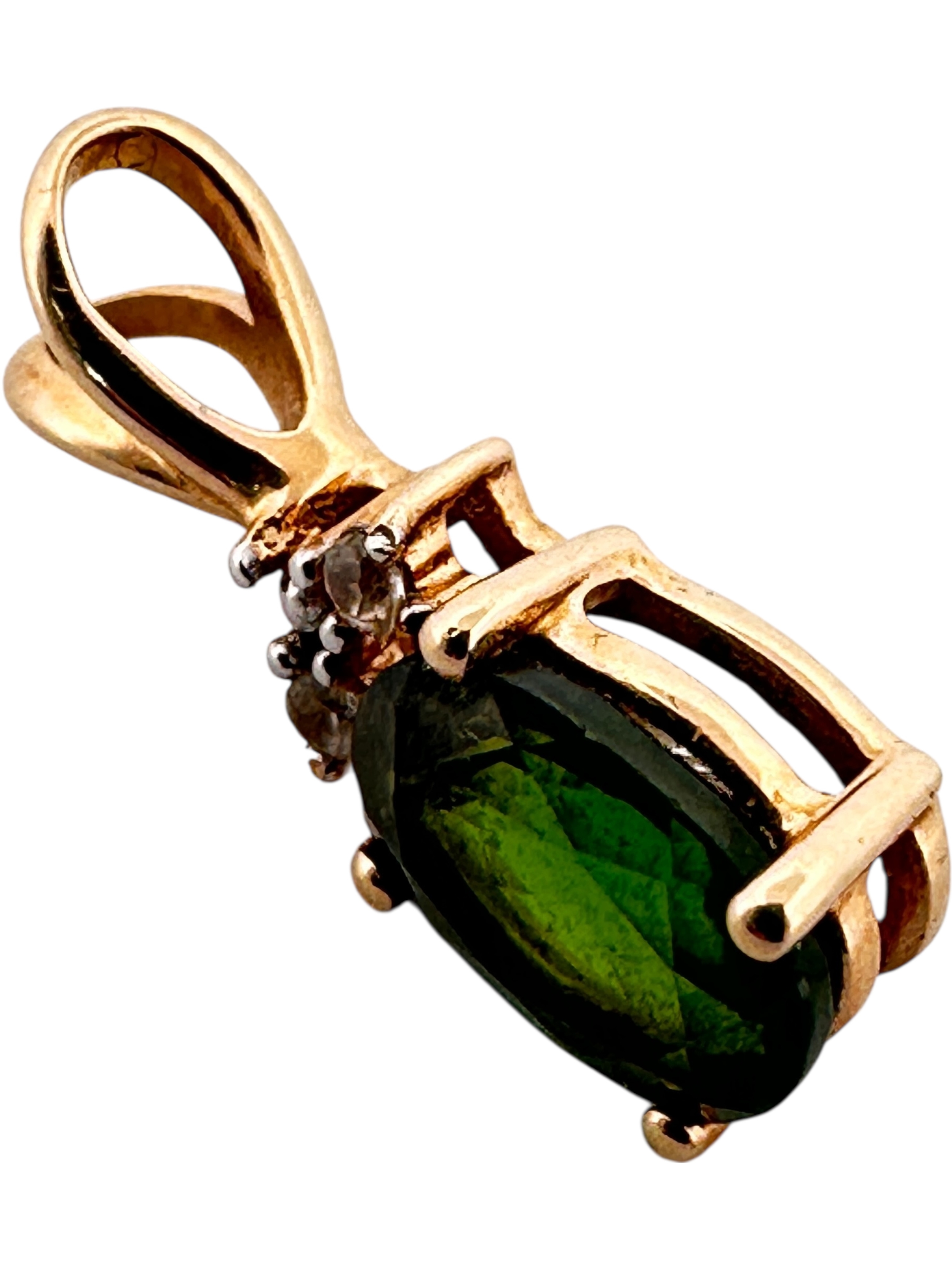 Ten Carat Gold Pendant with Emerald Green Coloured Stone by TGGC. 1.02g