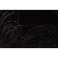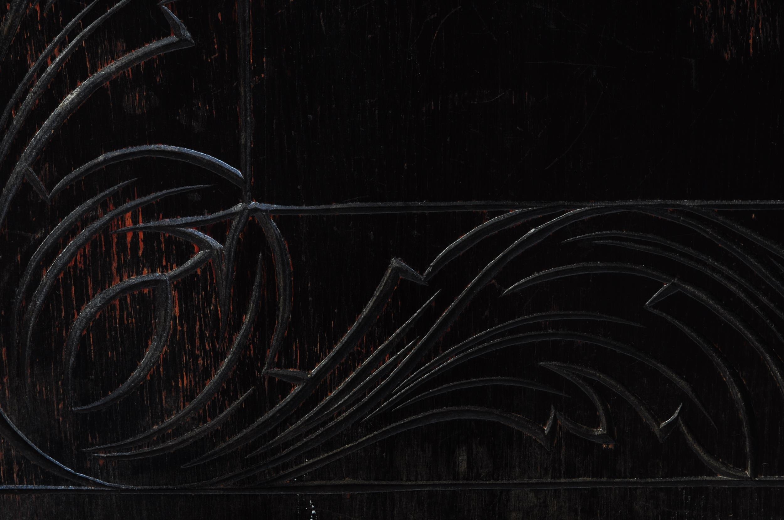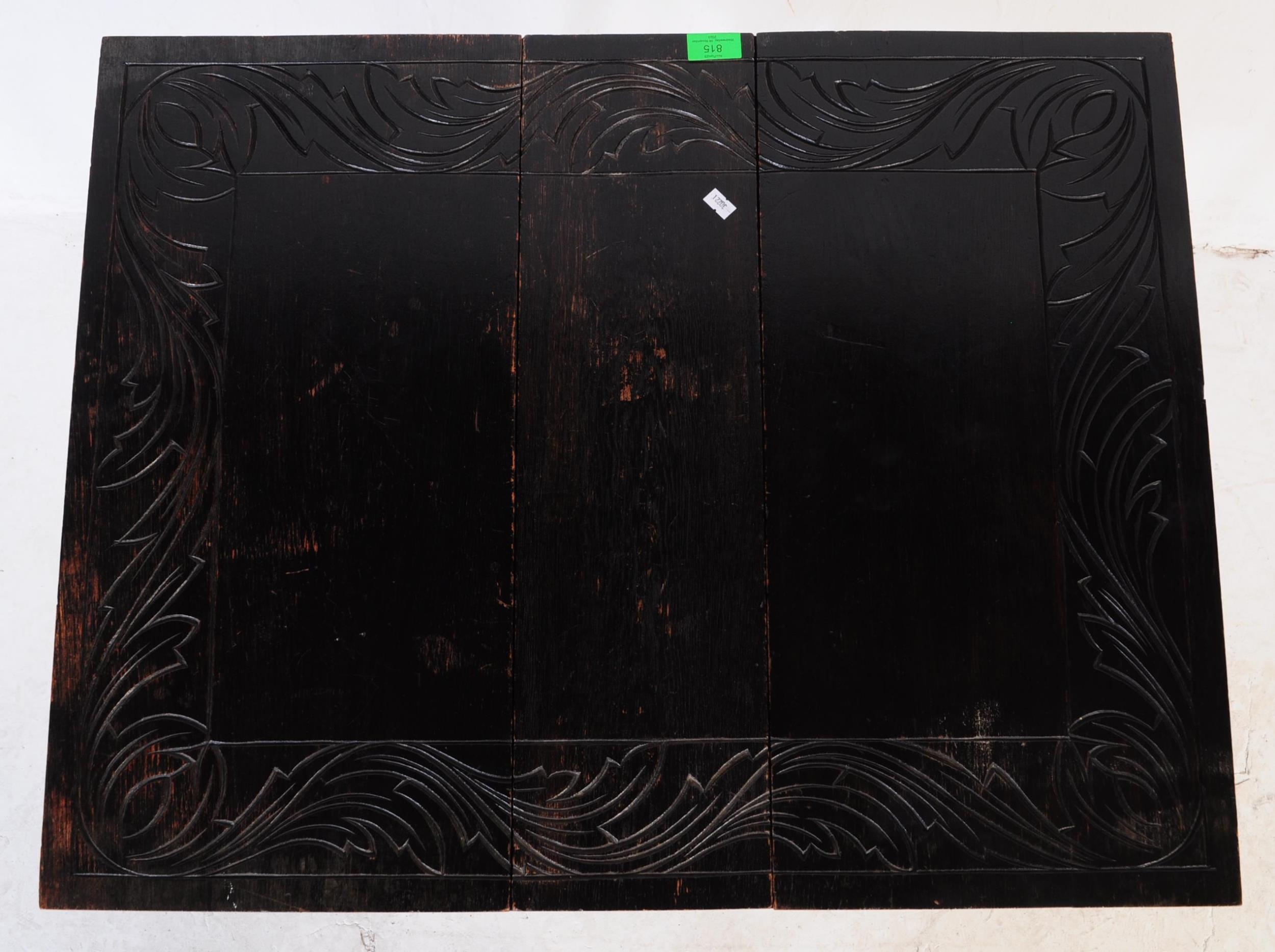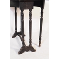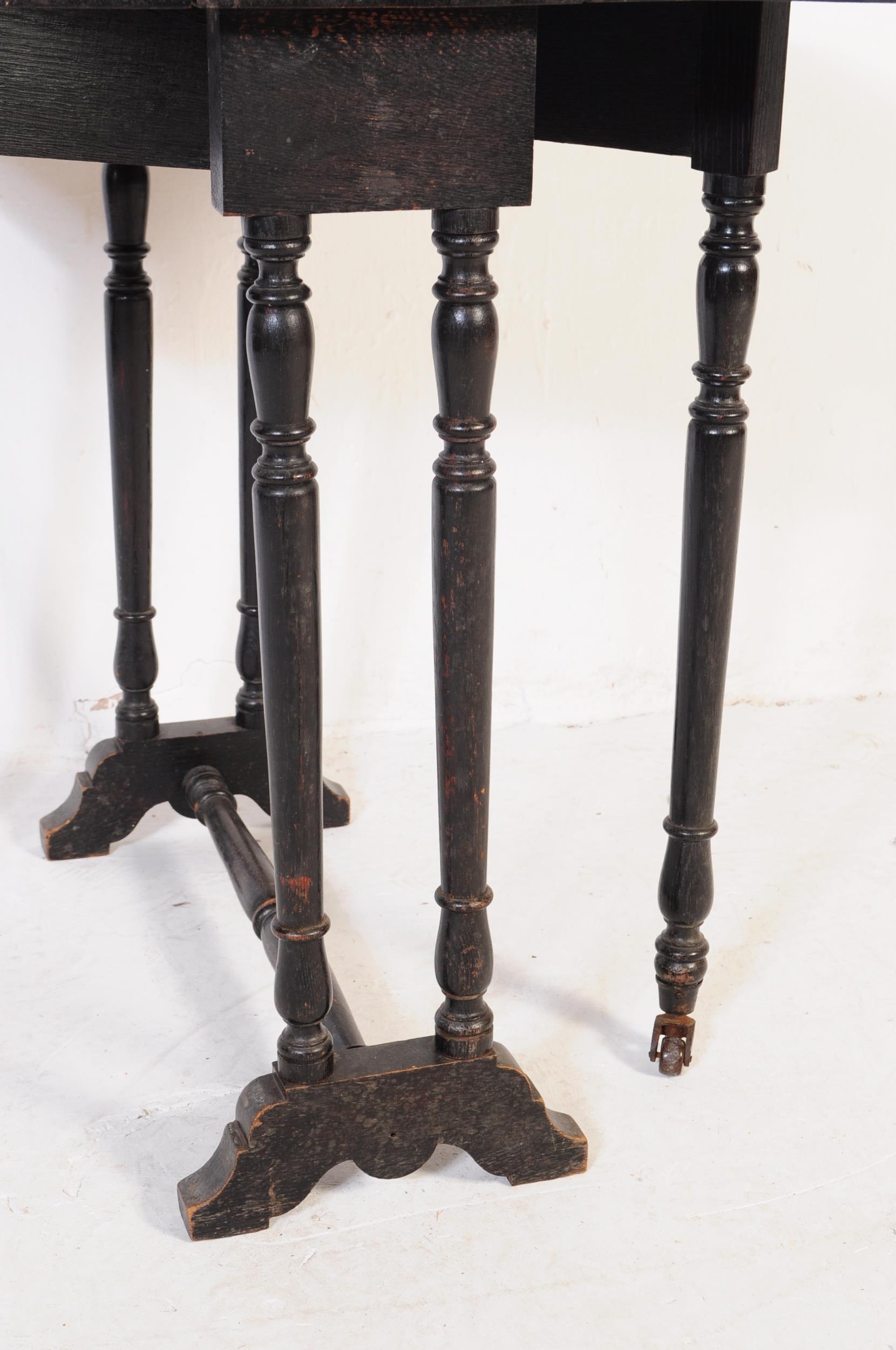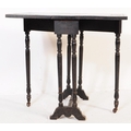 A Victorian 19th century carved oak Sutherland drop leaf table. Raised on turned legs with ebonised oak carved table top. Raised on a gate leg action