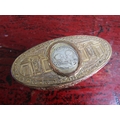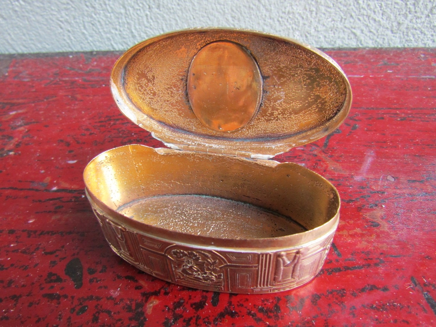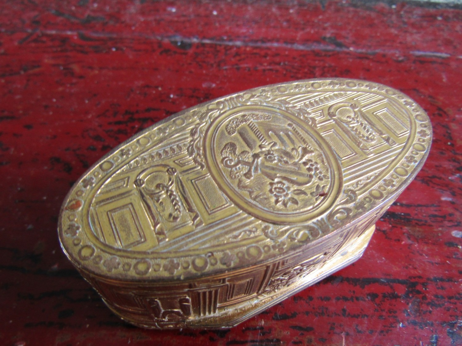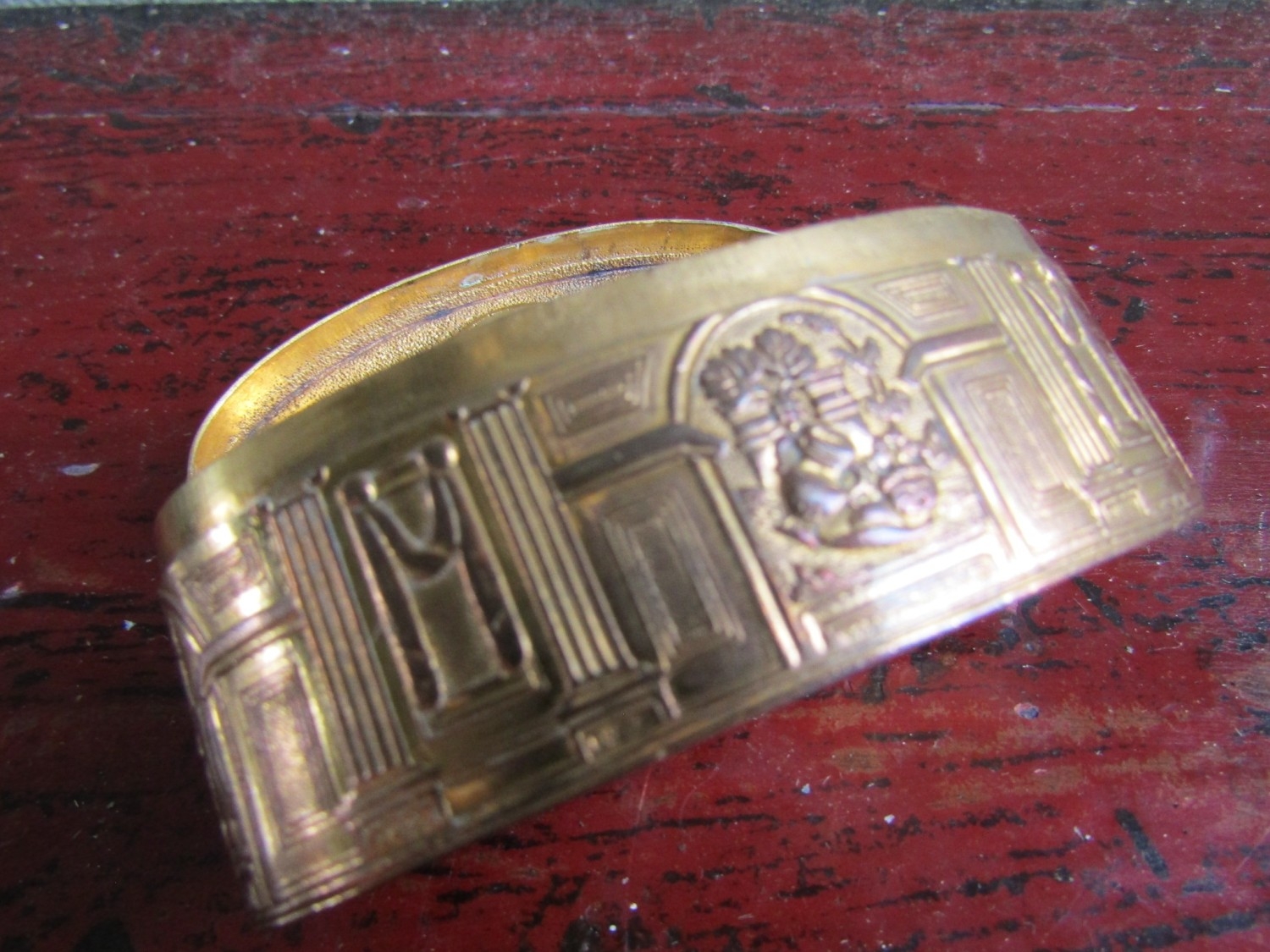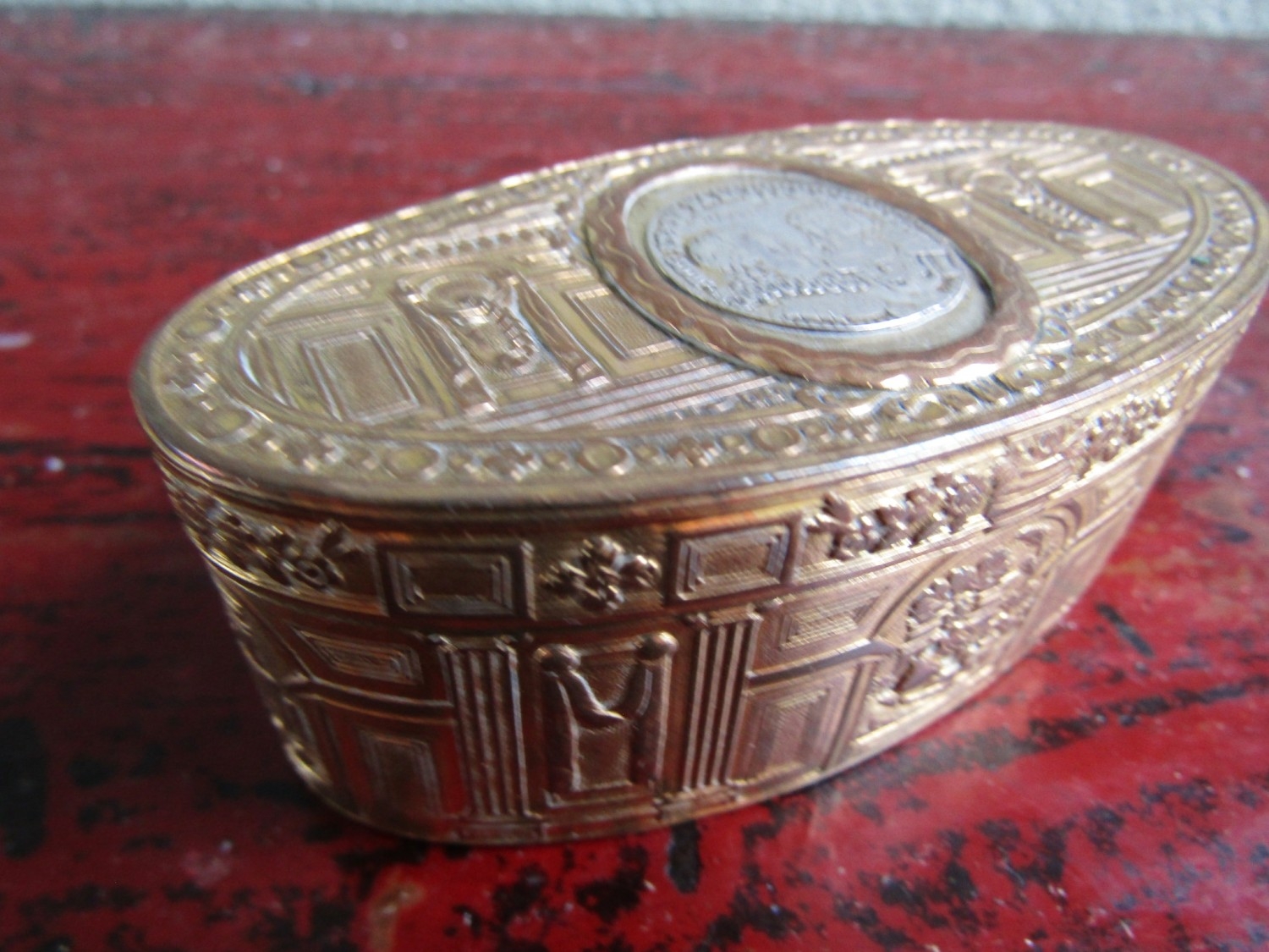 Gilded Silver Table Box Oval Form with Inset Medallion Hinged Cover Approximately 12cm Wide