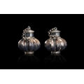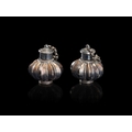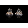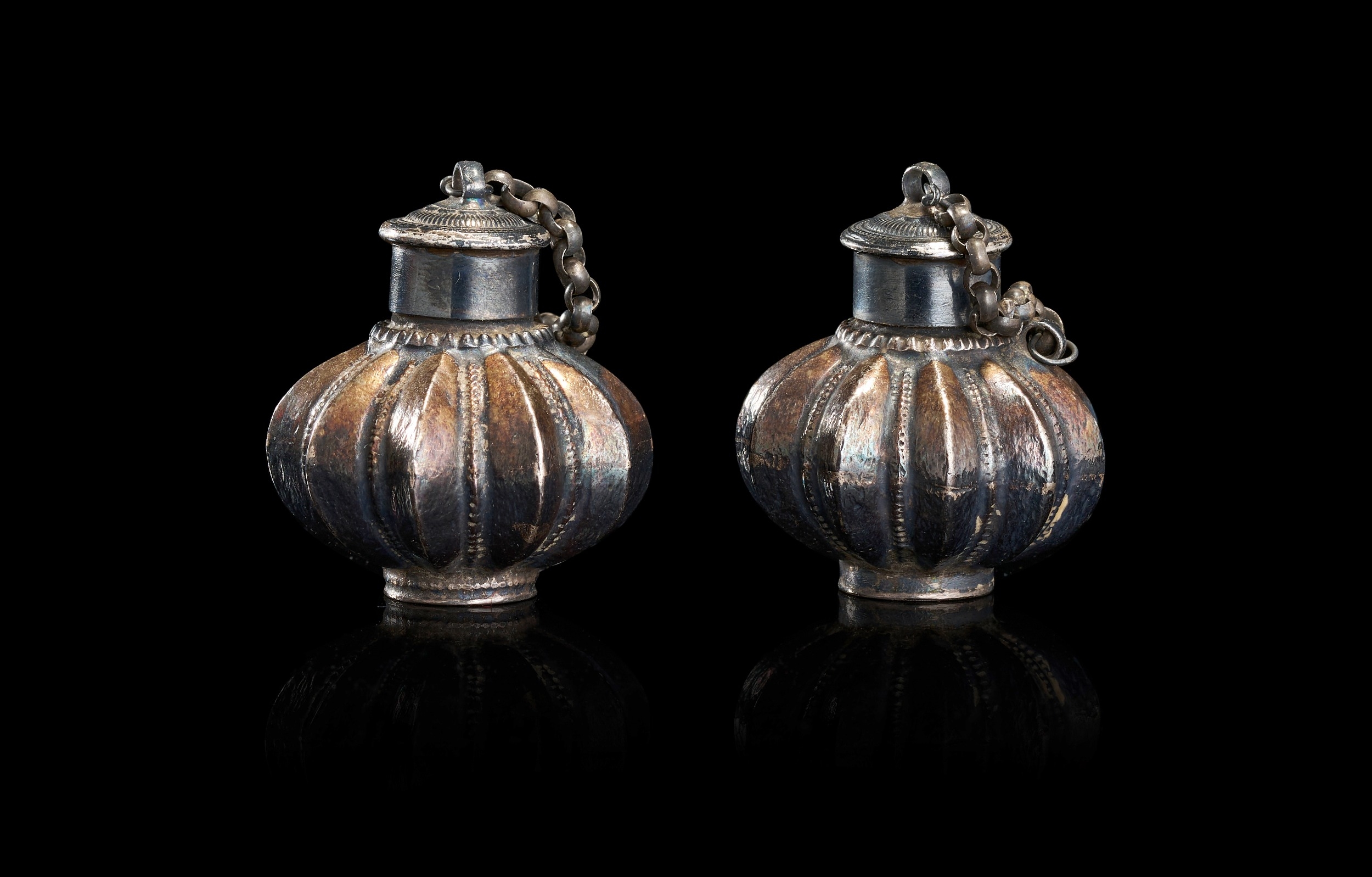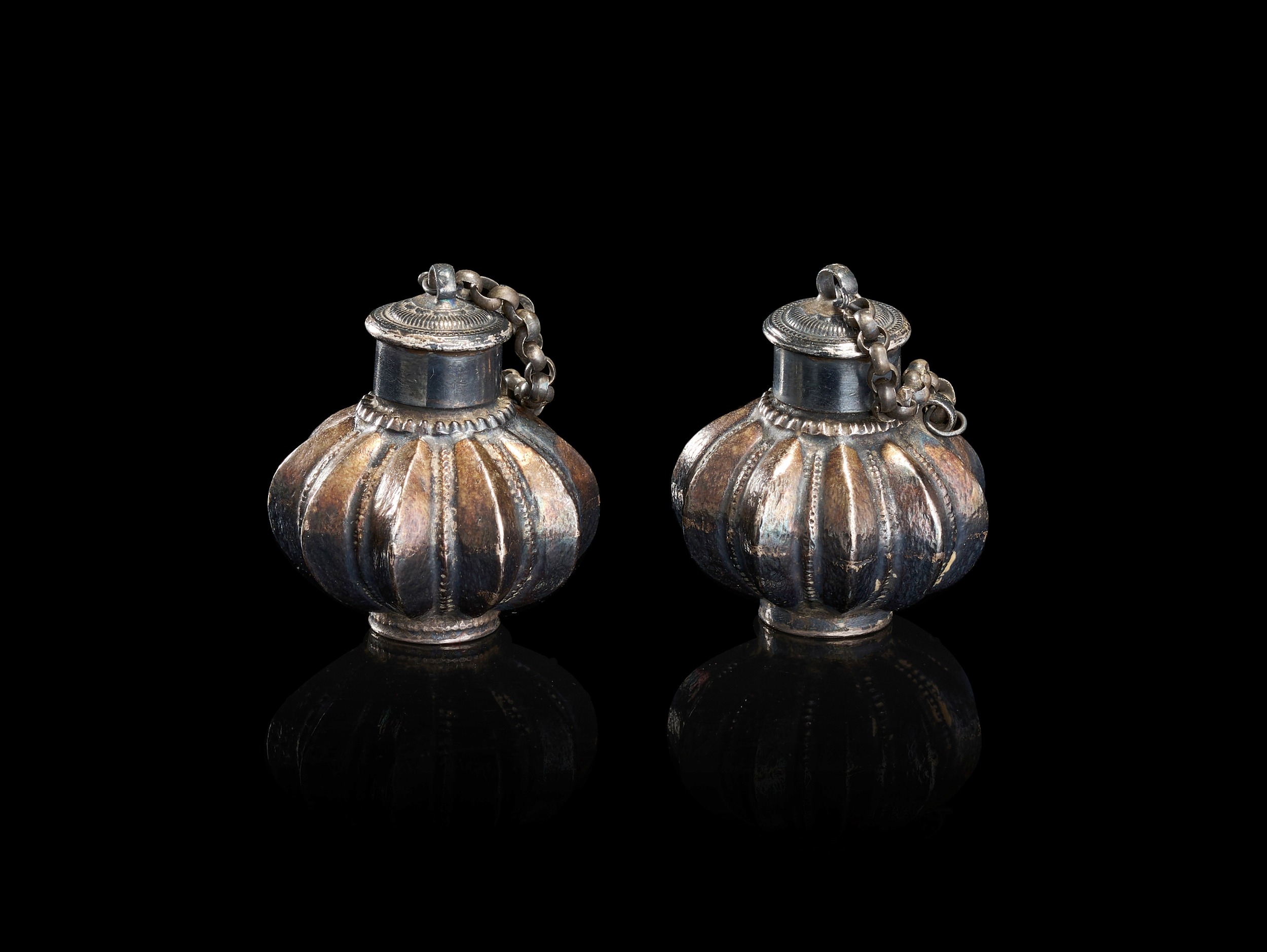 A PAIR OF SILVER-TONED MELON-FORM SCENT BOTTLES, INDIA, 19TH CENTURY