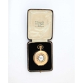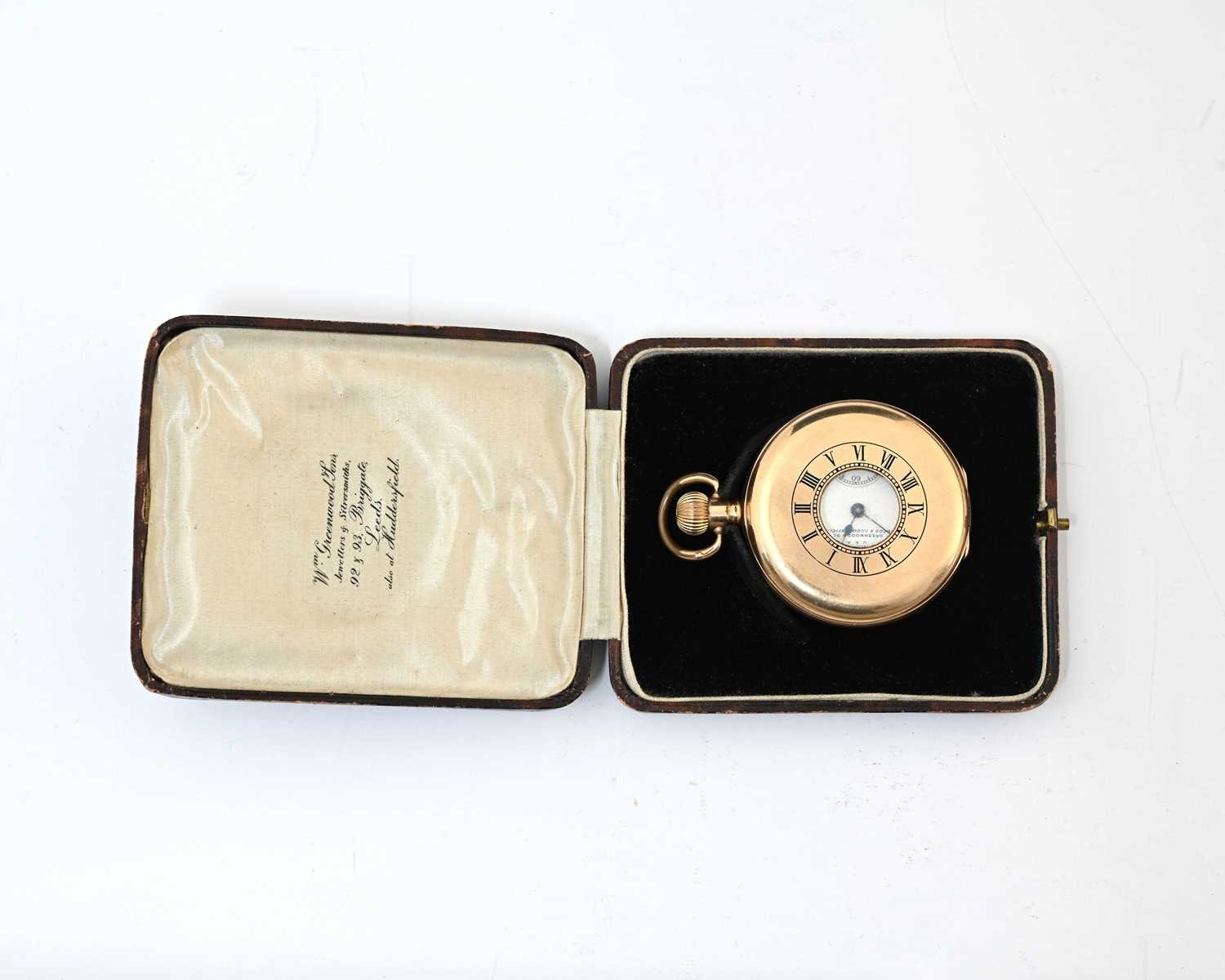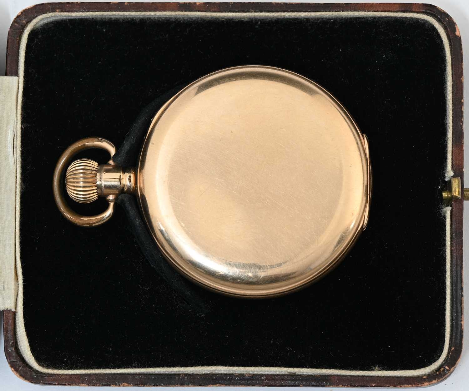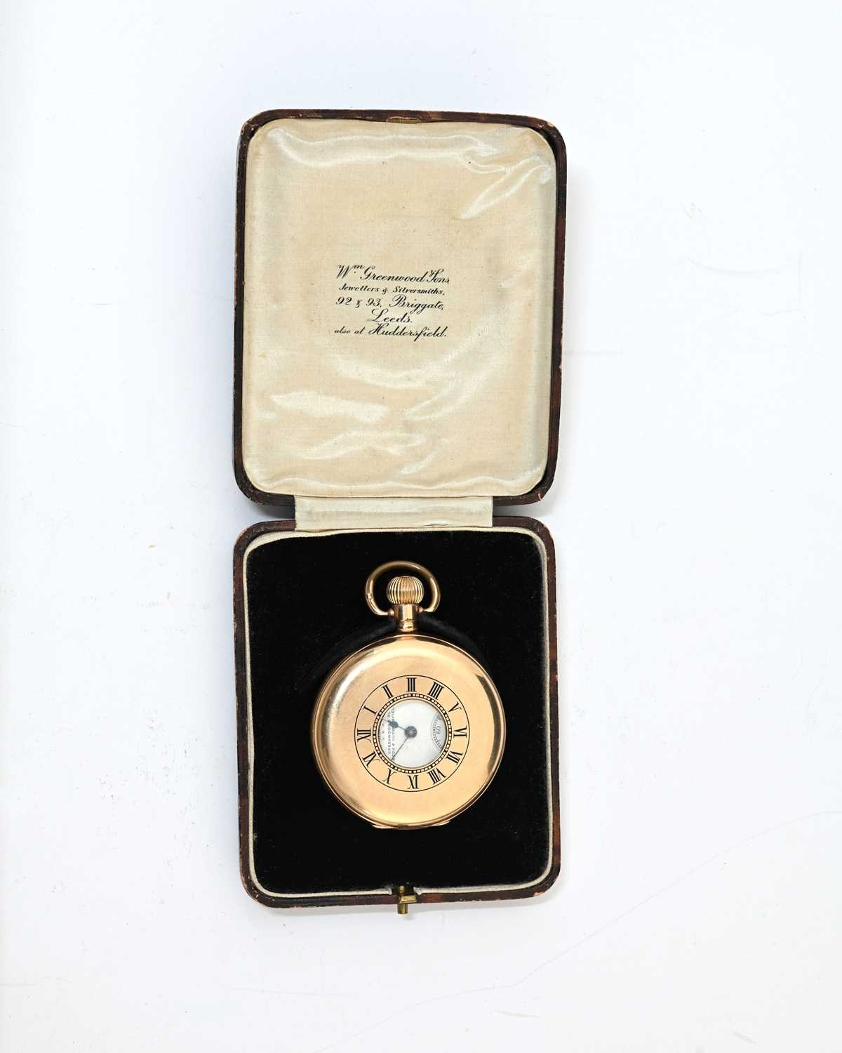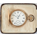 Waltham, a gold plated half-hunter pocket watch, blue enamelled chapter ring of Roman numerals, 5cm diameter (boxed)