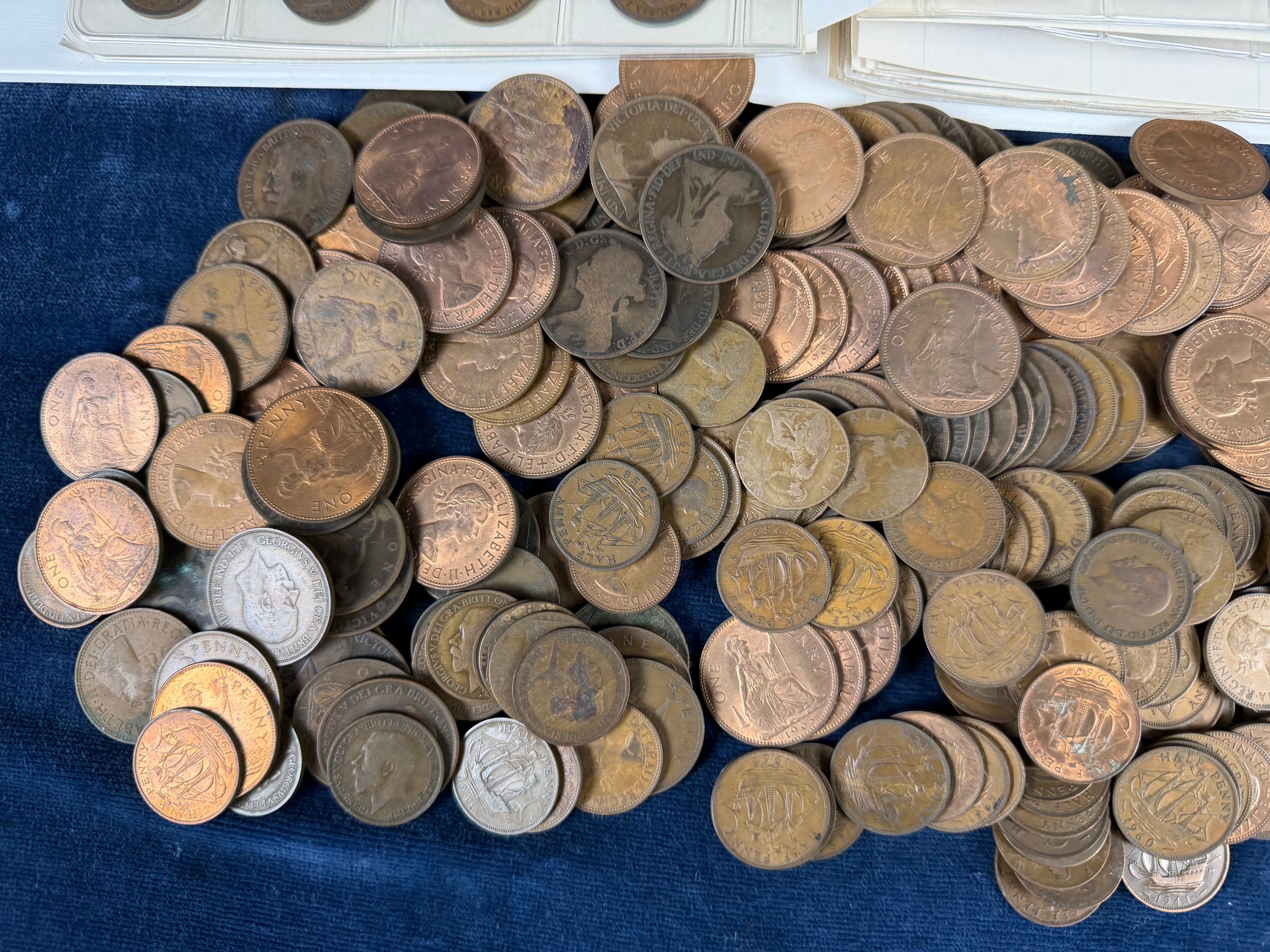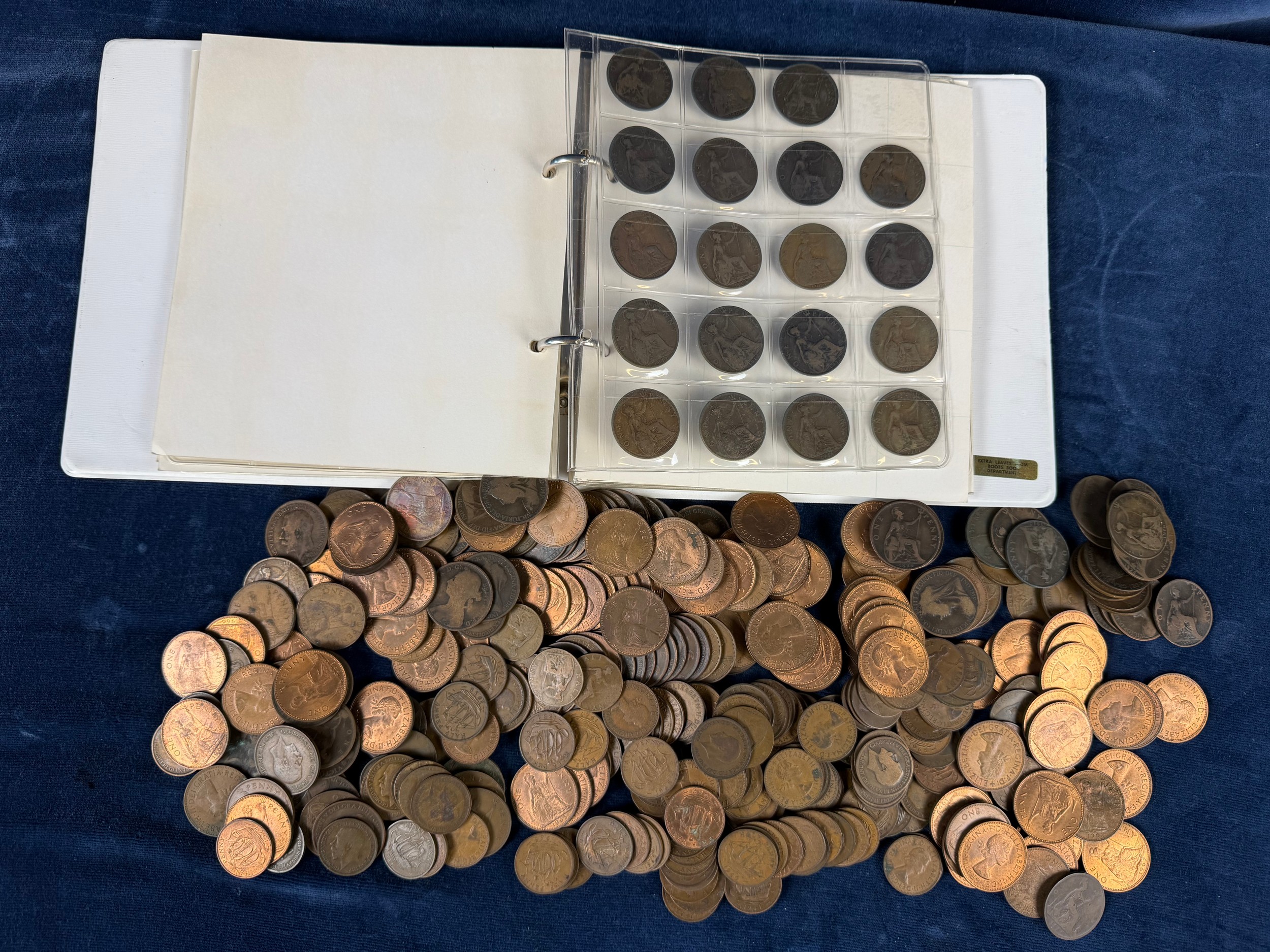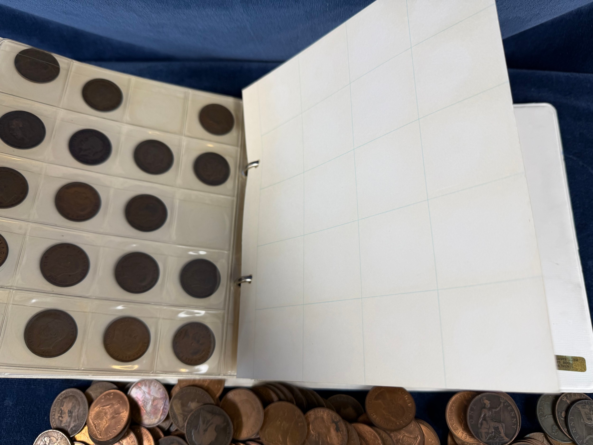 An album containing a quantity of one penny and half penny coins, together with a large quantity of loose one penny and half penny coins.