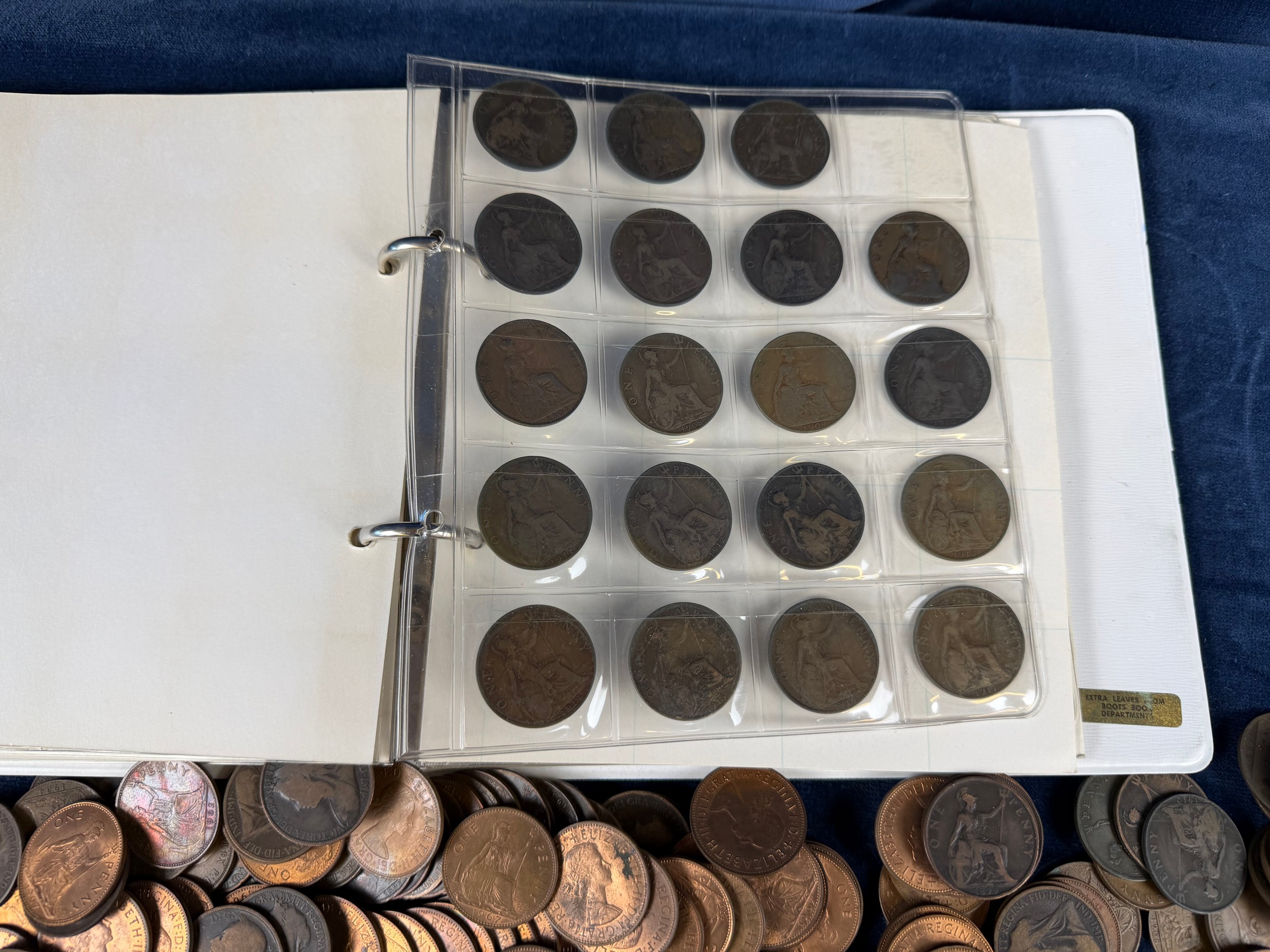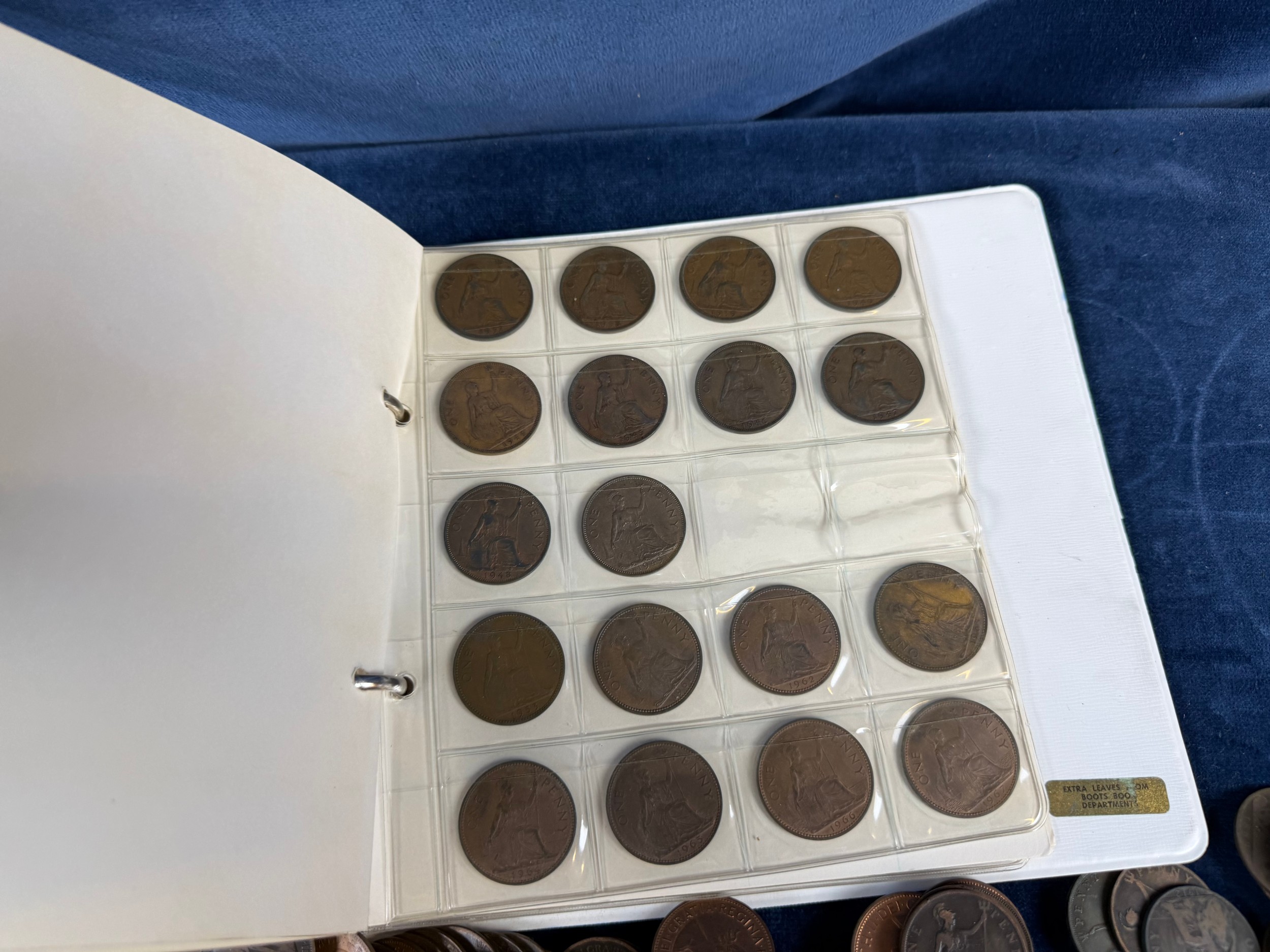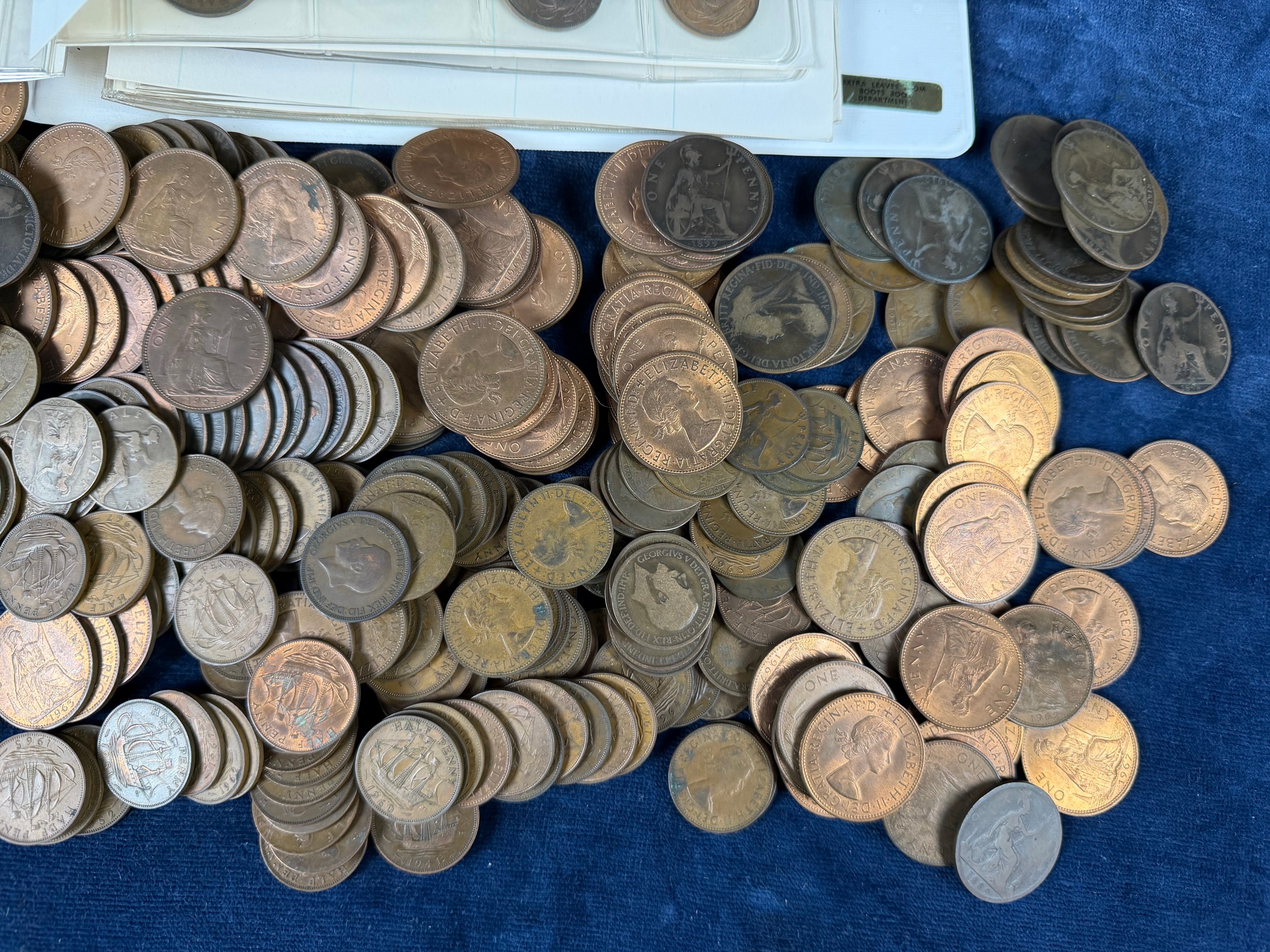 An album containing a quantity of one penny and half penny coins, together with a large quantity of loose one penny and half penny coins.
