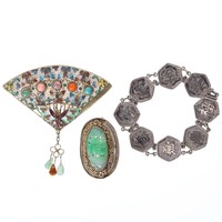Silver Ring Collection incl. Cultured Pearl, Ruby, Floral, 25g