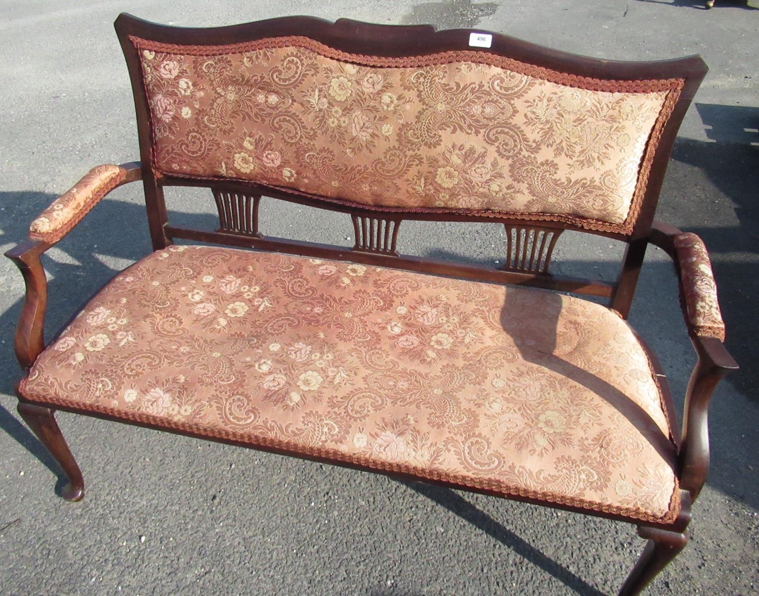 Edwardian mahogany frame 2 seat settee on pad feet
