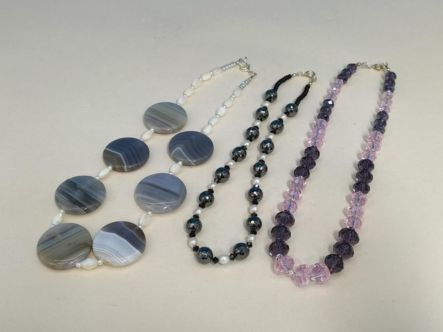 Assorted Glass and Agate Bead Necklaces (3) to include Haematite, Agate Discs and Faceted Beads. All with 925 Stamped Clasps.
